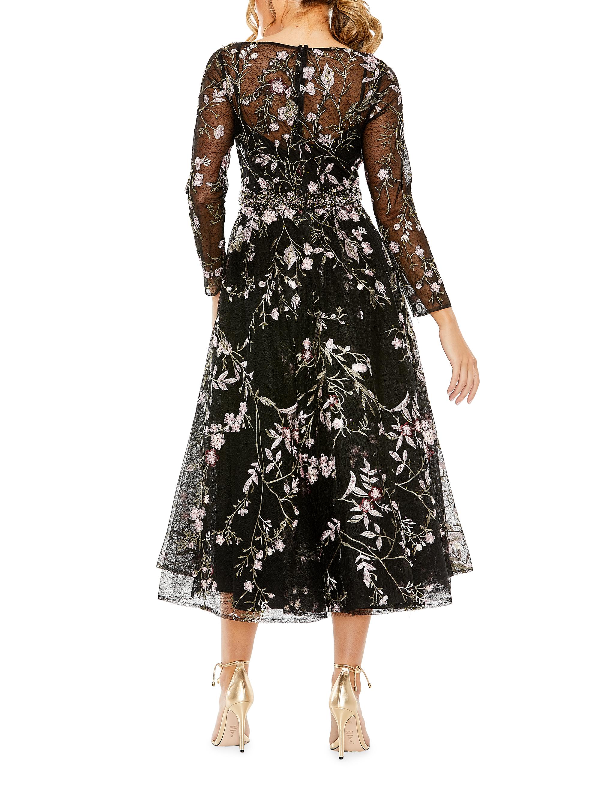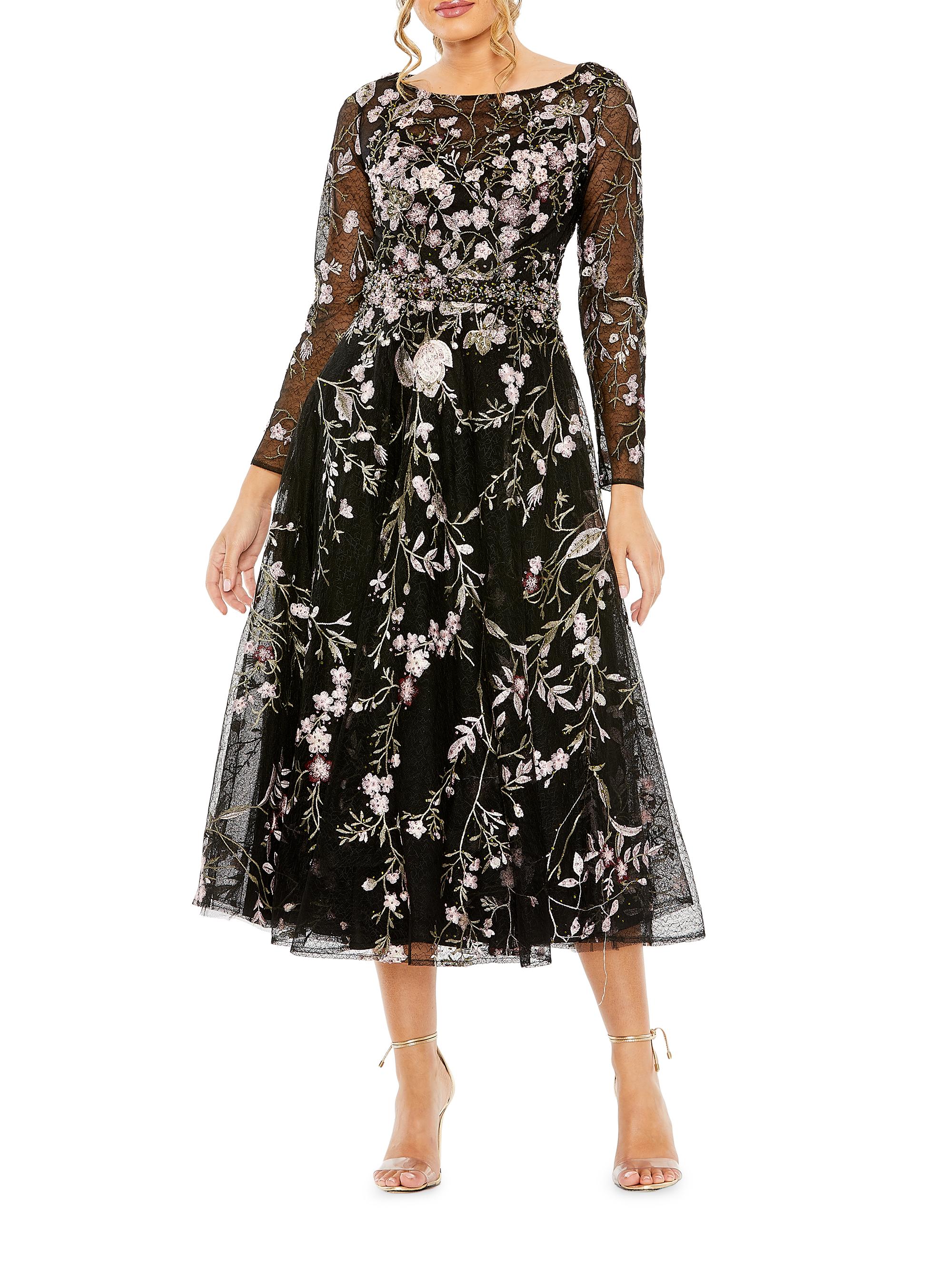 Mac Duggal Embroidered Floral Tulle Midi Dress