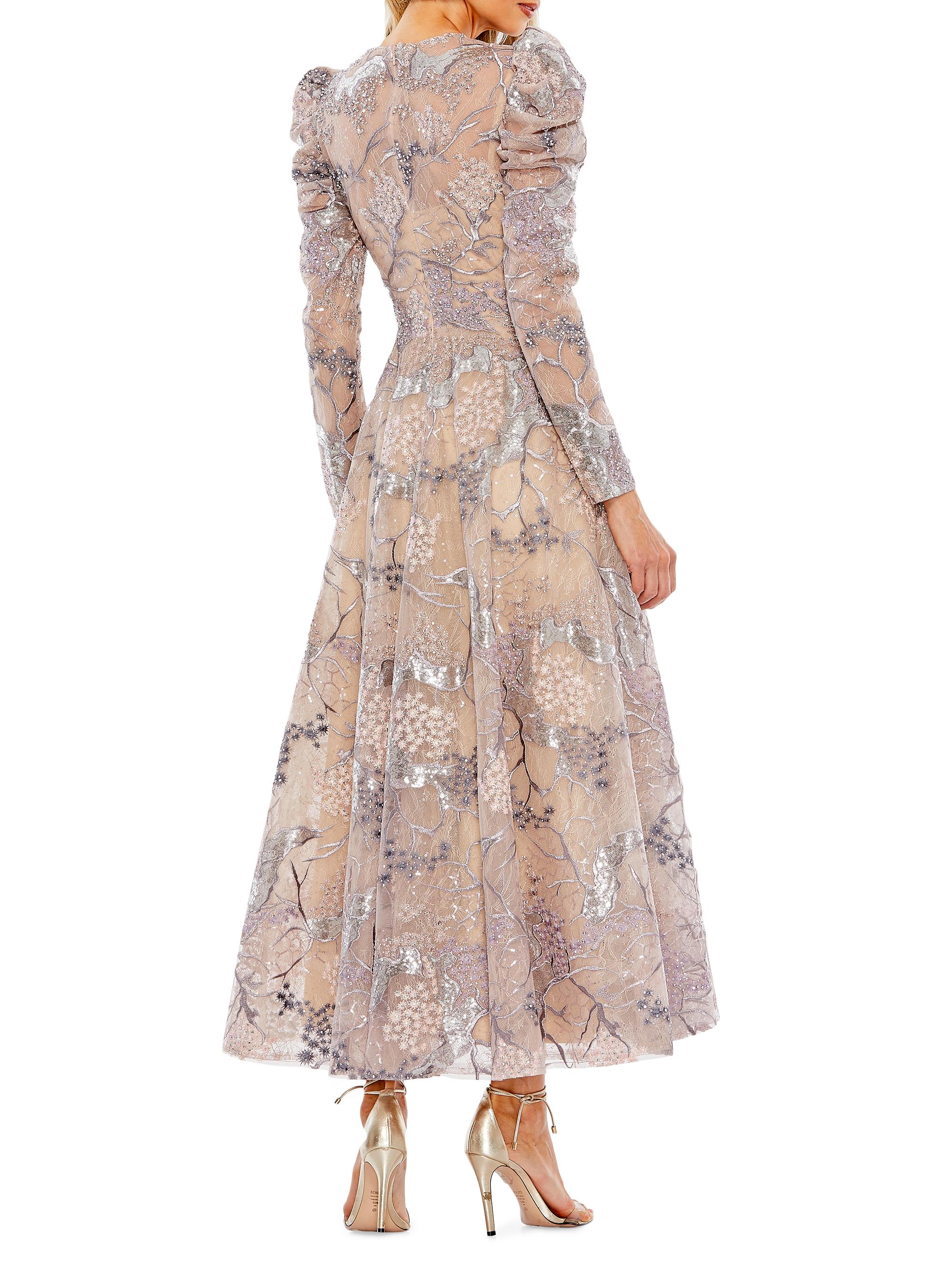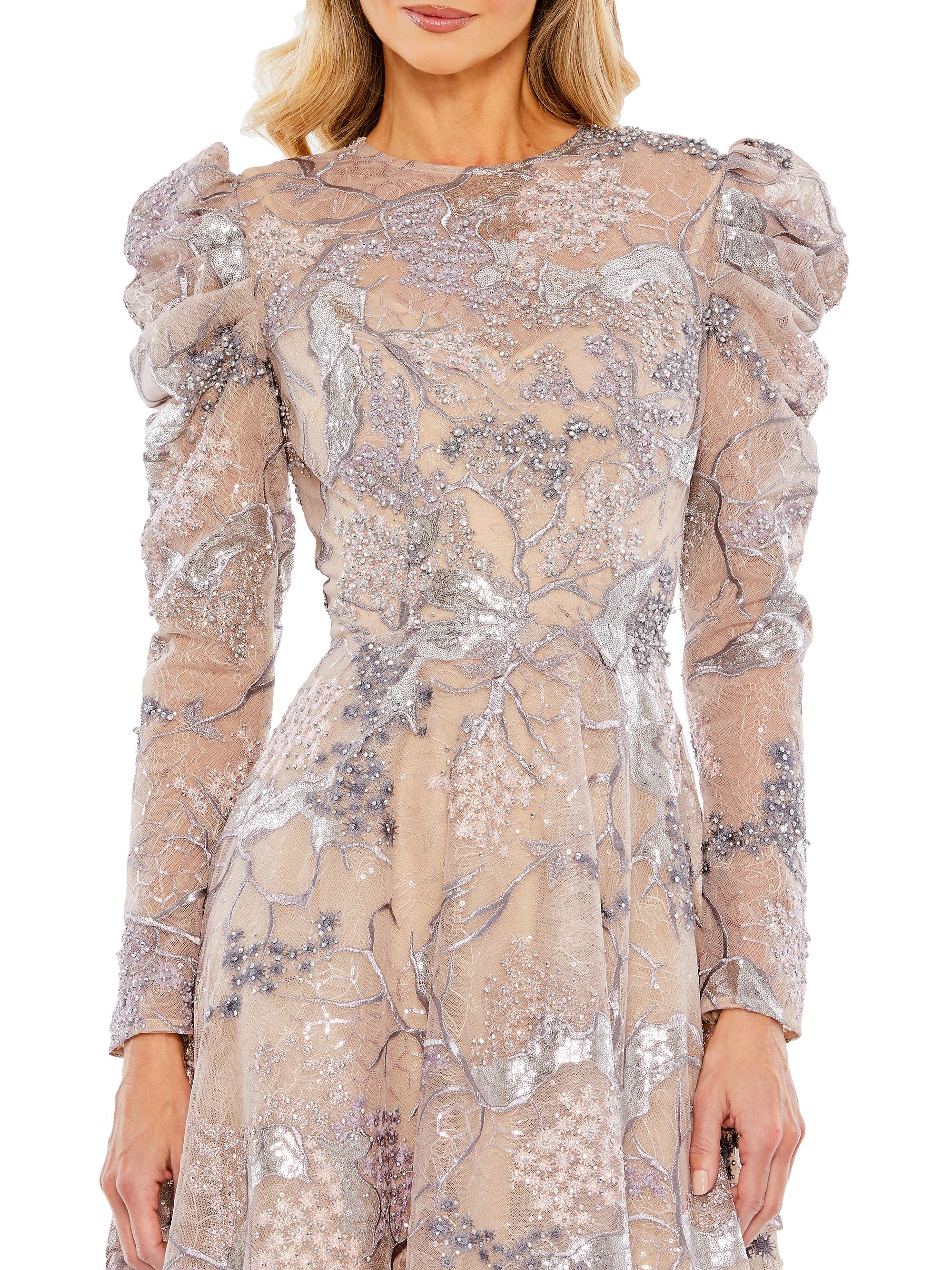 Mac Duggal Embellished High-Neck Puff-Sleeve A Line Dress