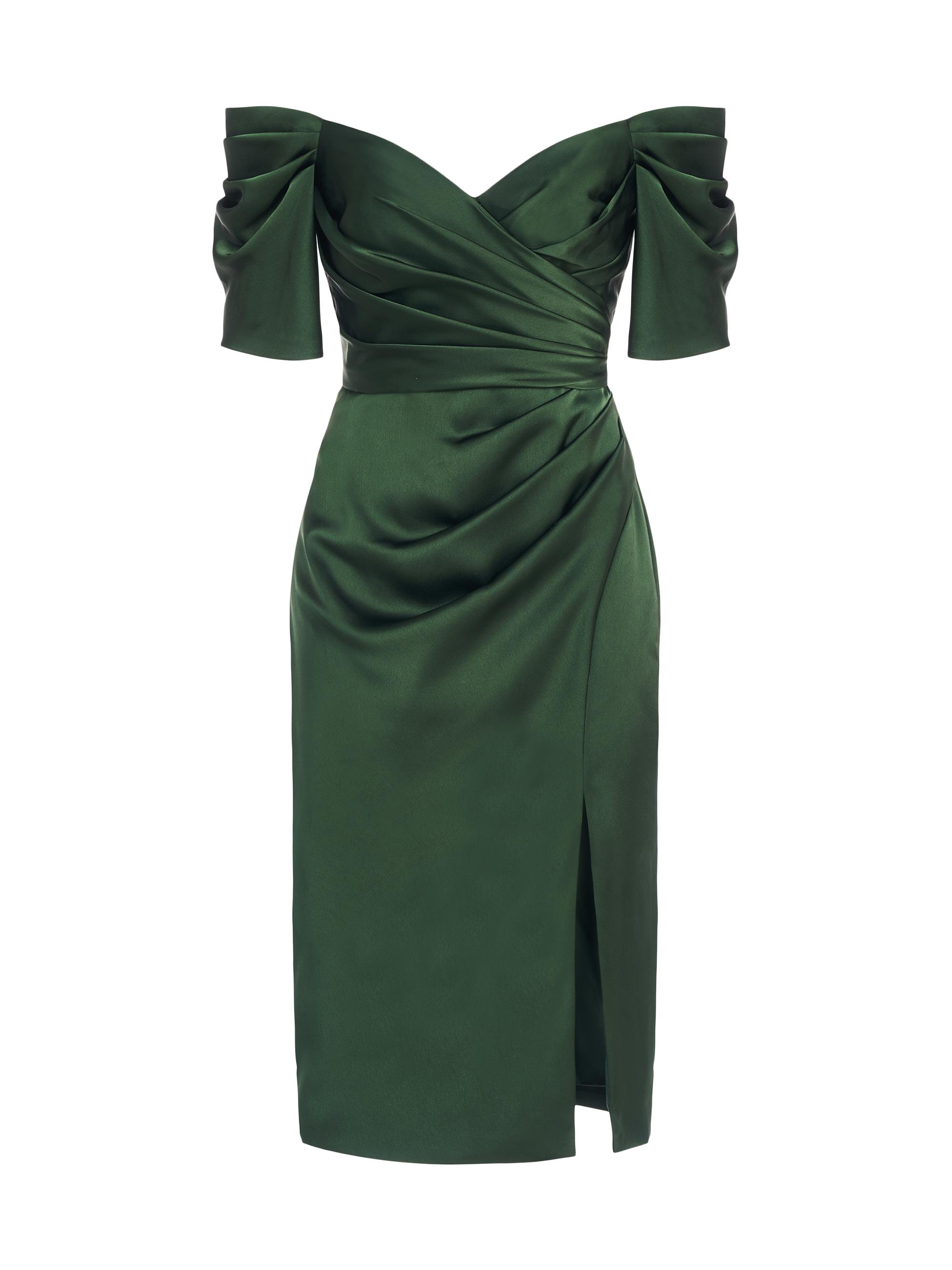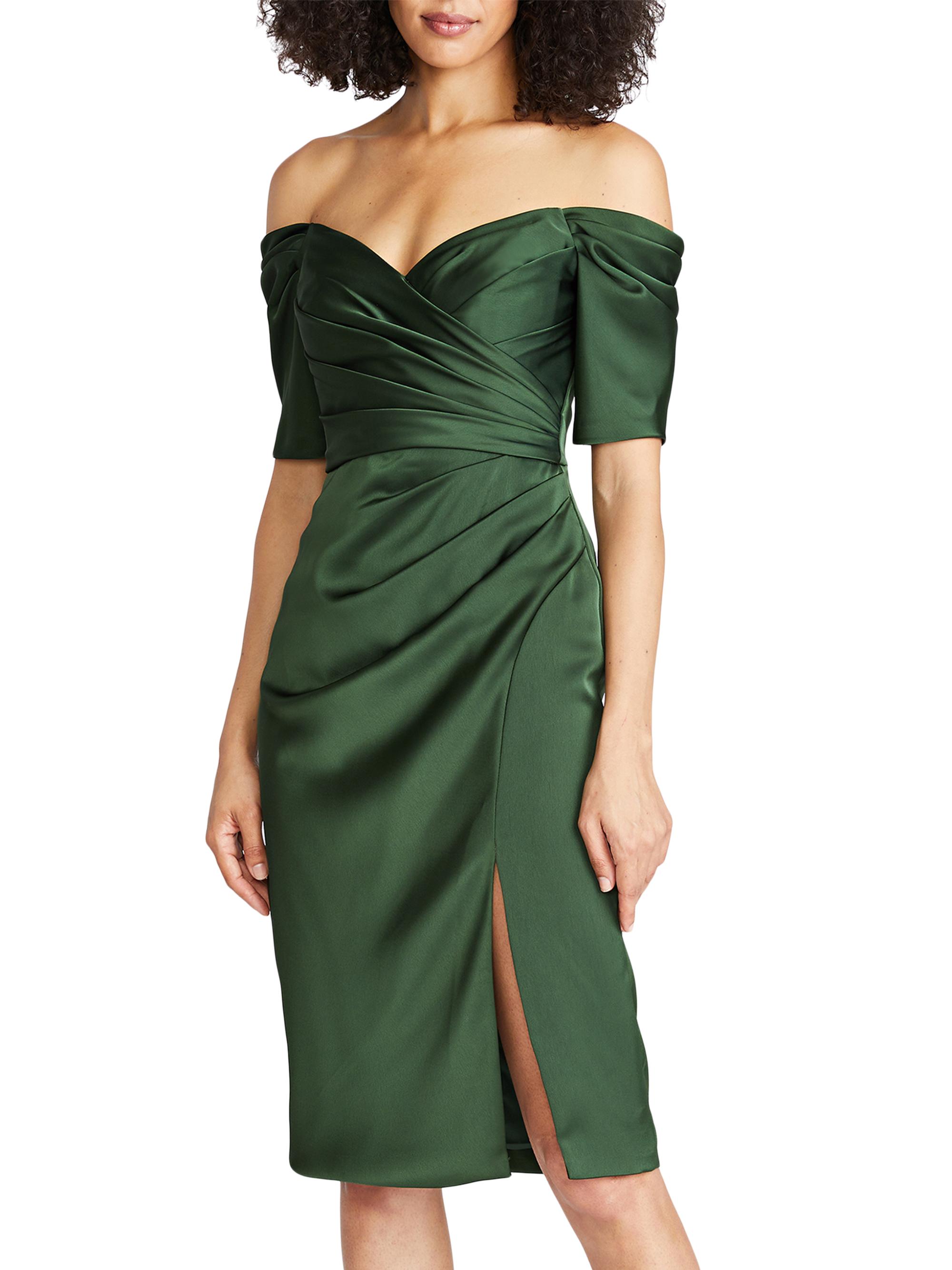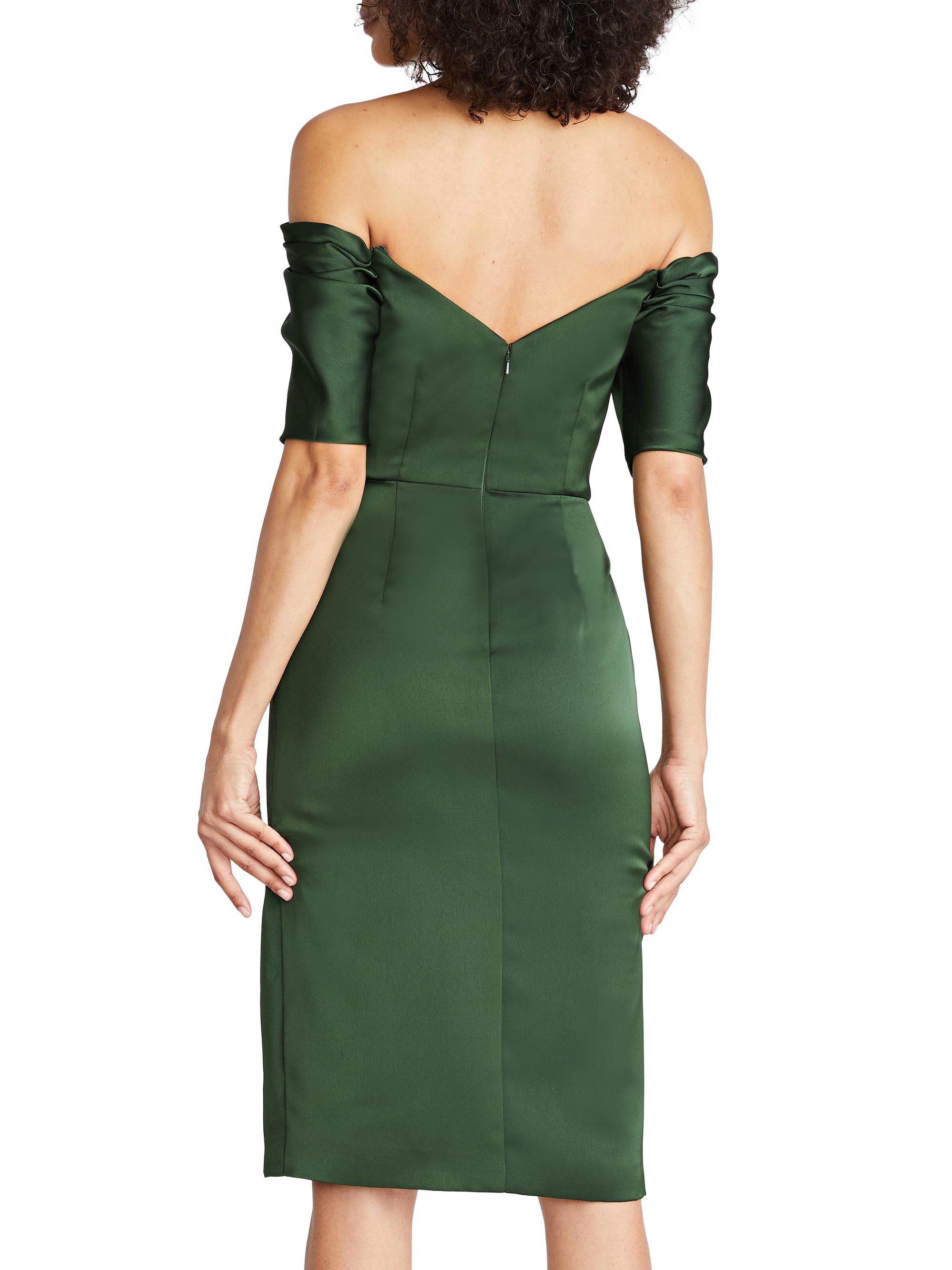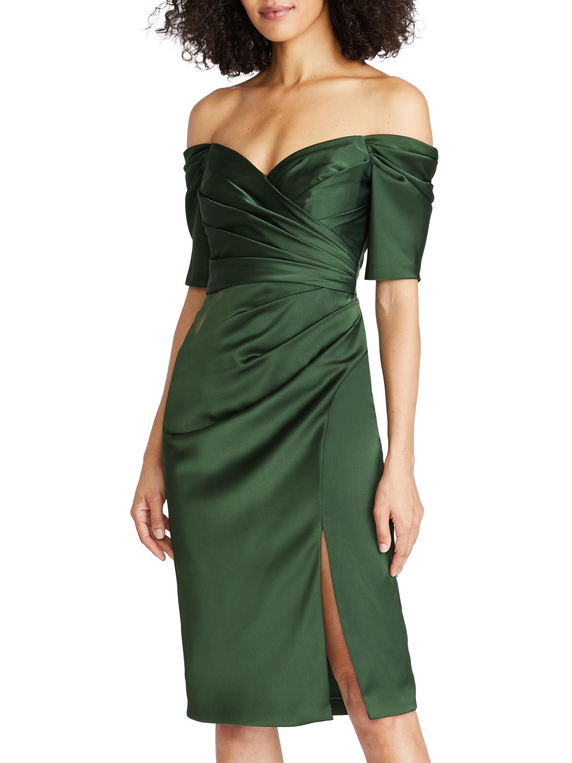 Theia Holland Satin Off-The-Shoulder Midi-Dress
