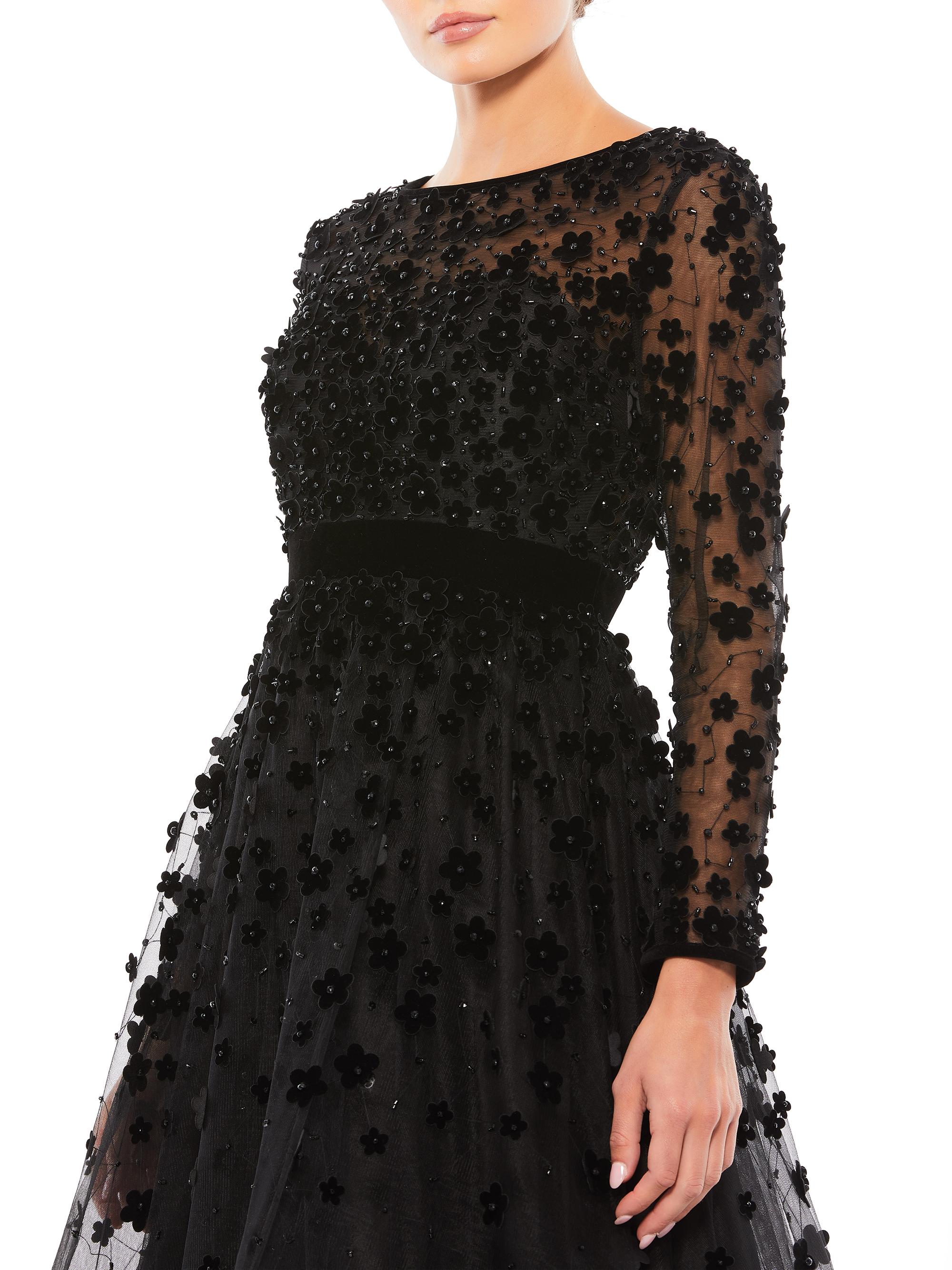 Mac Duggal Floral Applique Tea Dress
