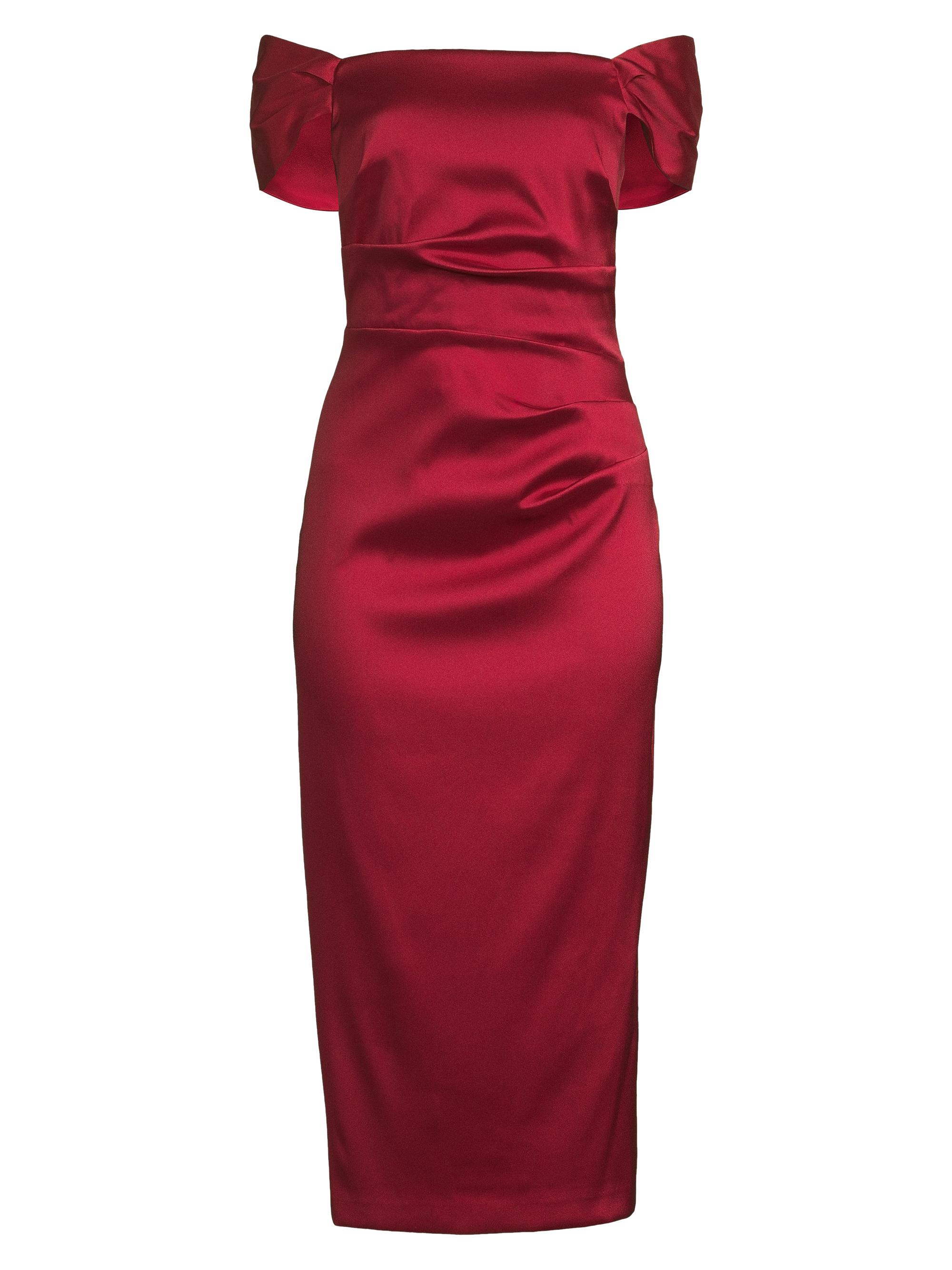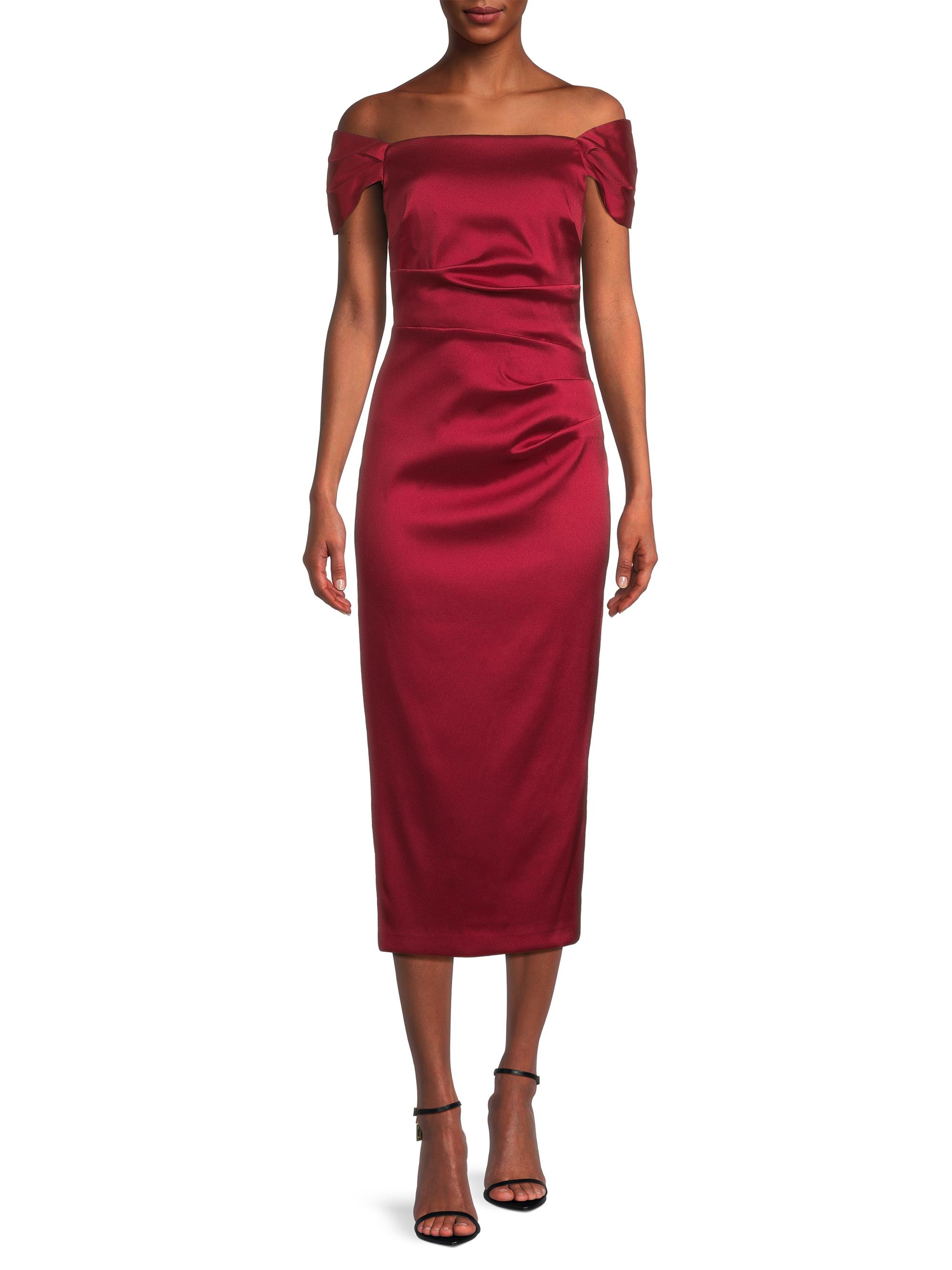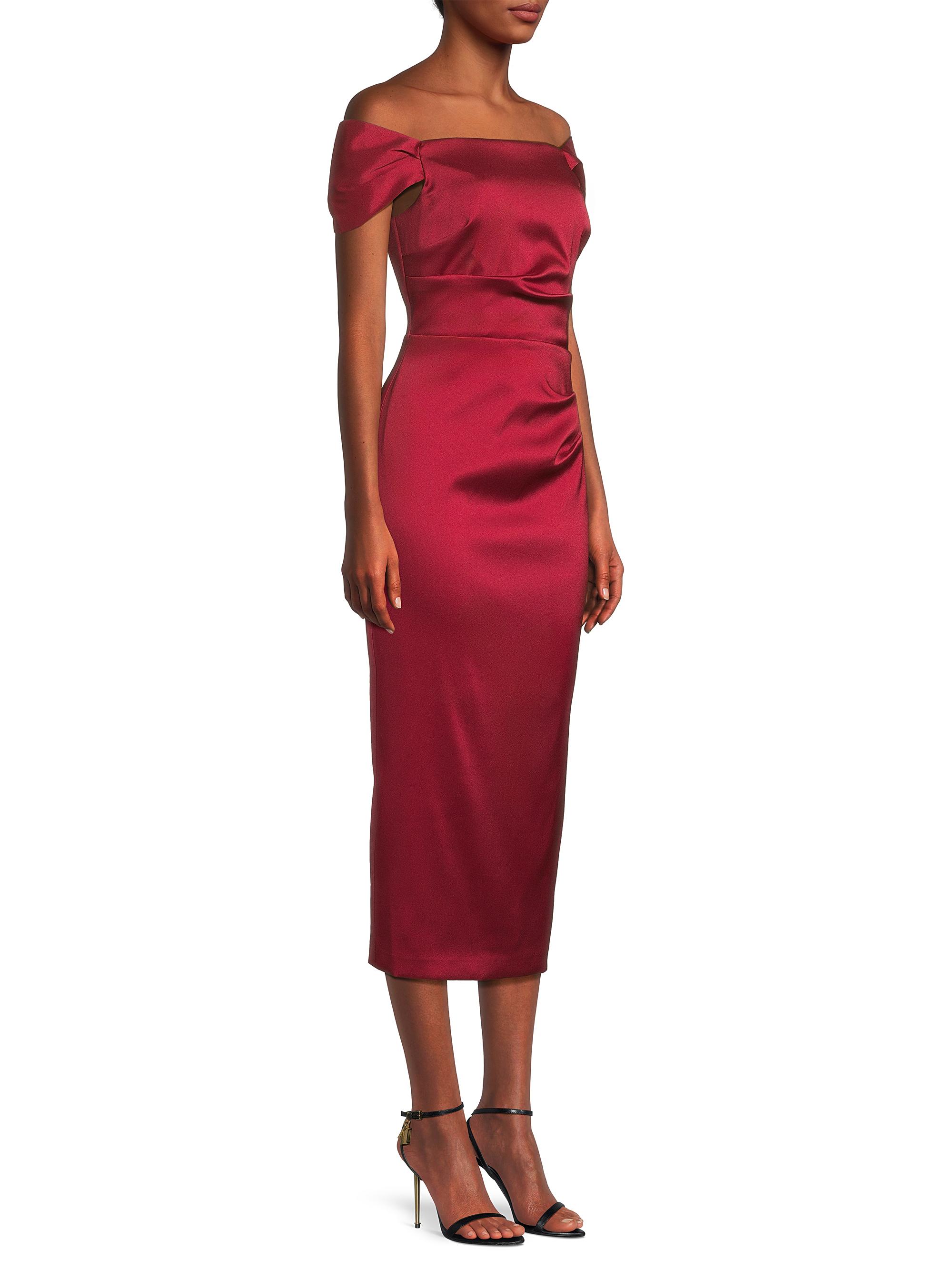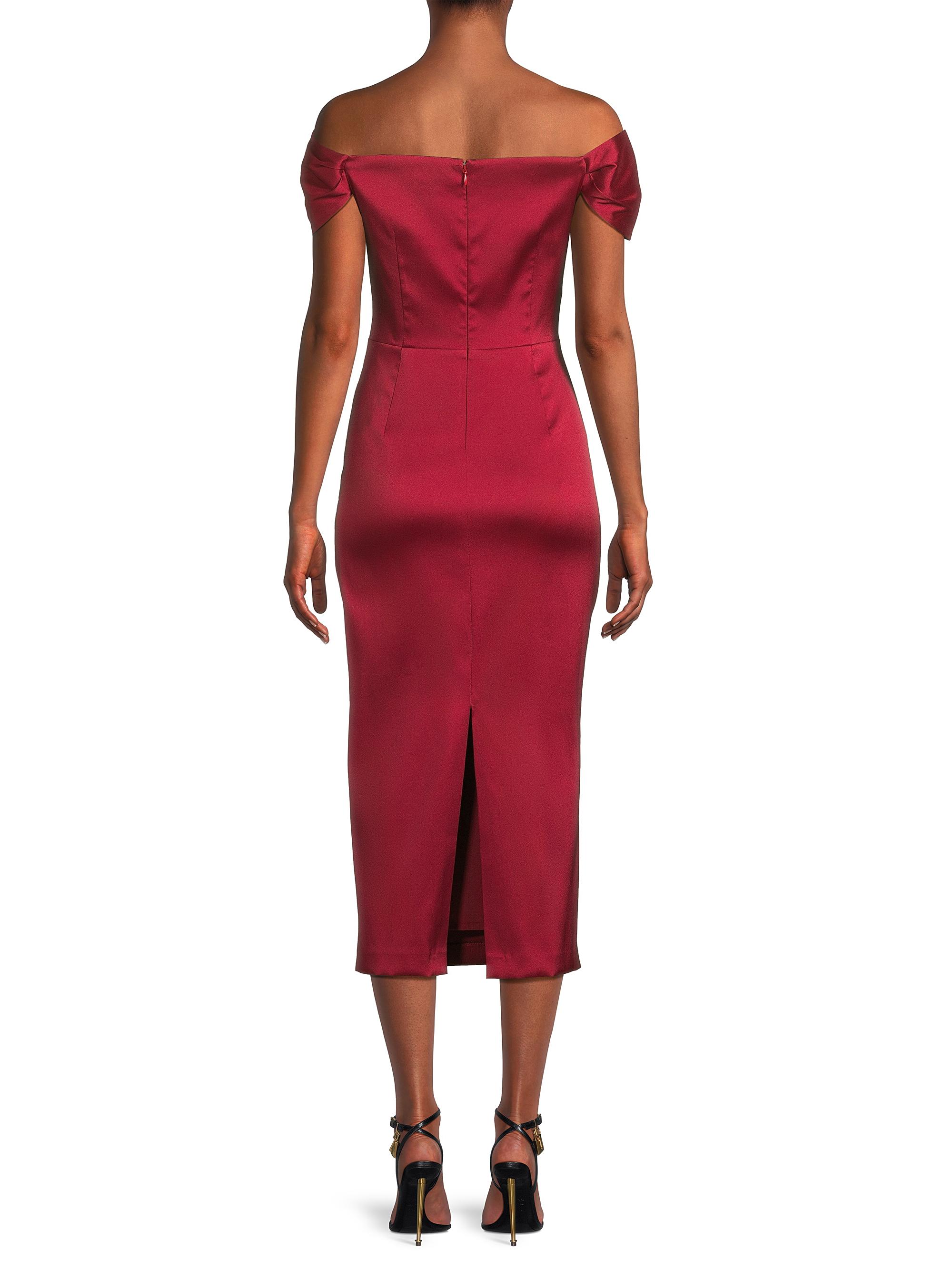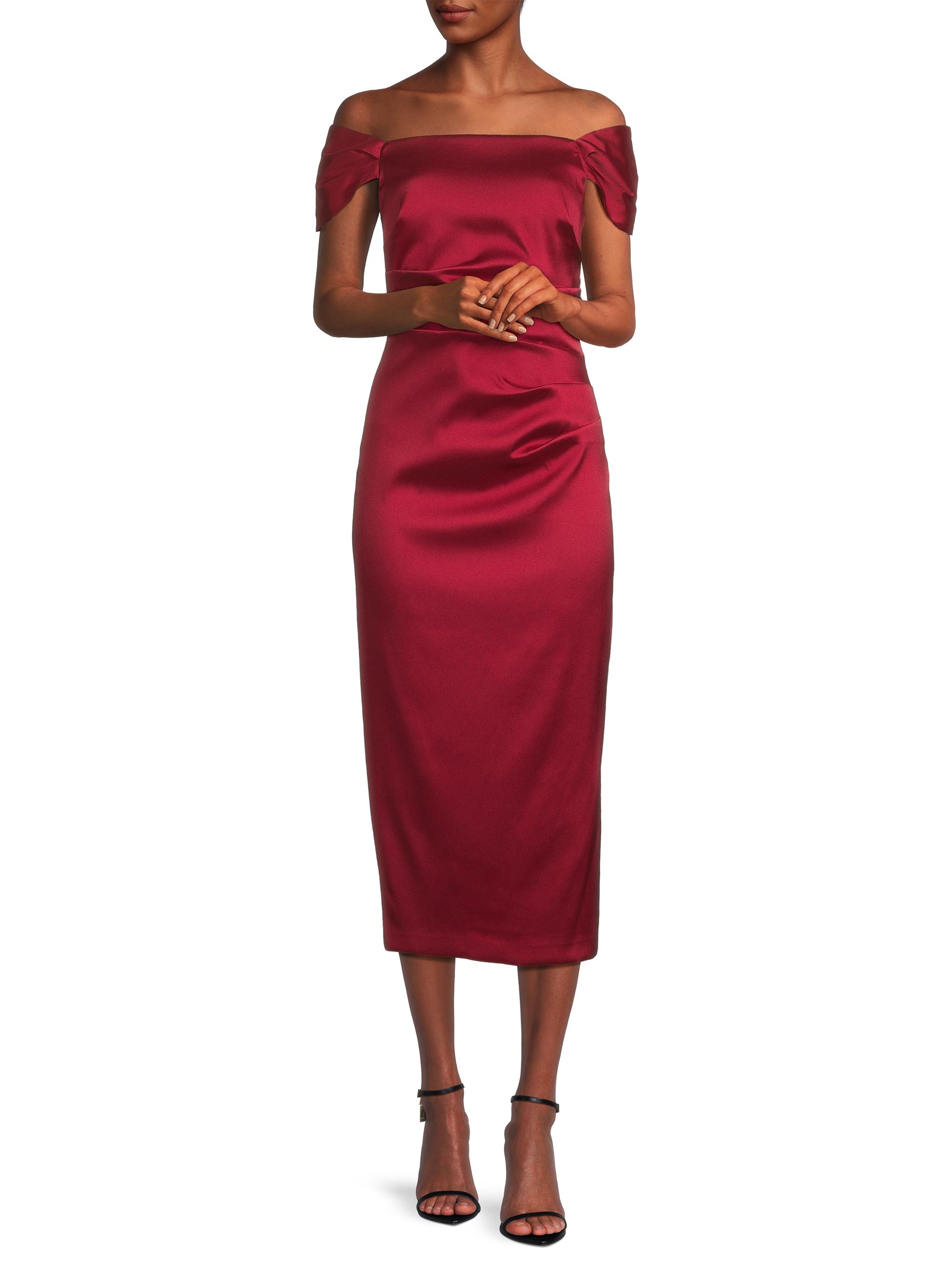Aidan Mattox Stretch Mikado Off-the-Shoulder Midi-Dress