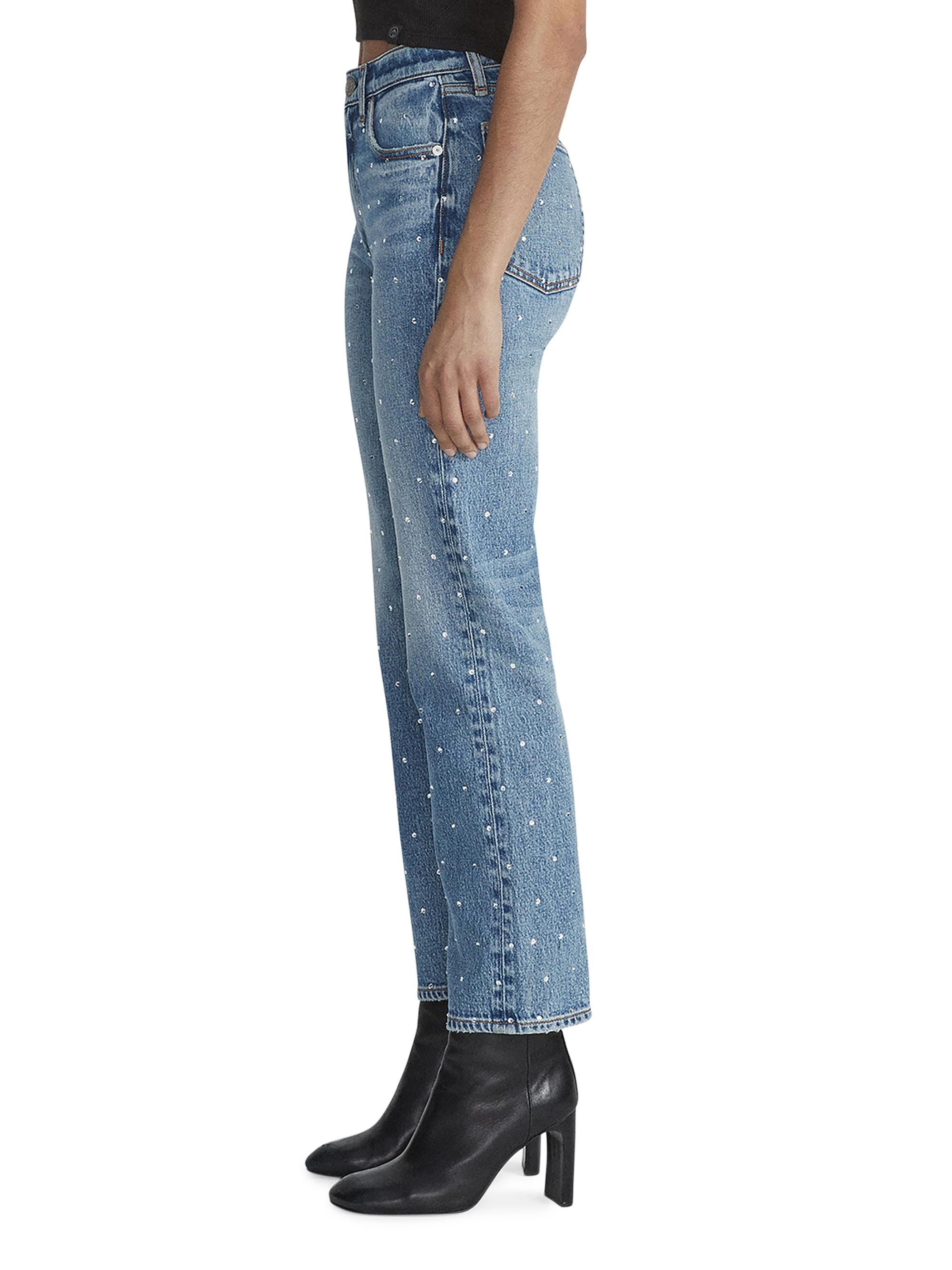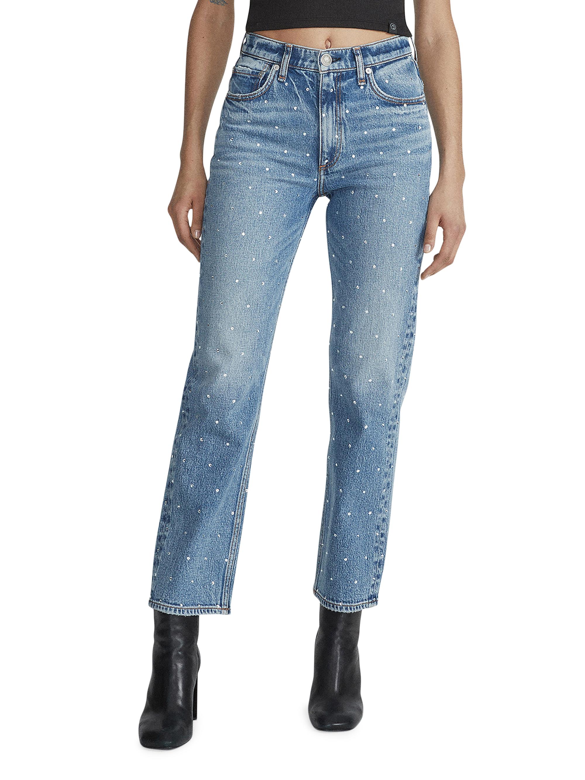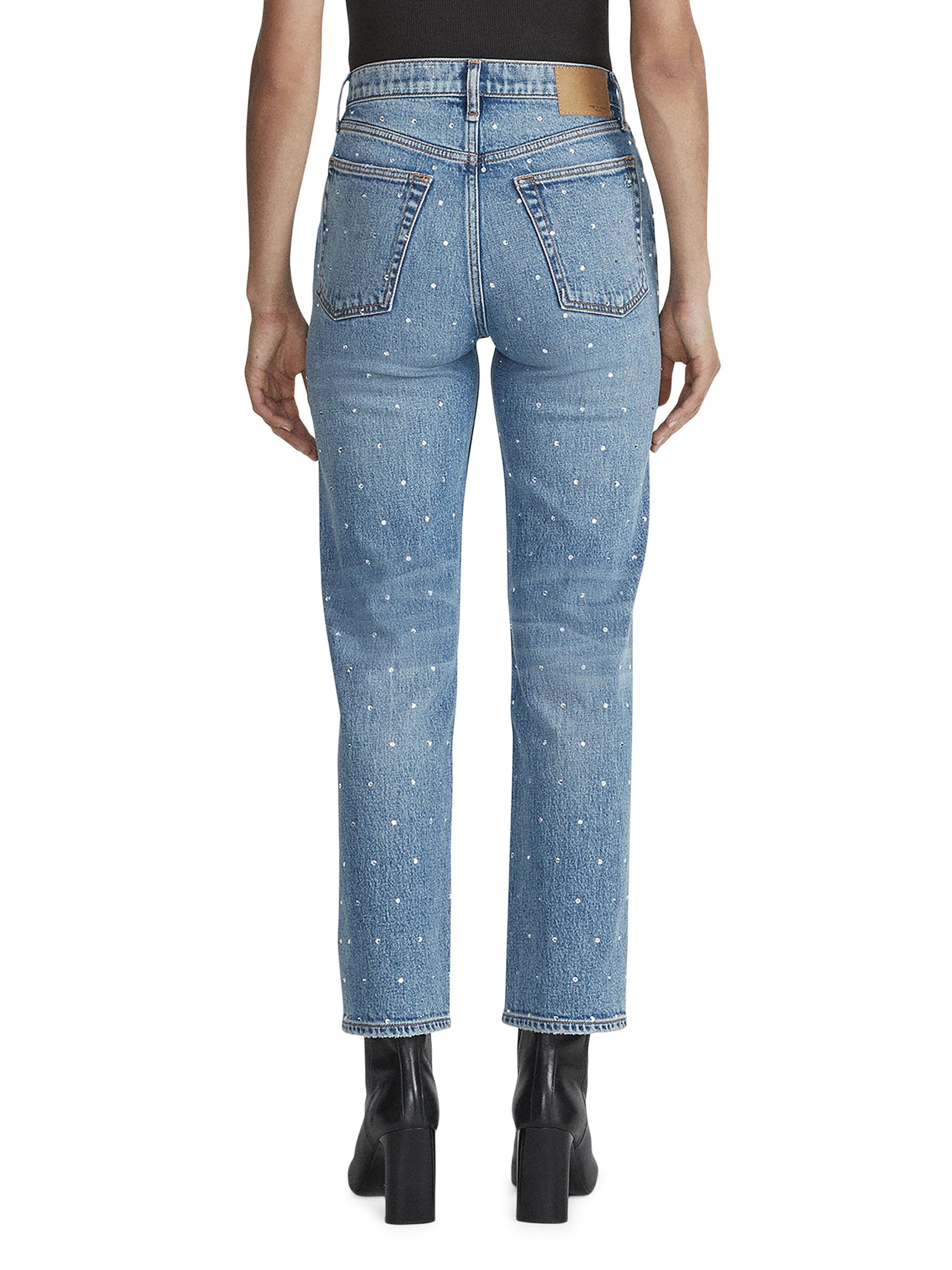 Rag & bone Harlow Jeweled Mid-Rise Straight Ankle Jeans