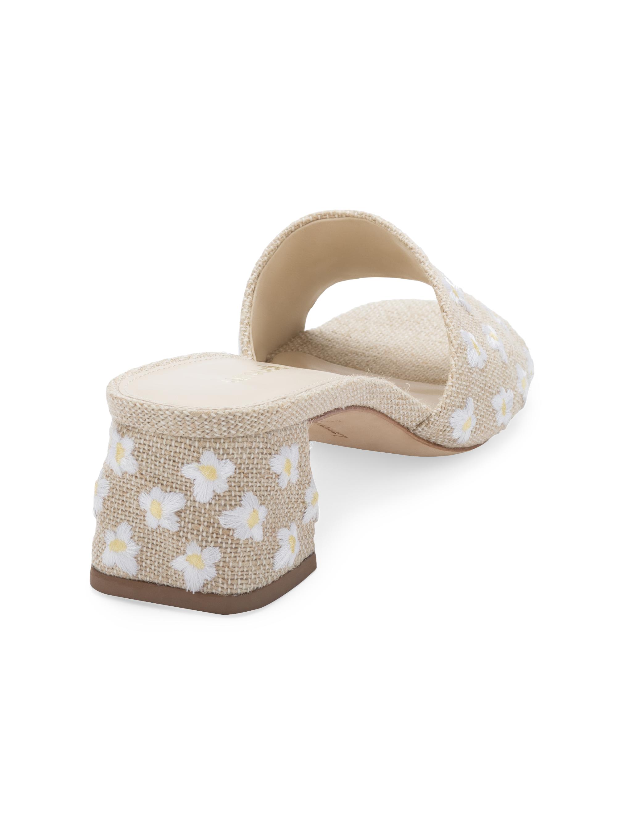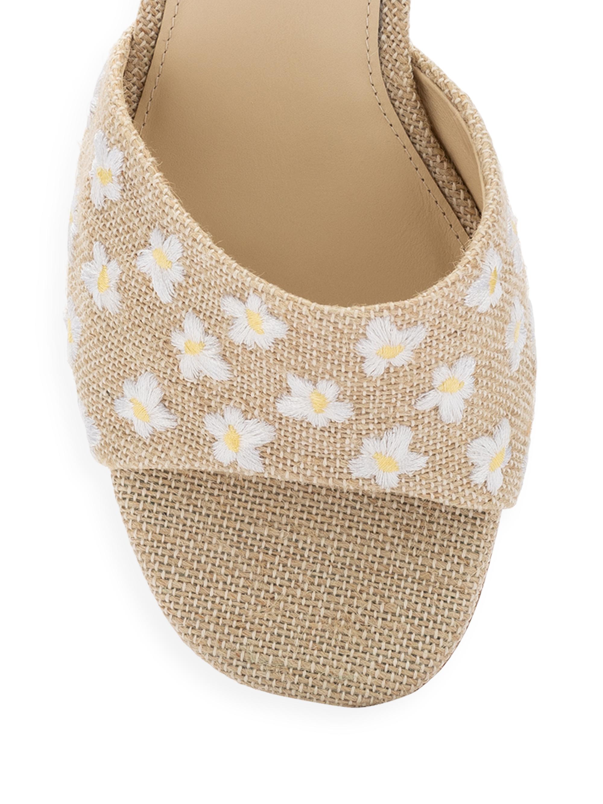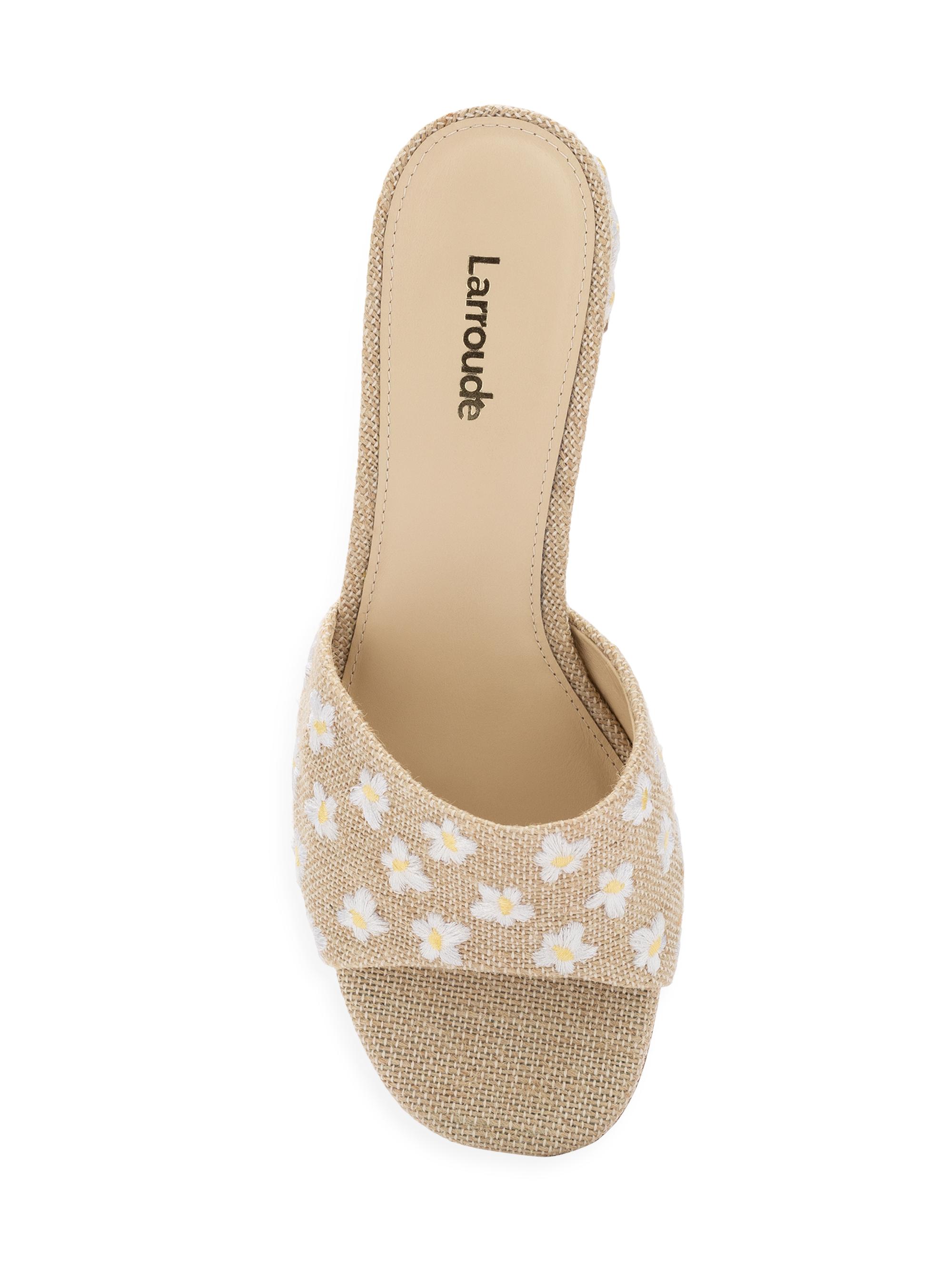 Larroude Brigitte Flower-Embroidered Linen Mules