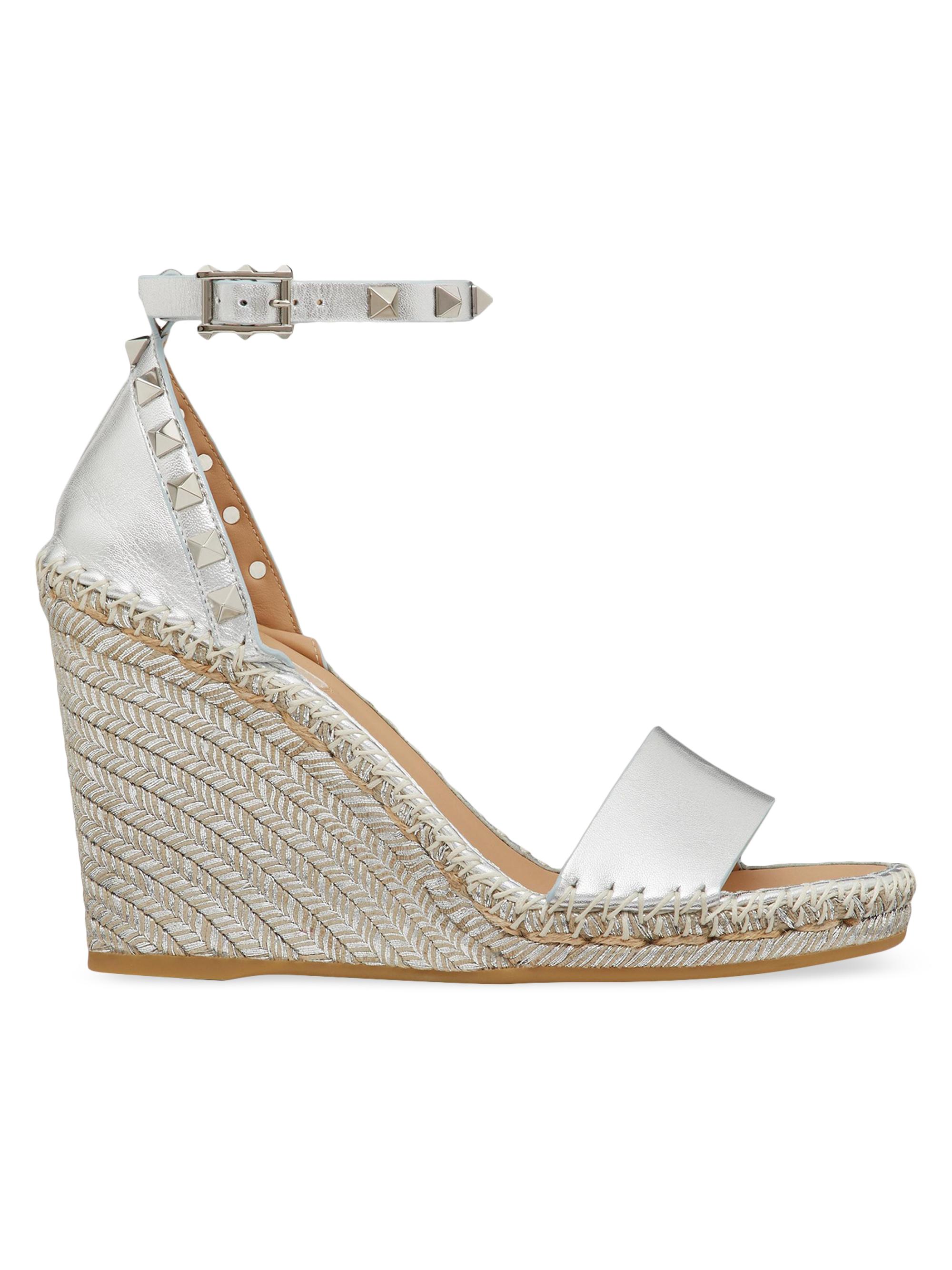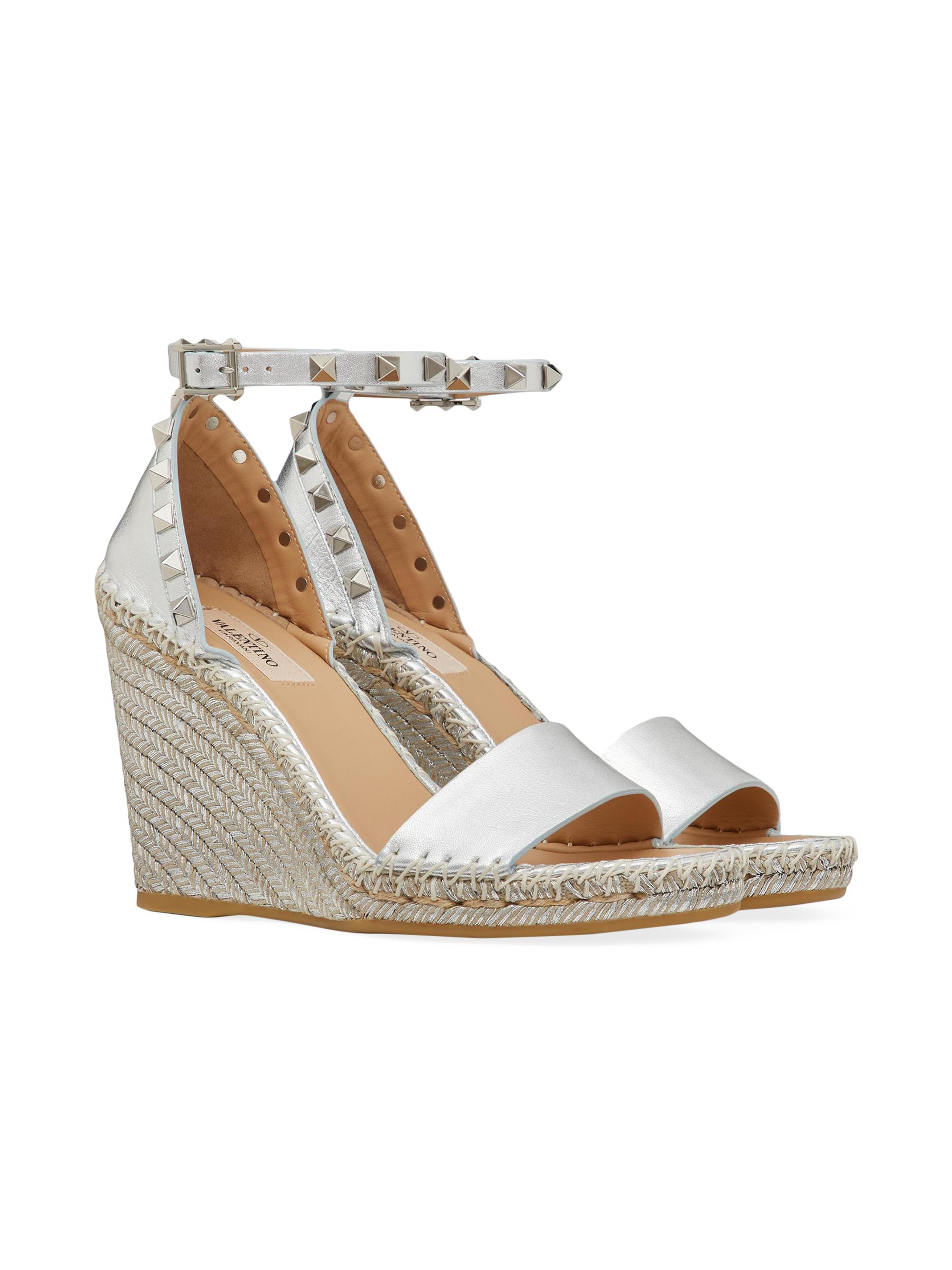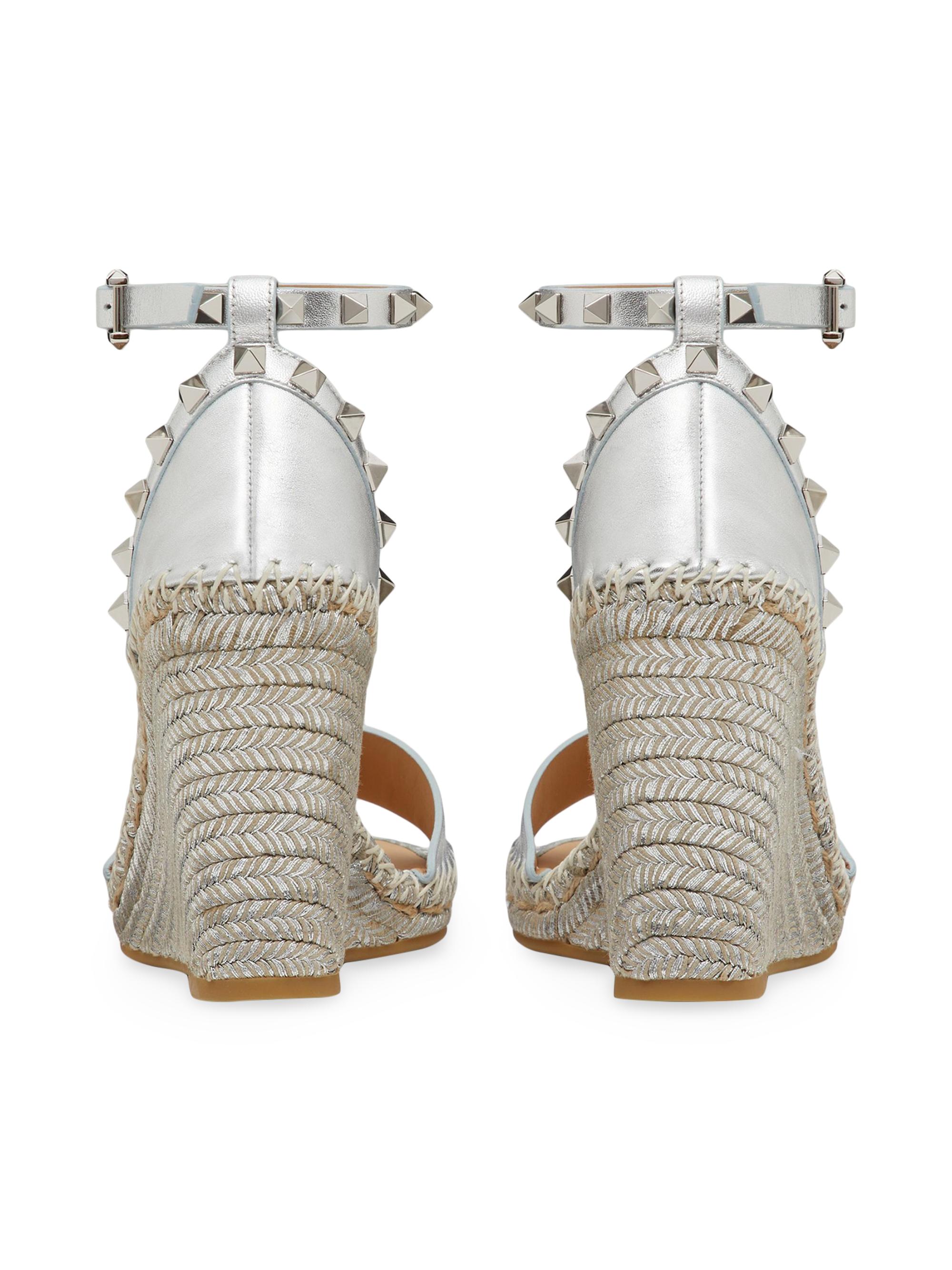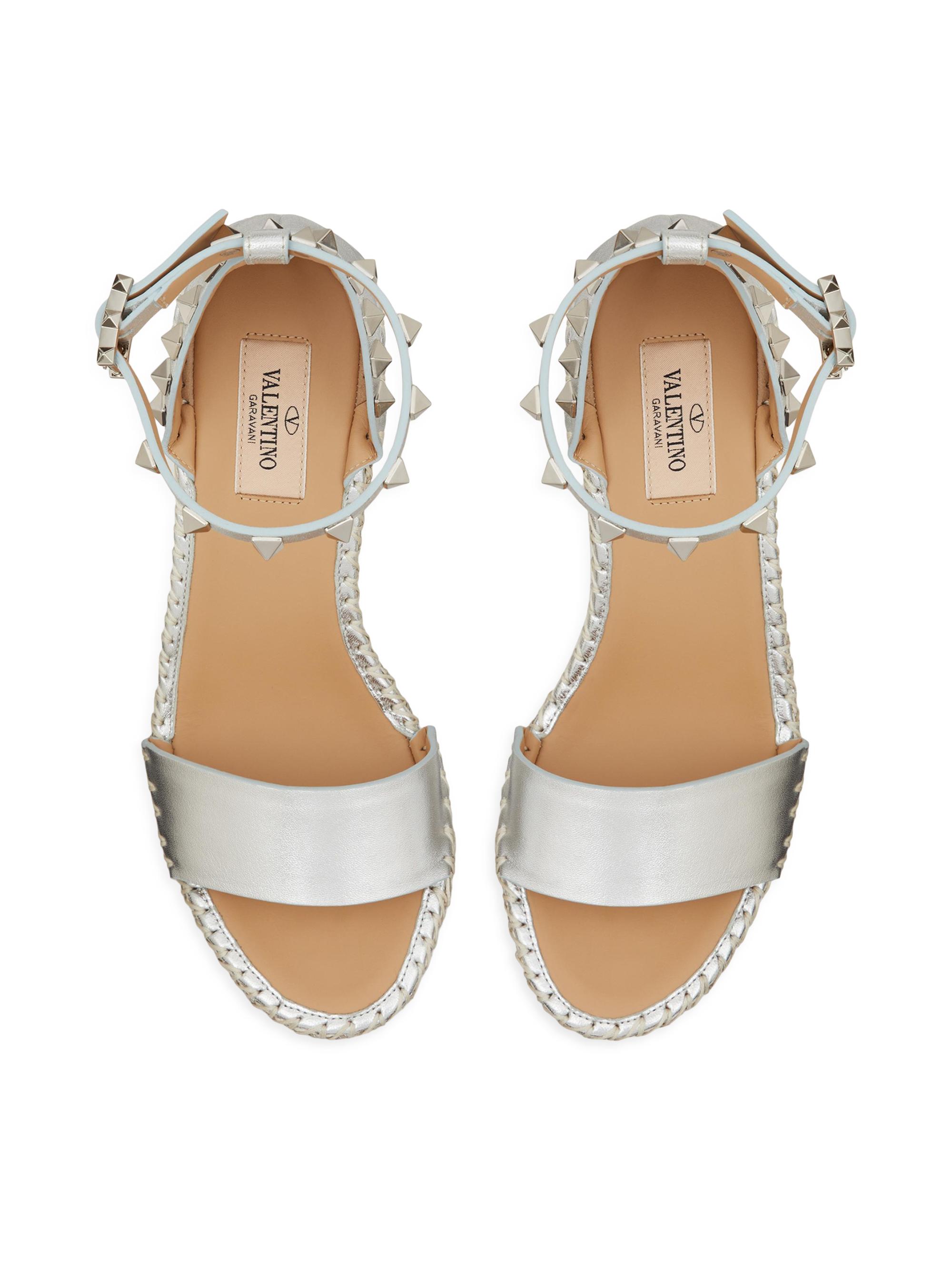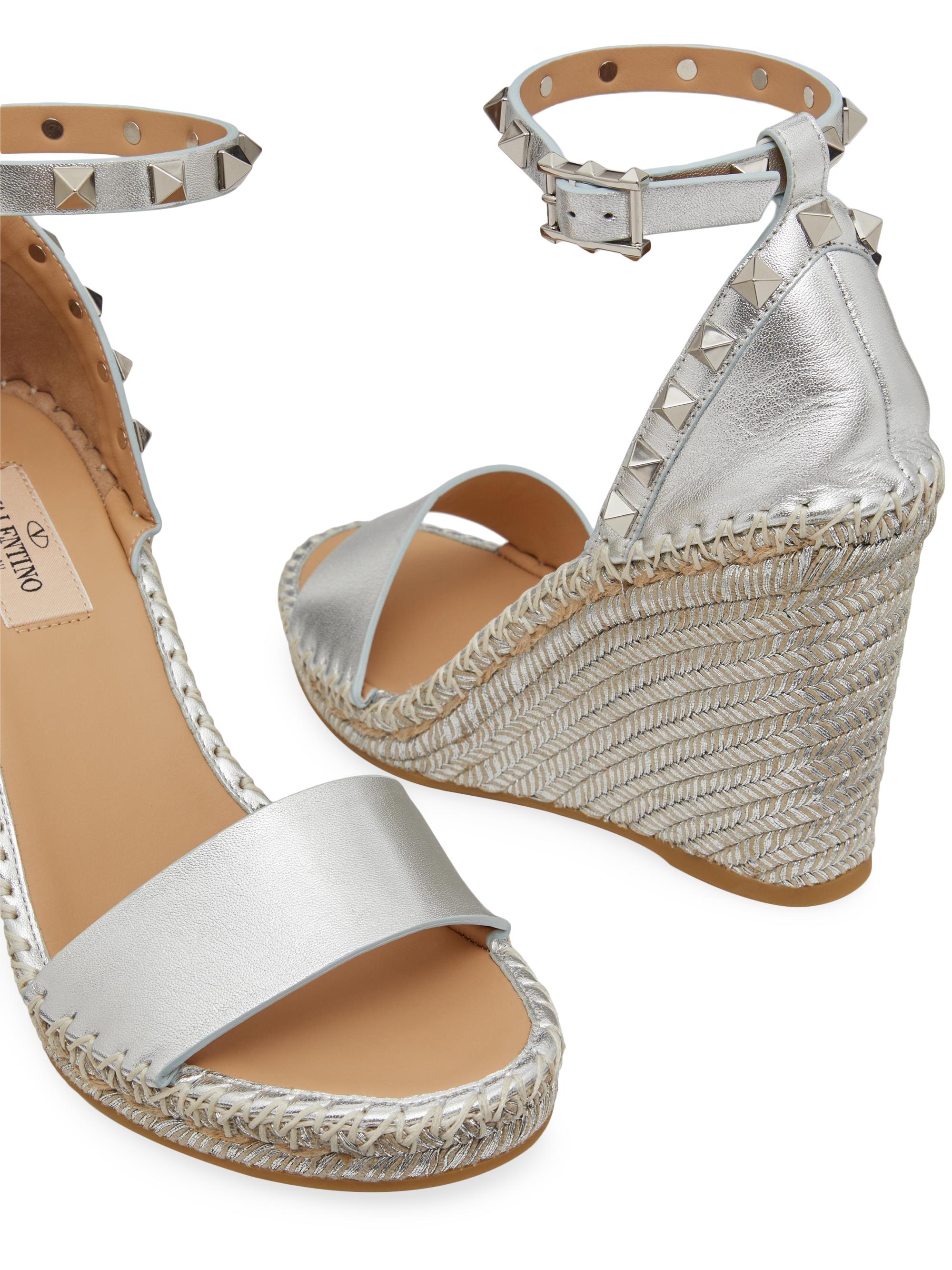 Valentino Garavani Rockstud Double Wedge Sandals in Metallic Nappa Leather 95 mm