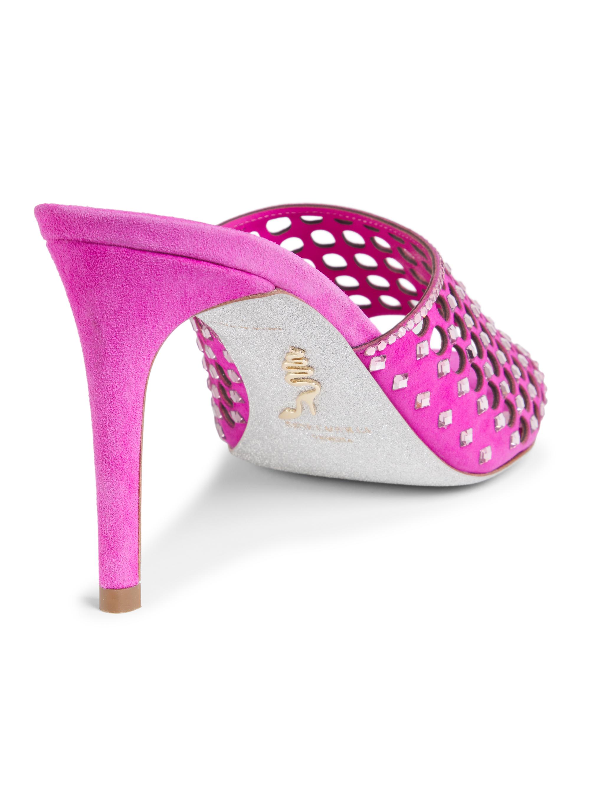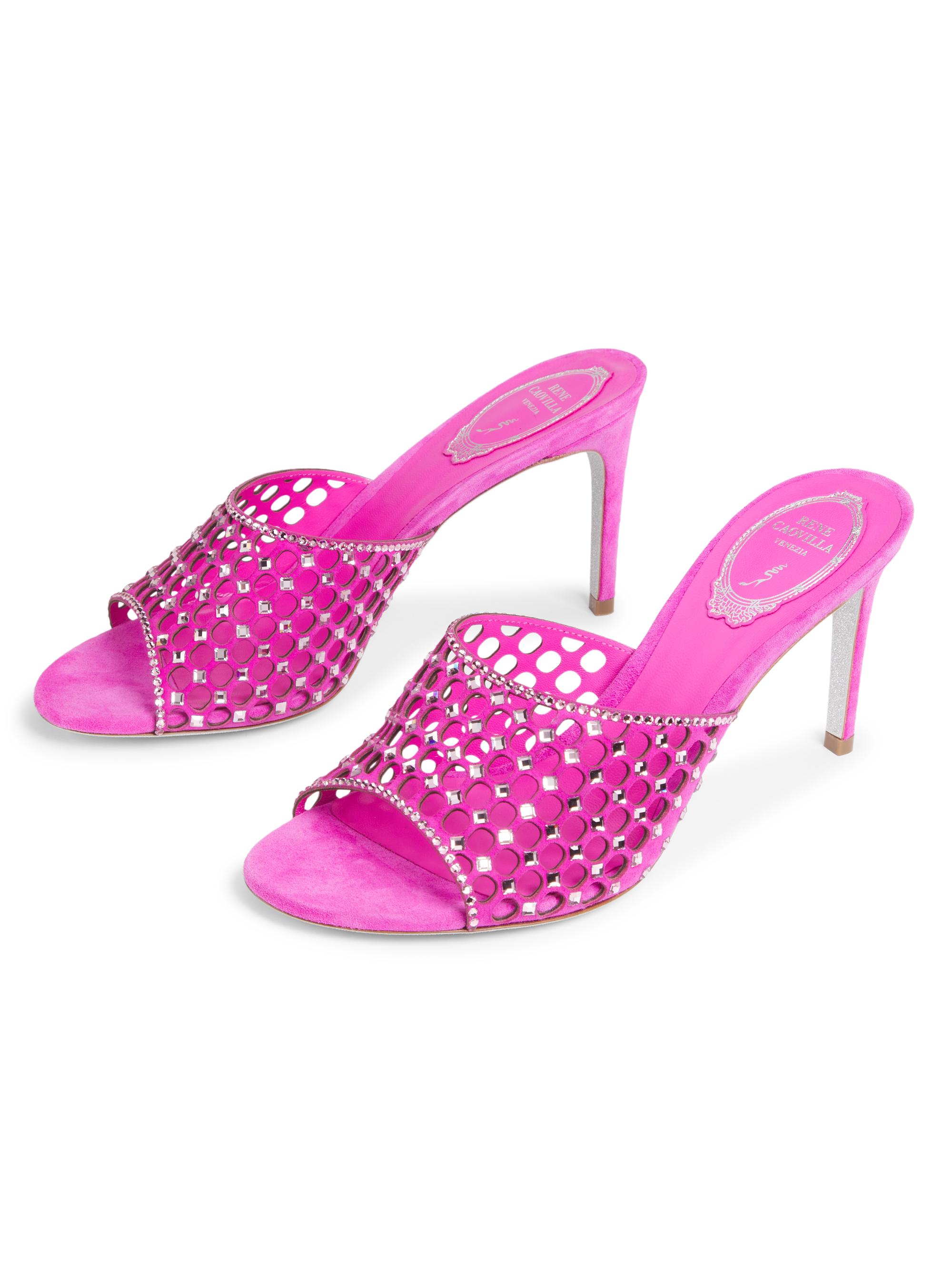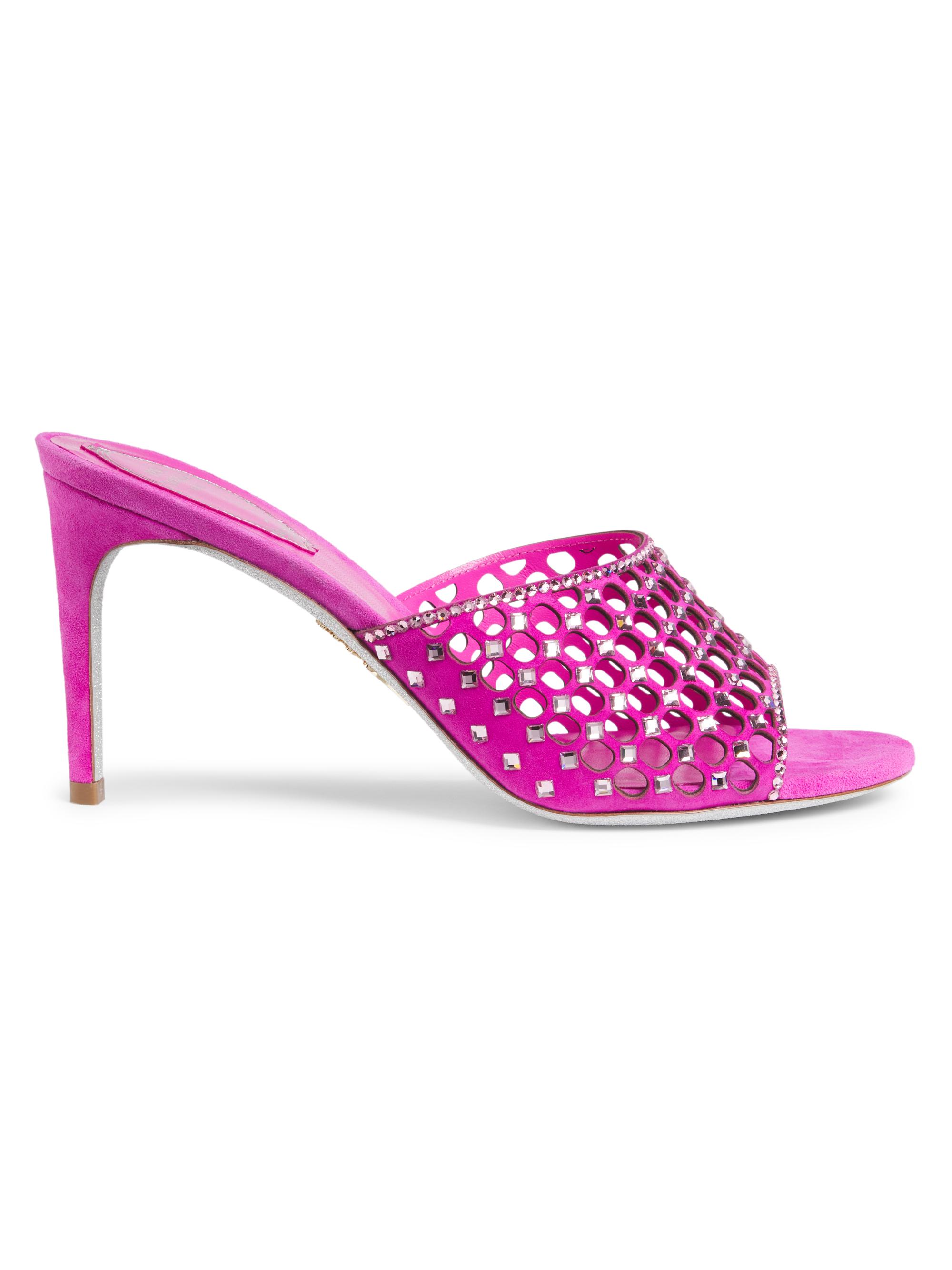 Rene Caovilla 80MM Crystal-Embellished Suede Mules