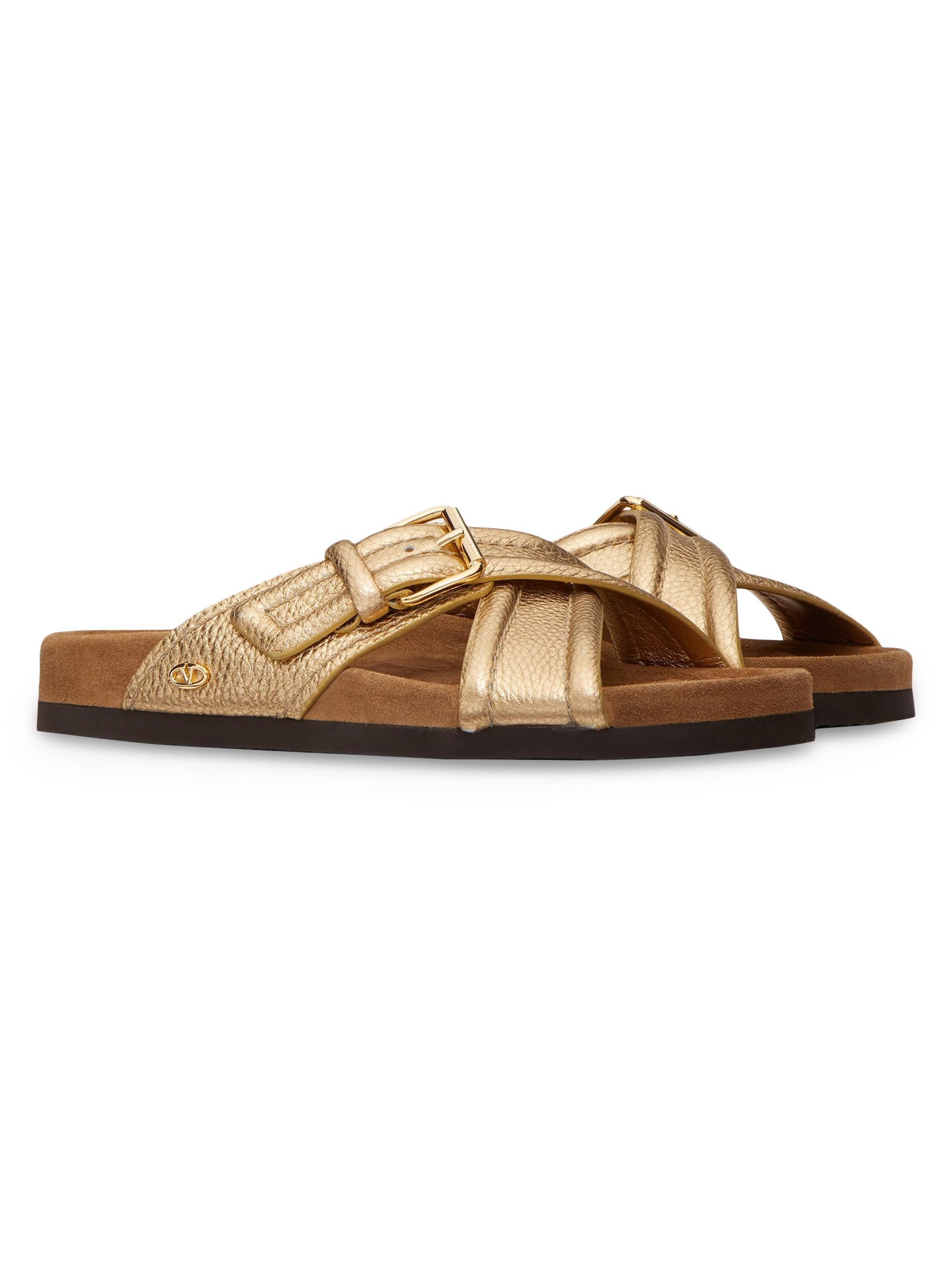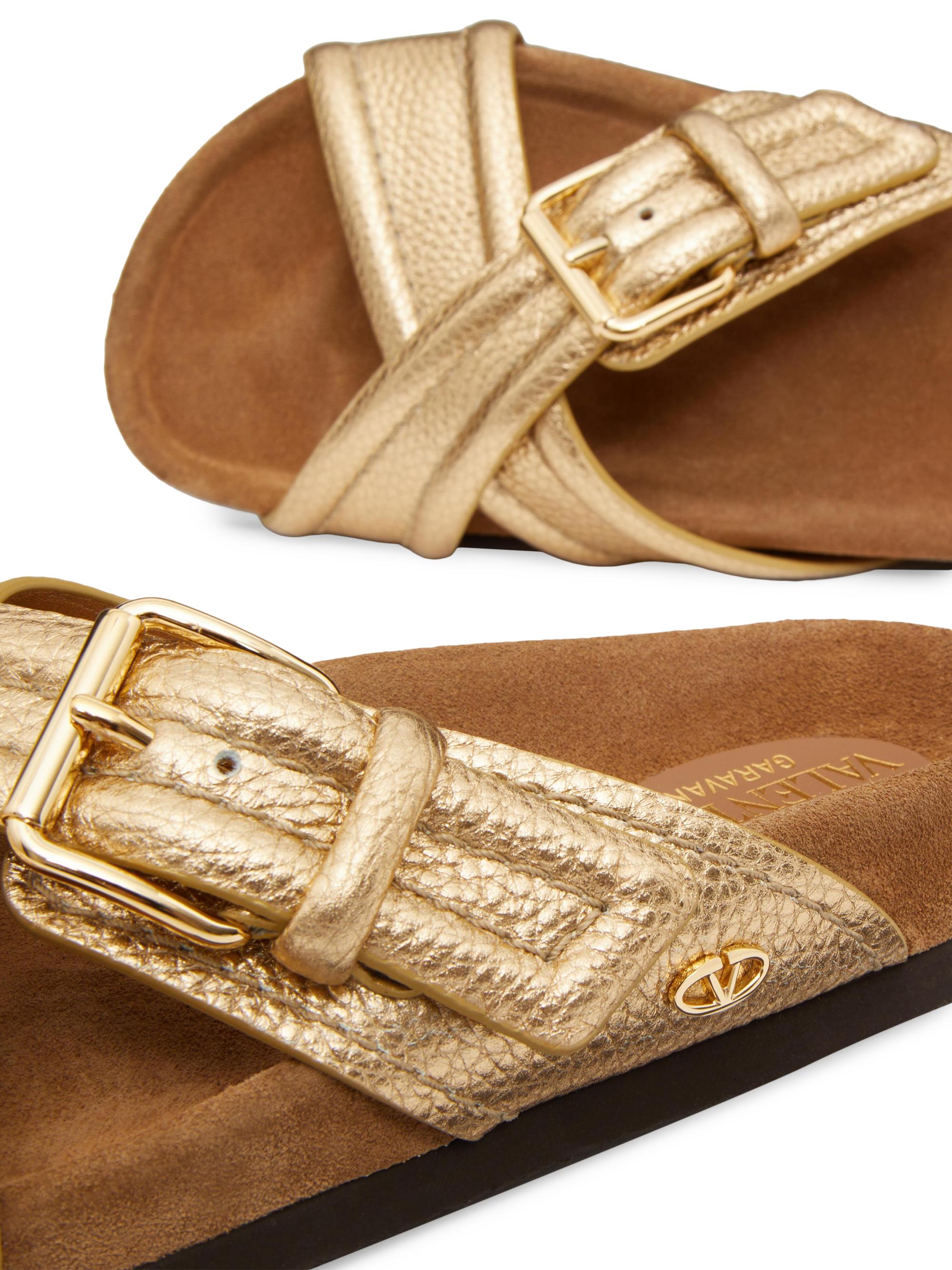 Valentino Garavani Fussfriend Slide Sandals in Metallic Grainy Calfskin 30mm