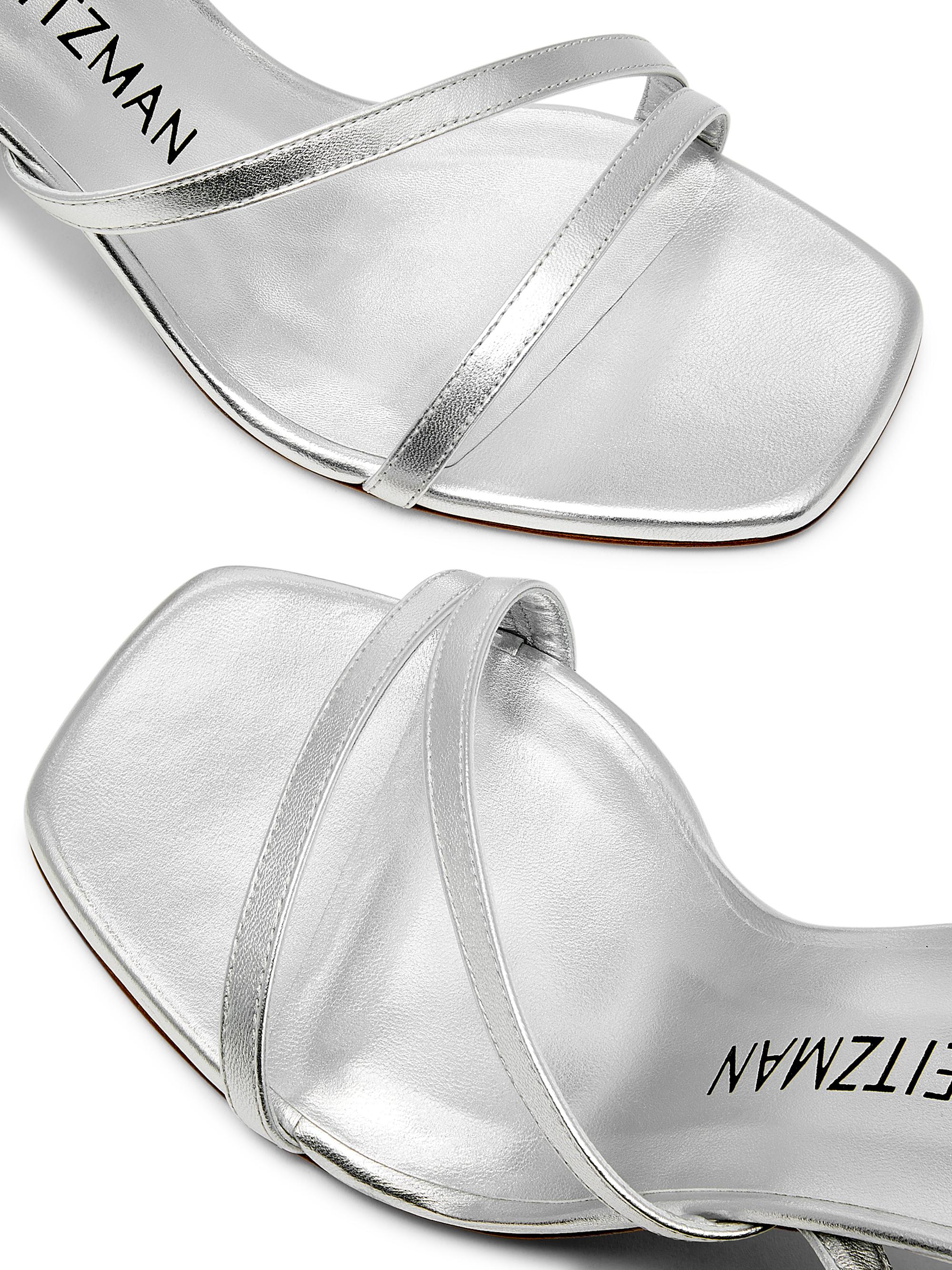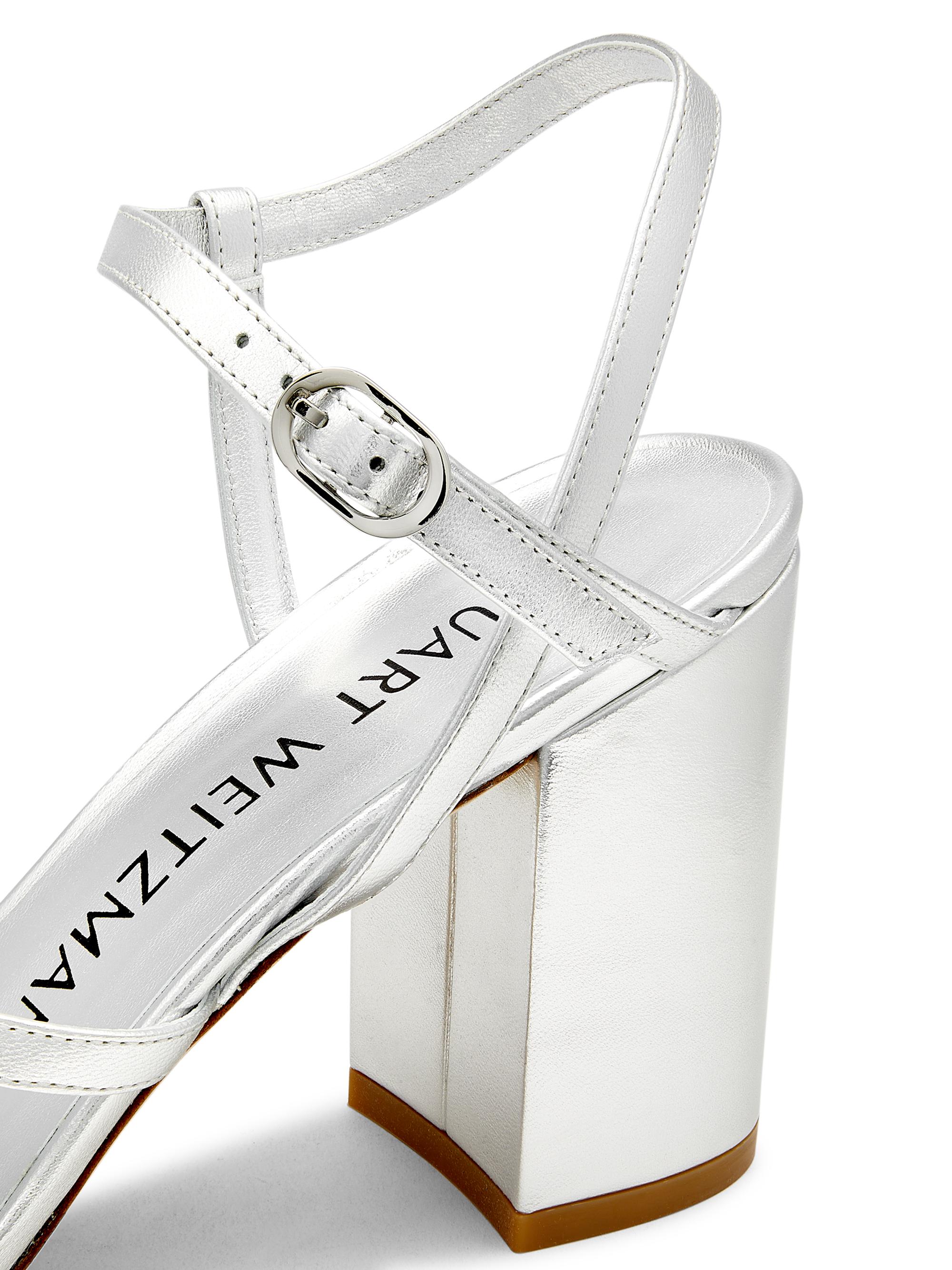 Stuart Weitzman Oasis 85MM Metallic Leather Block-Heel Sandals