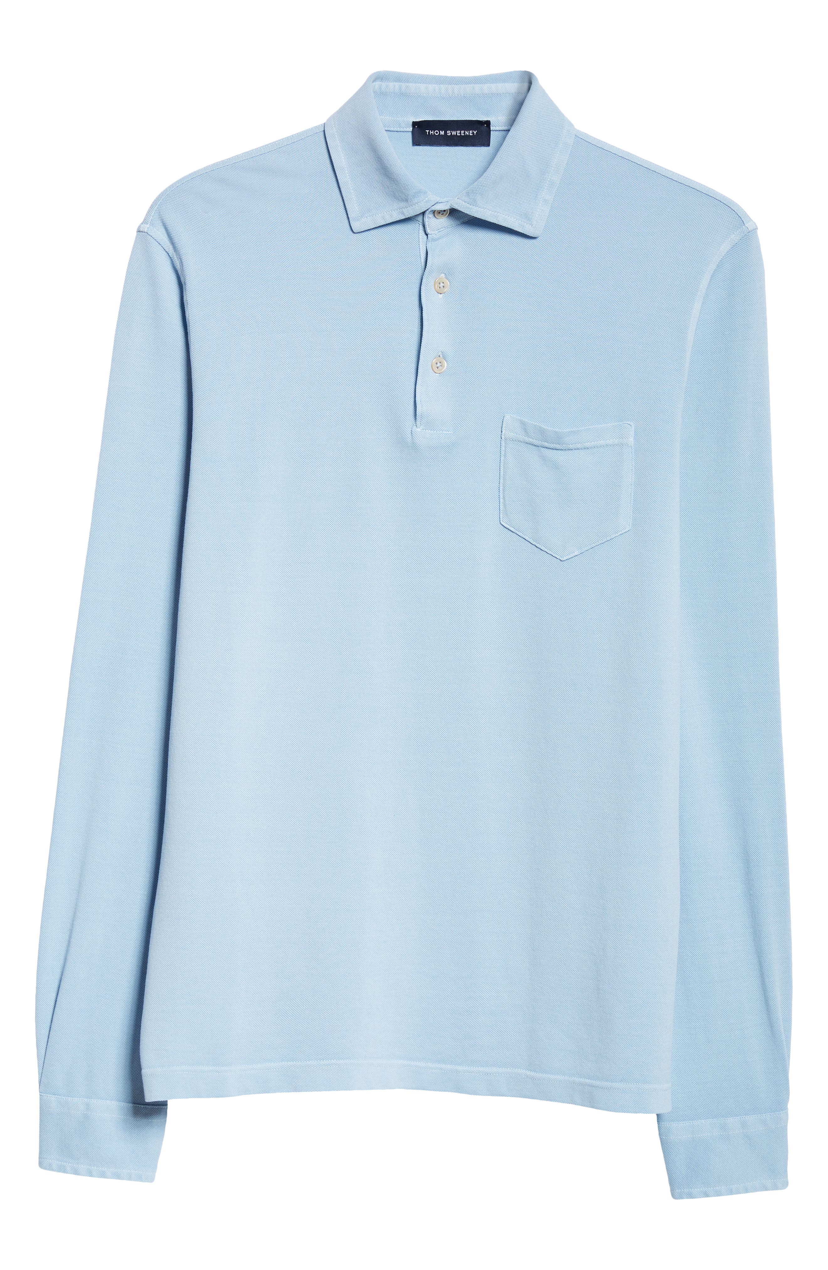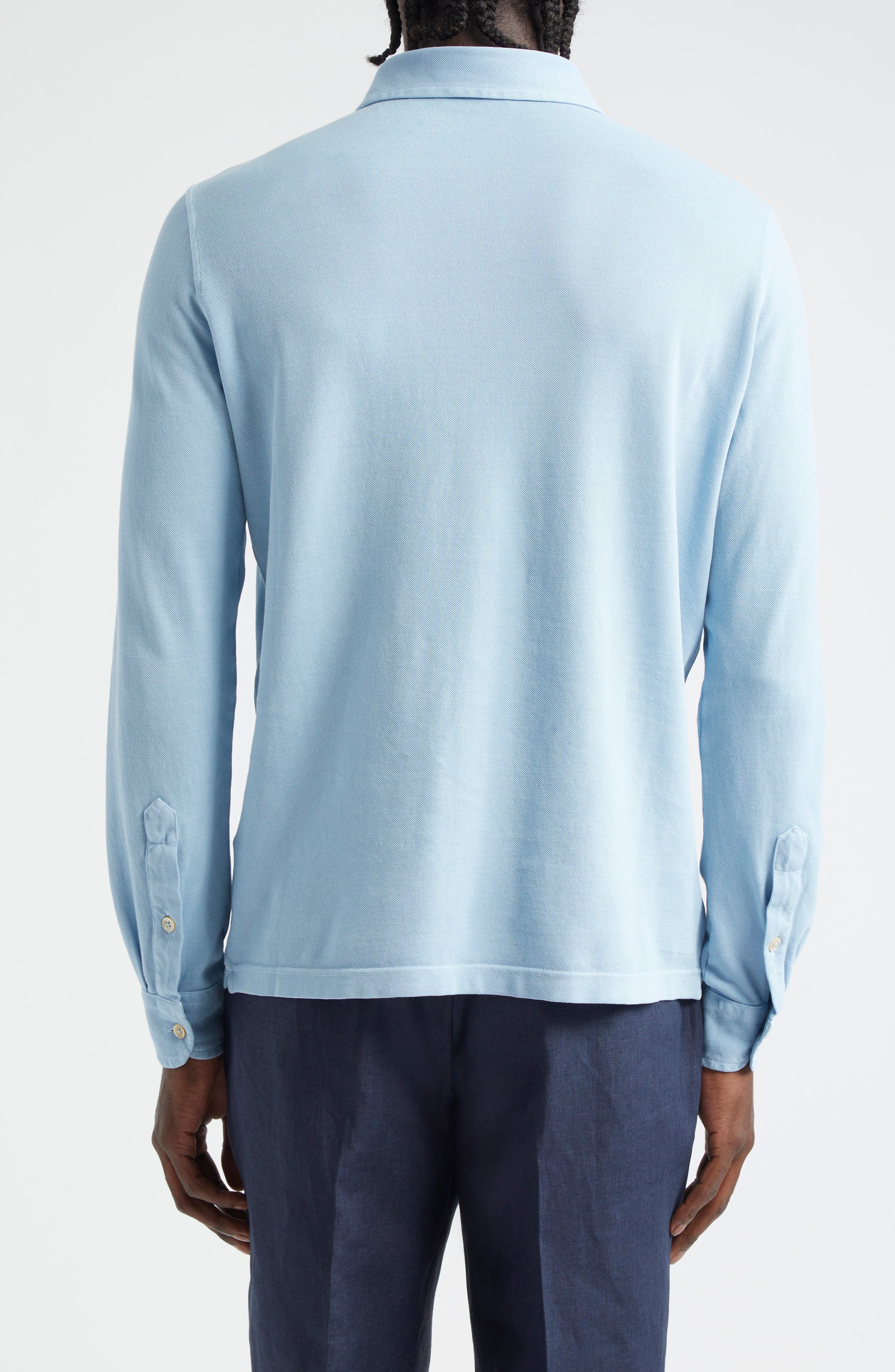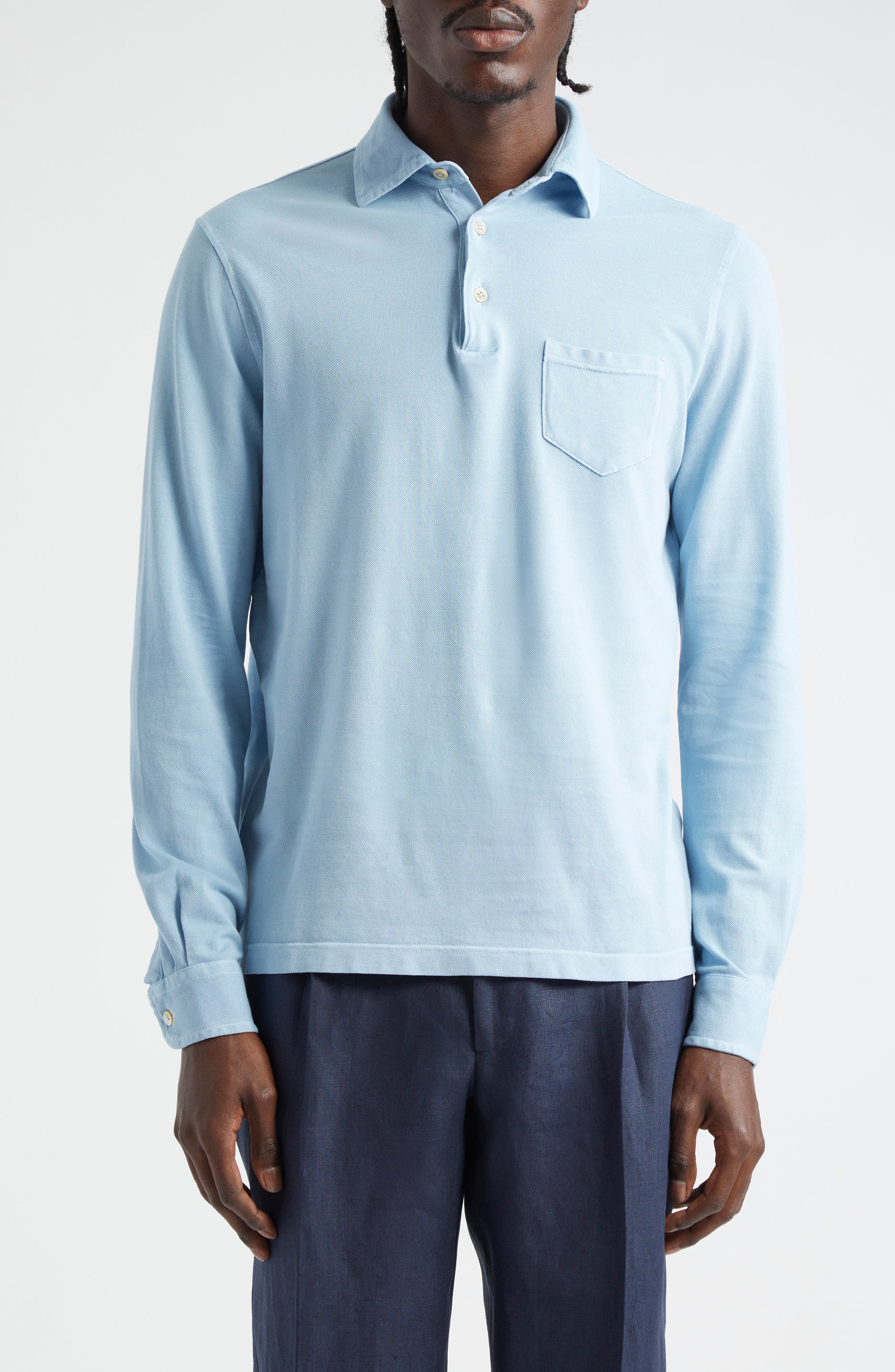 Thom Sweeney Long Sleeve Cotton Pique Polo_Light Blue