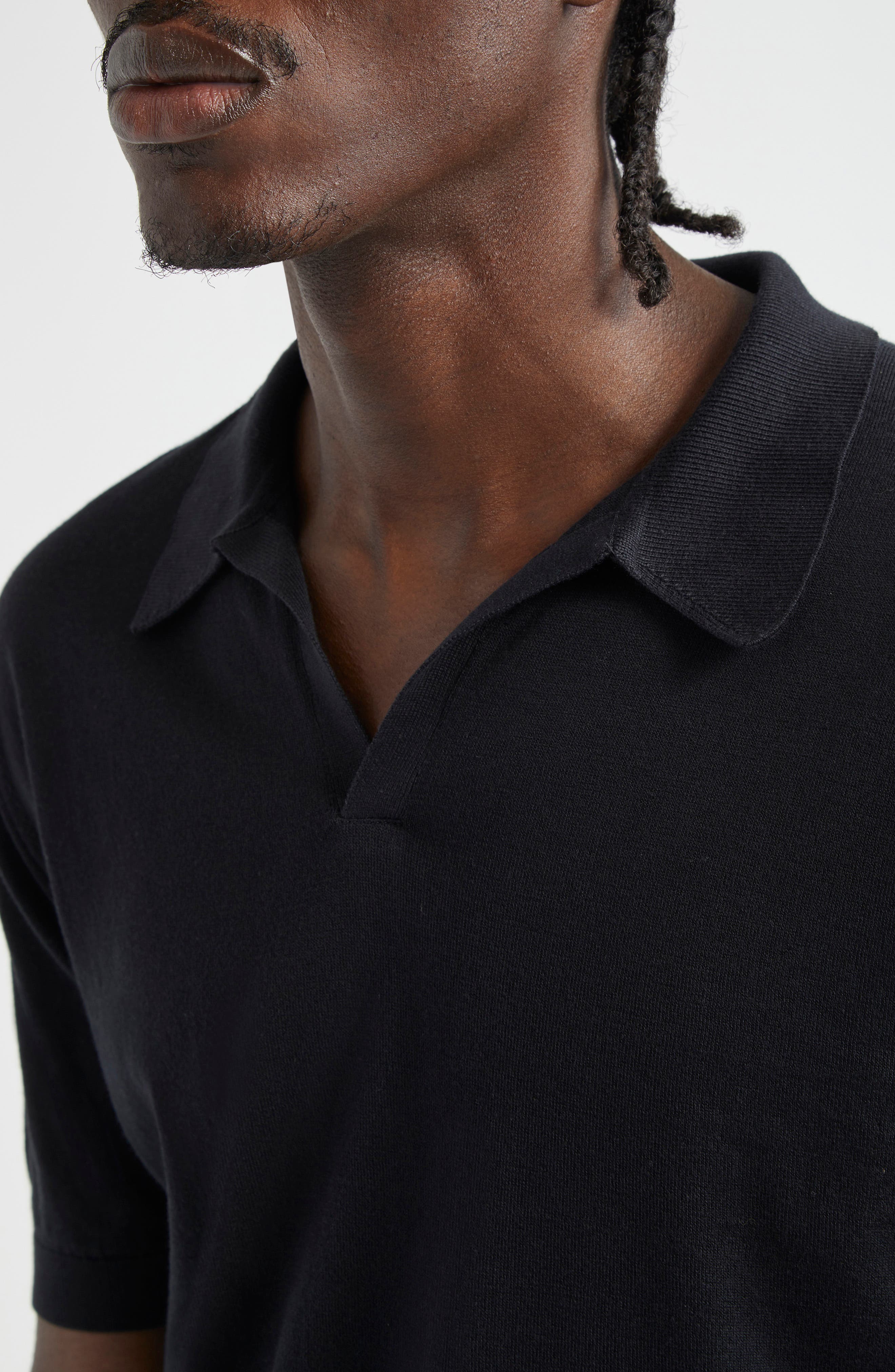 John Smedley Mens Noah Johnny Collar Sweater Polo_Black