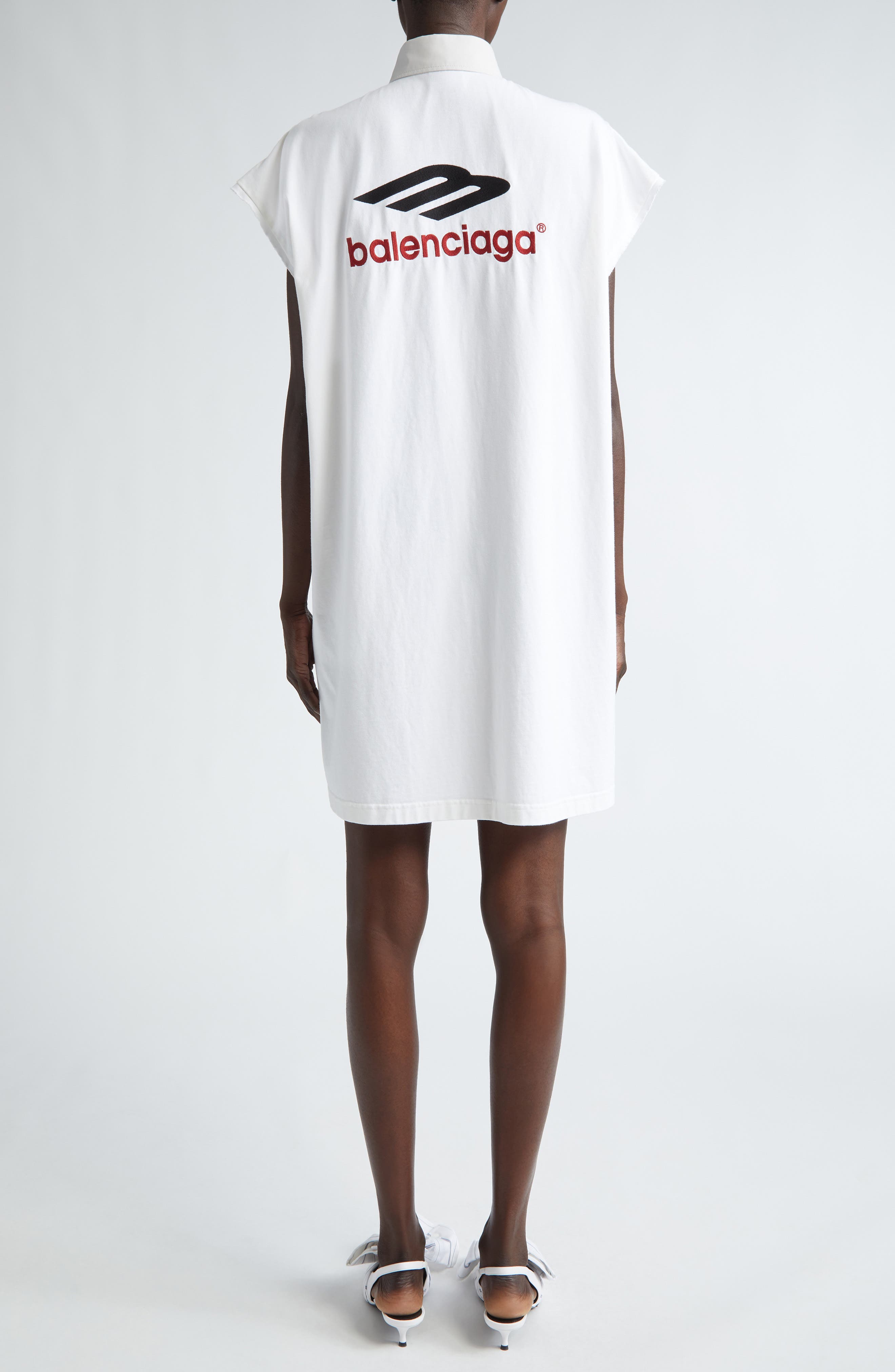 Balenciaga Logo Hybrid Sleeveless Shirtdress_Dirty White