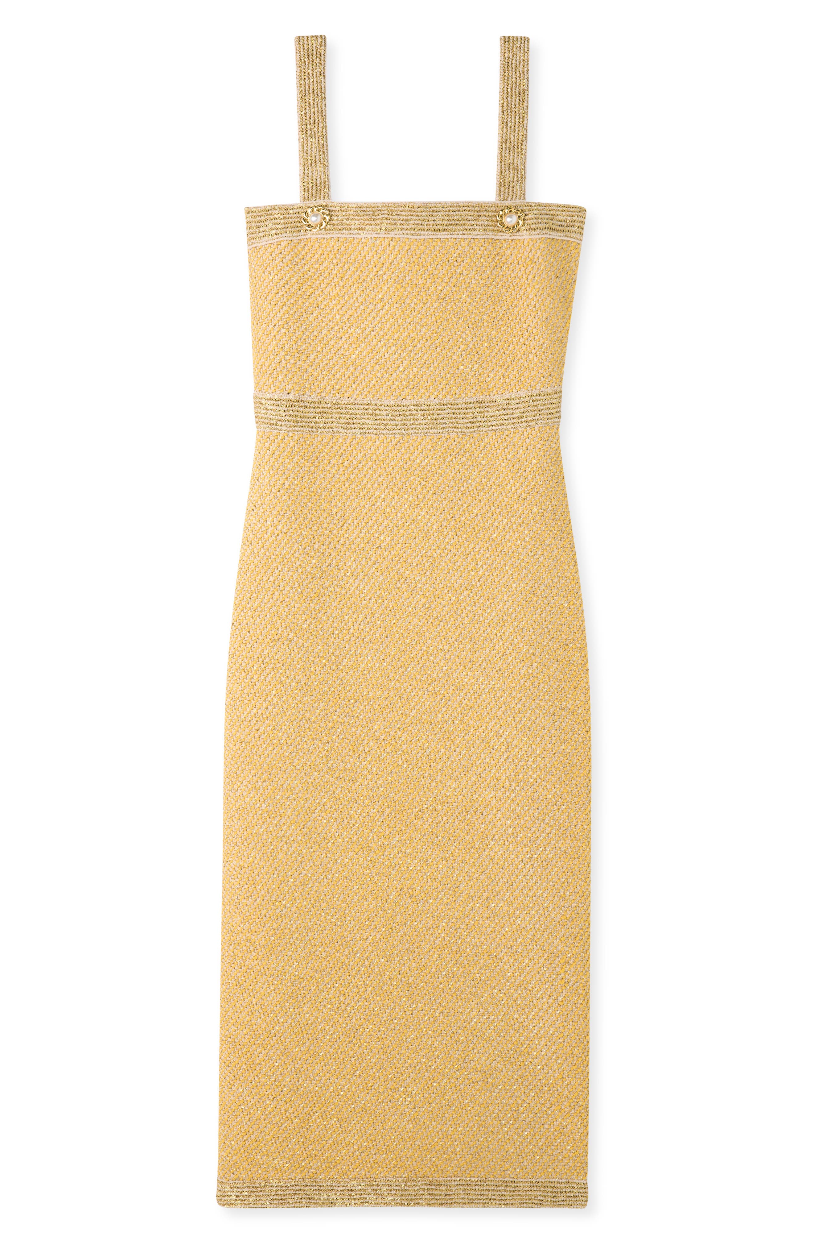 St John Evening St. John Evening Sequin Twill Knit Cocktail Dress_Golden Rod/ Light Khaki Multi