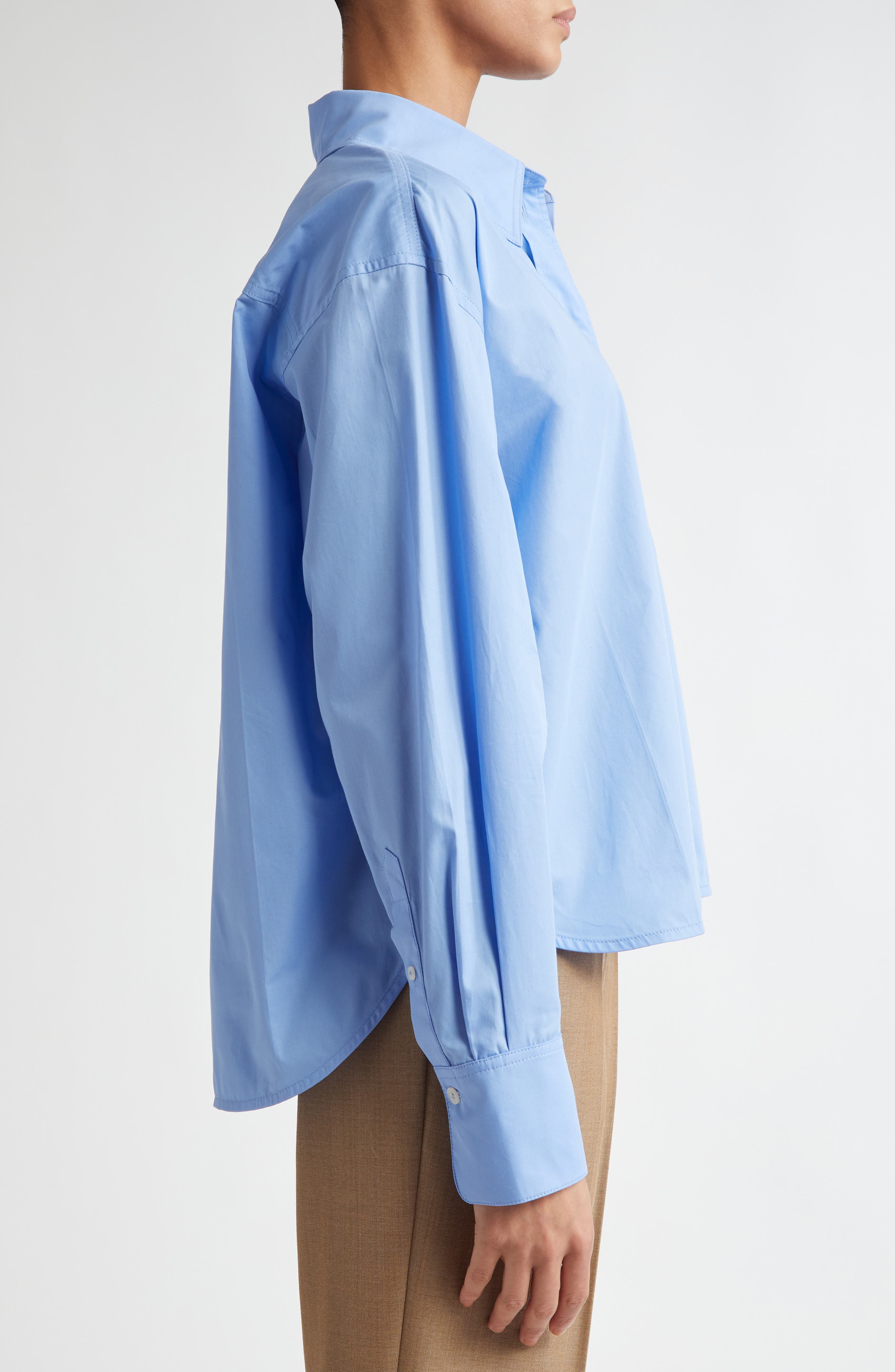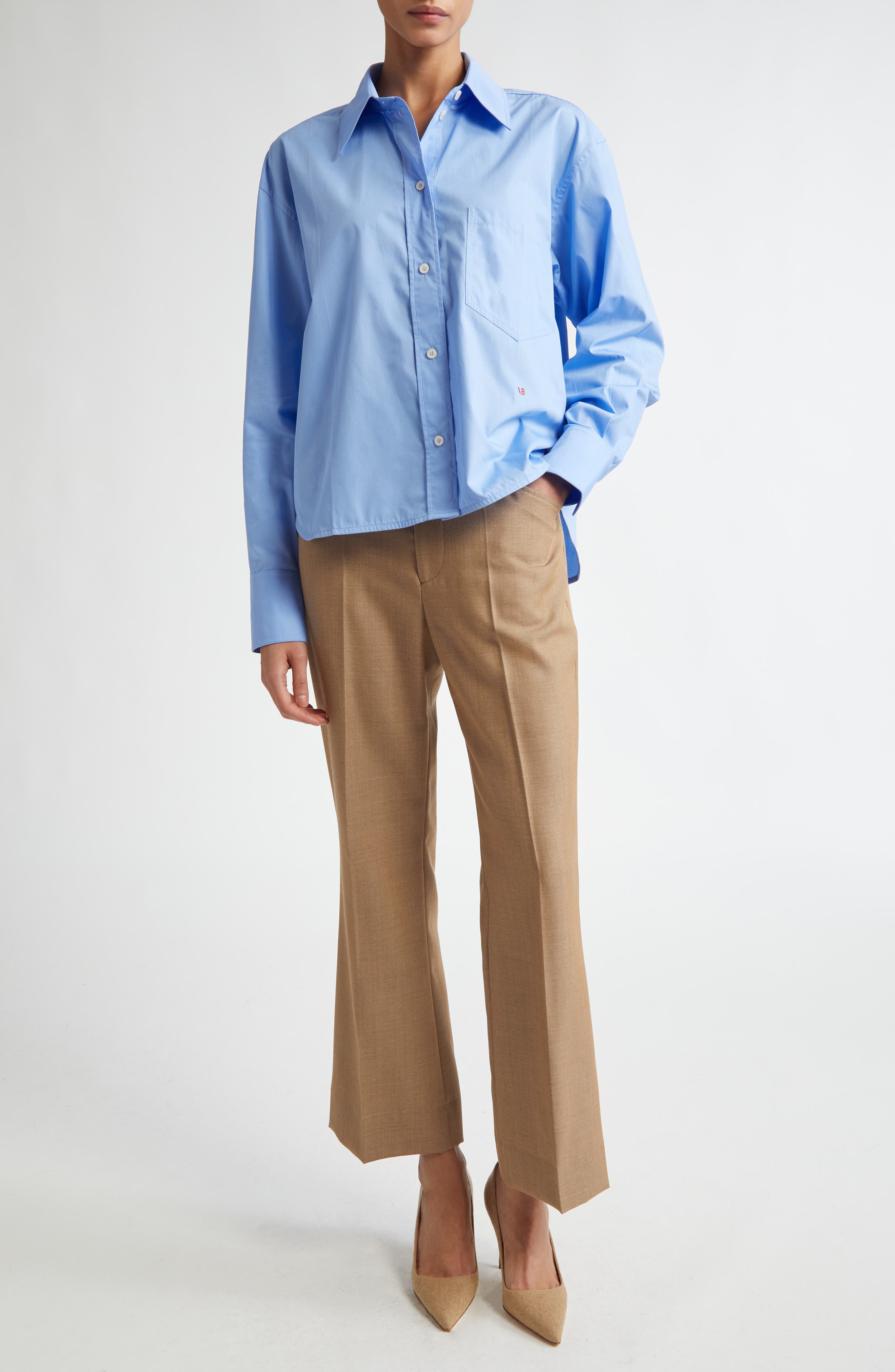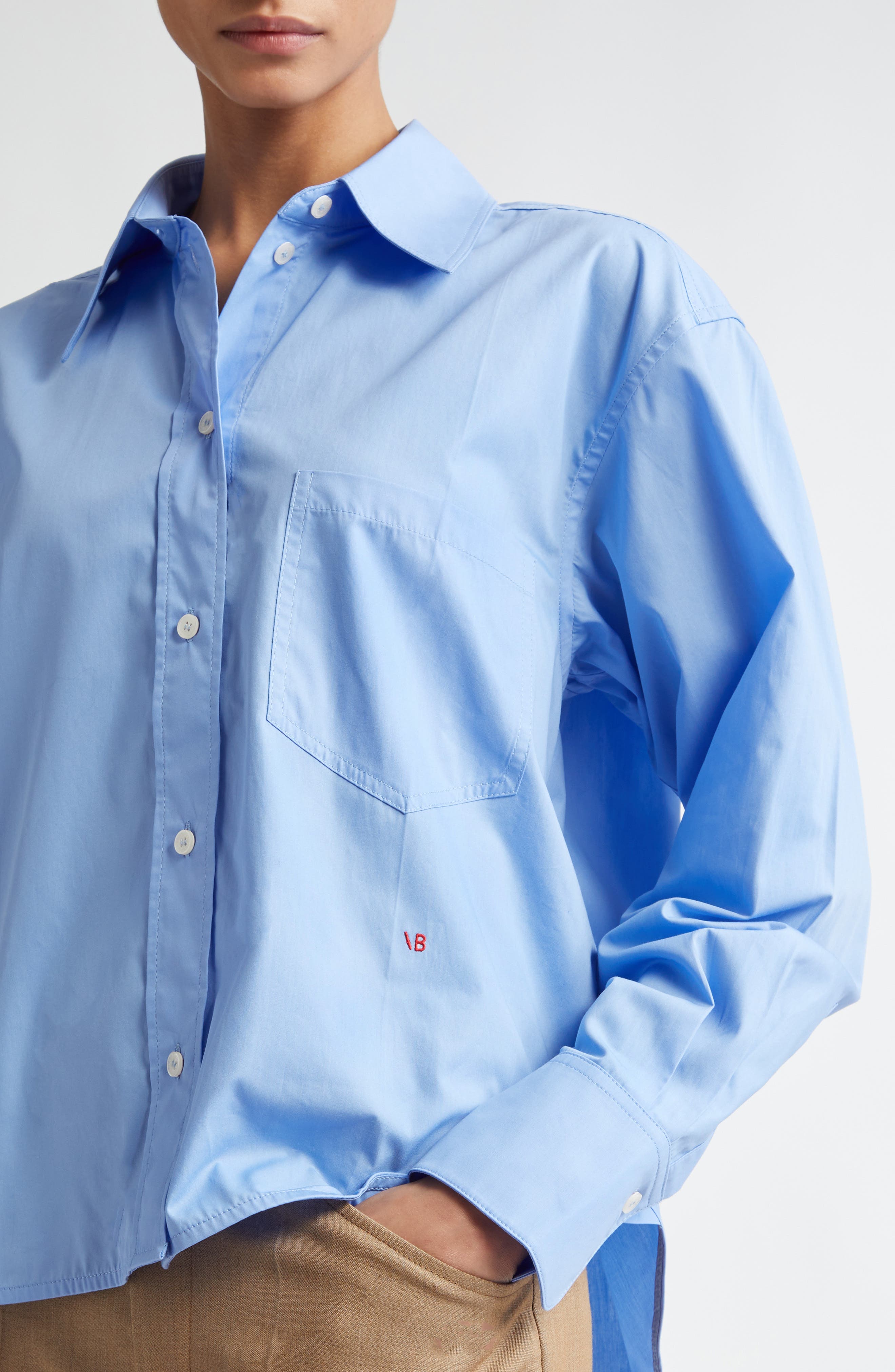 Victoria Beckham Crop Organic Cotton Poplin Button-Up Shirt_Oxford Blue