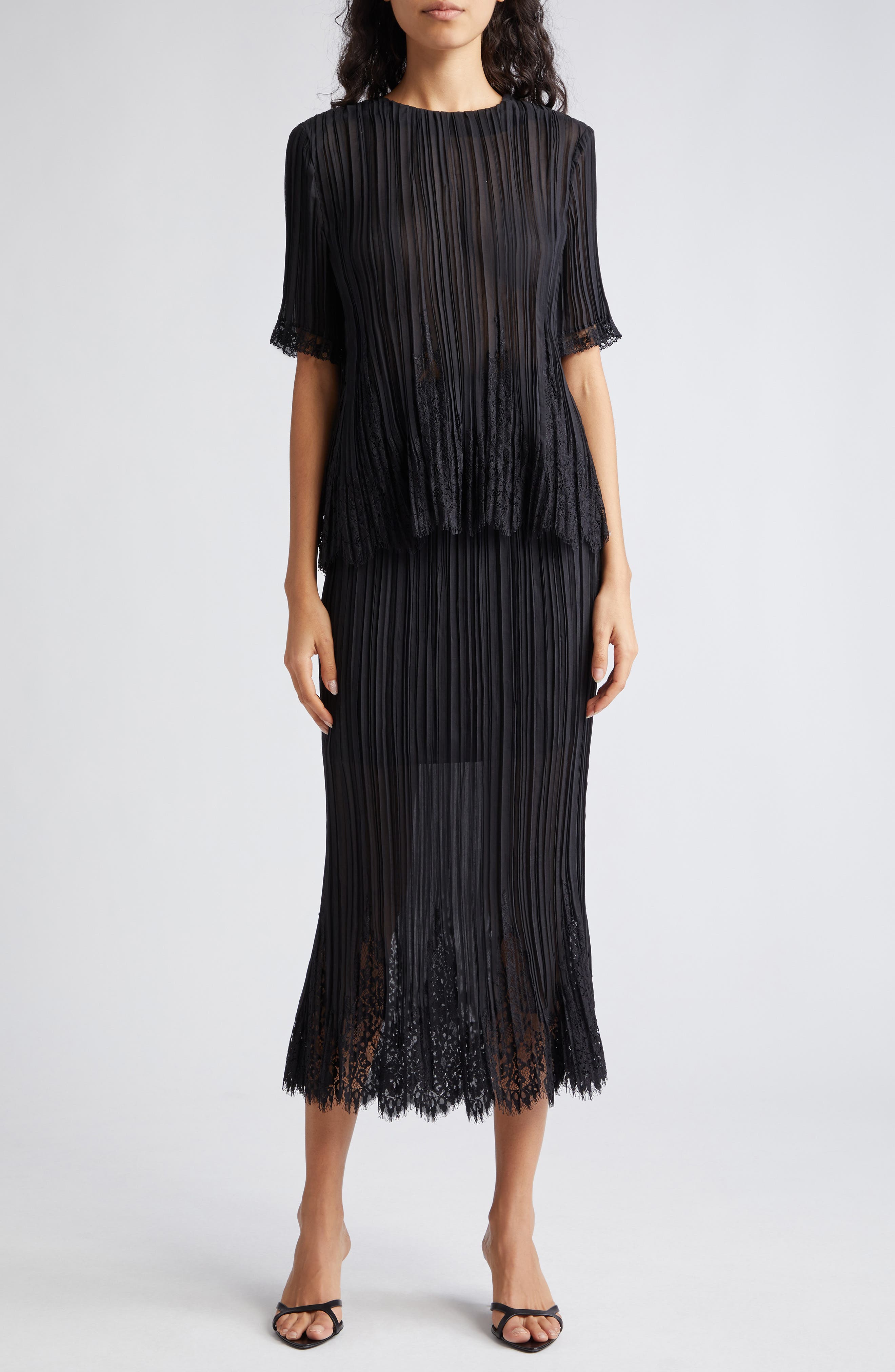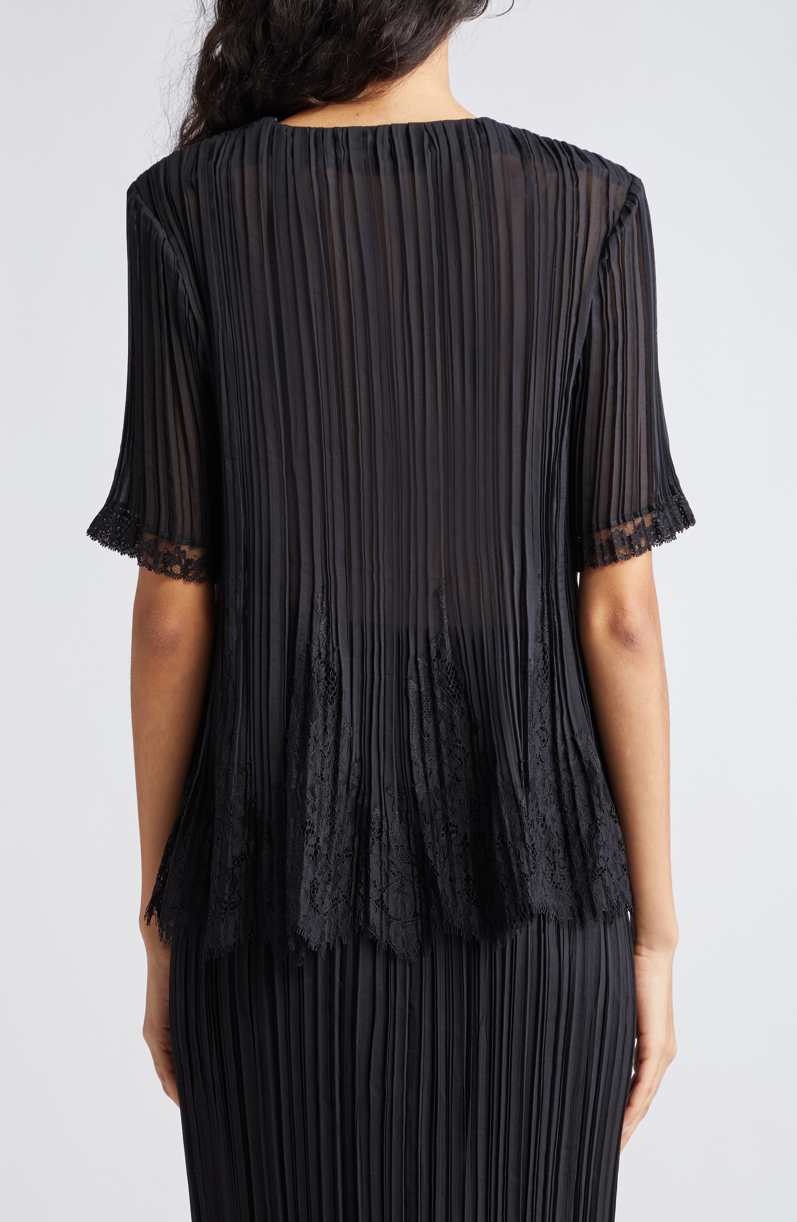 Zimmermann Pleated Lace Trim Semisheer Top_Black