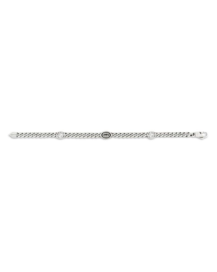 Gucci Sterling Silver Black Enamel Double G Logo Curb Link Chain Bracelet
