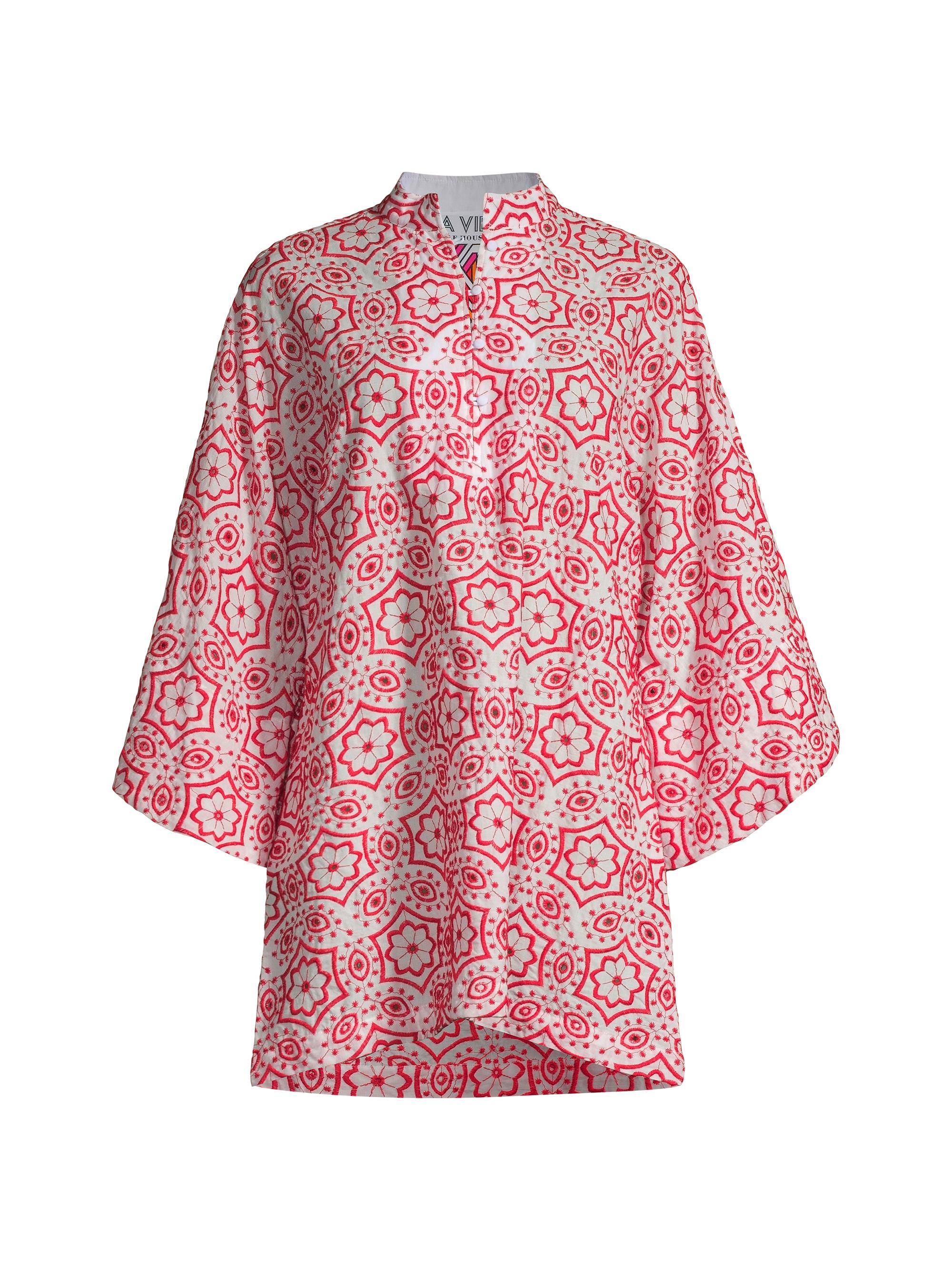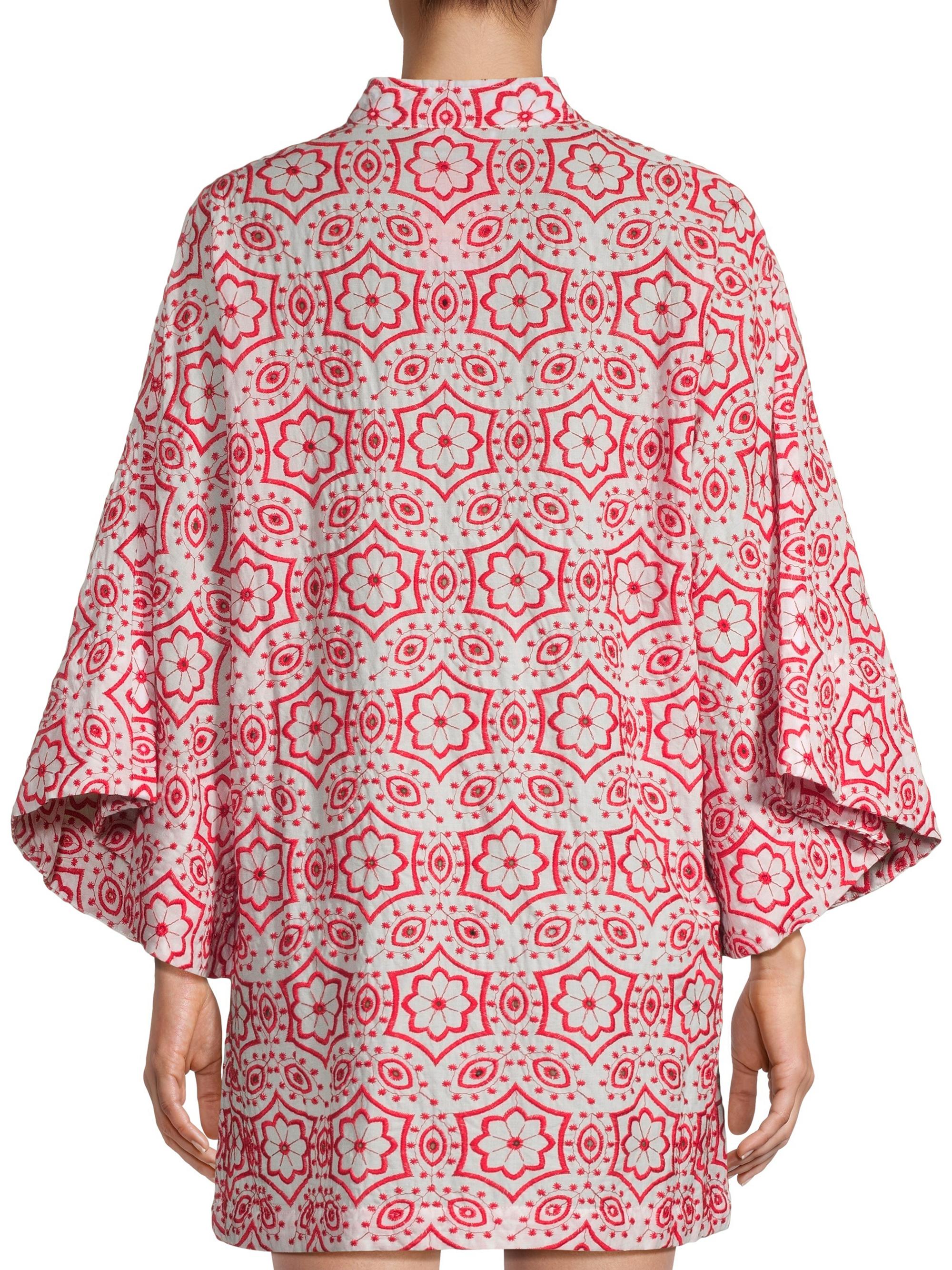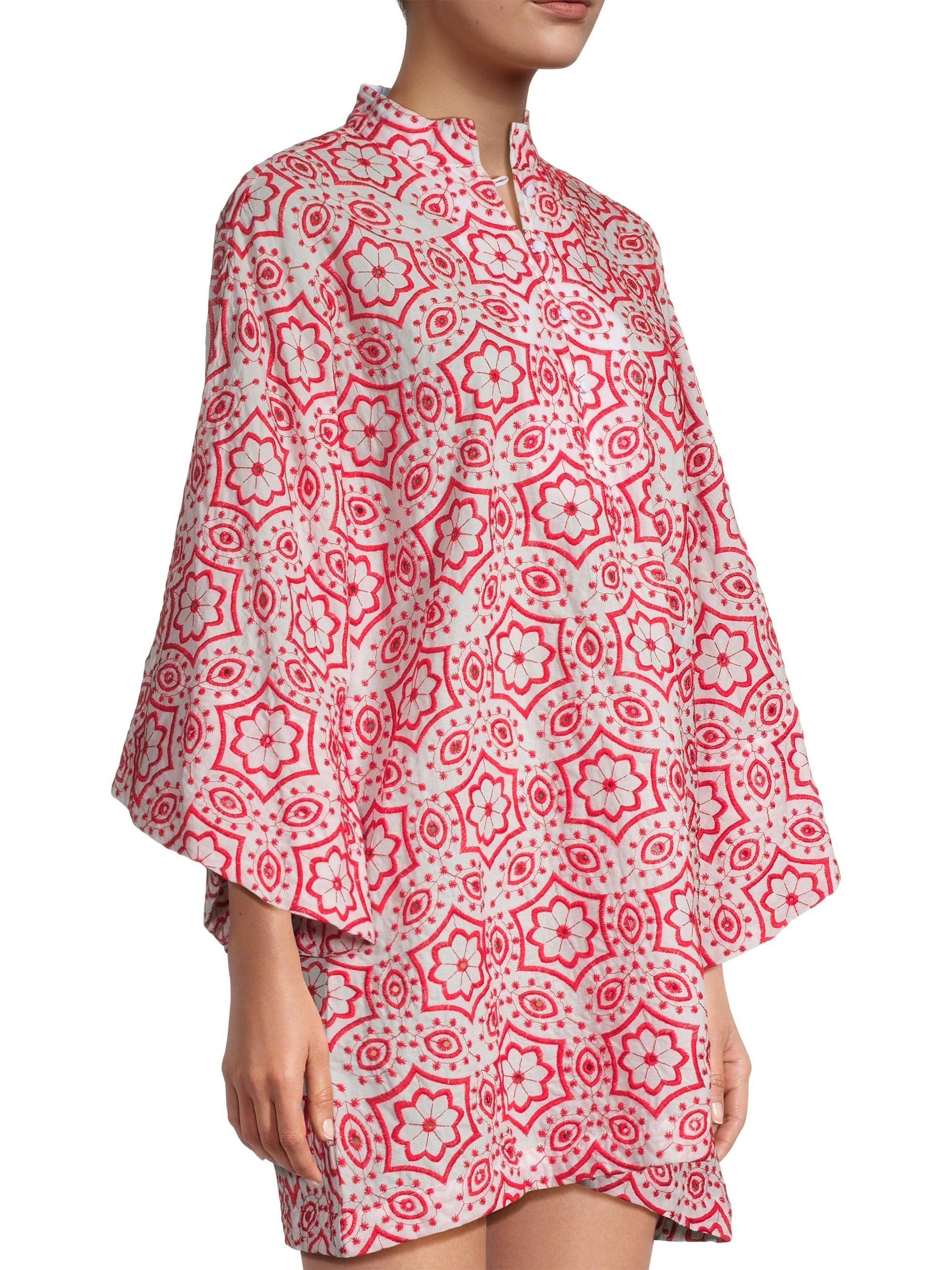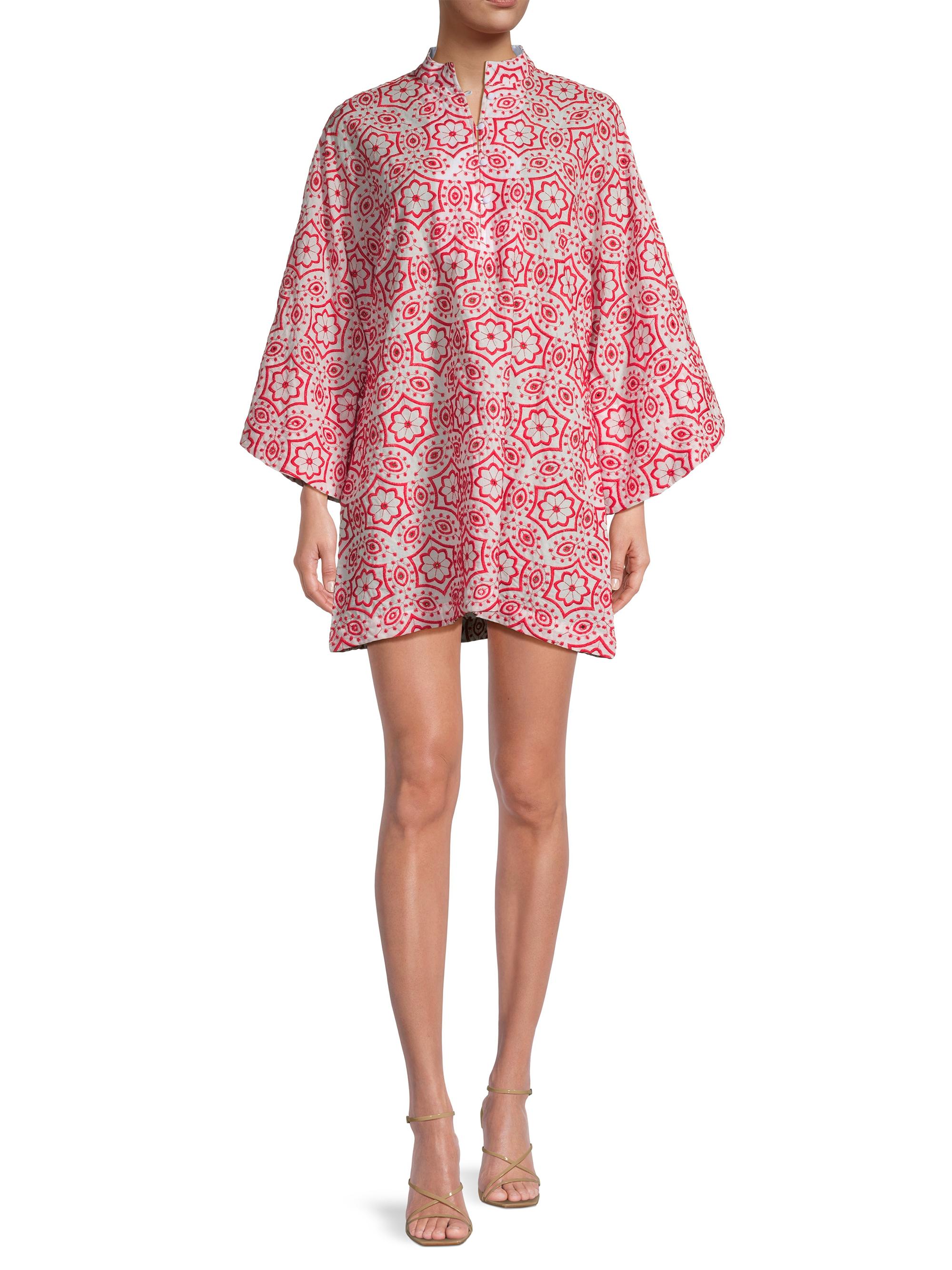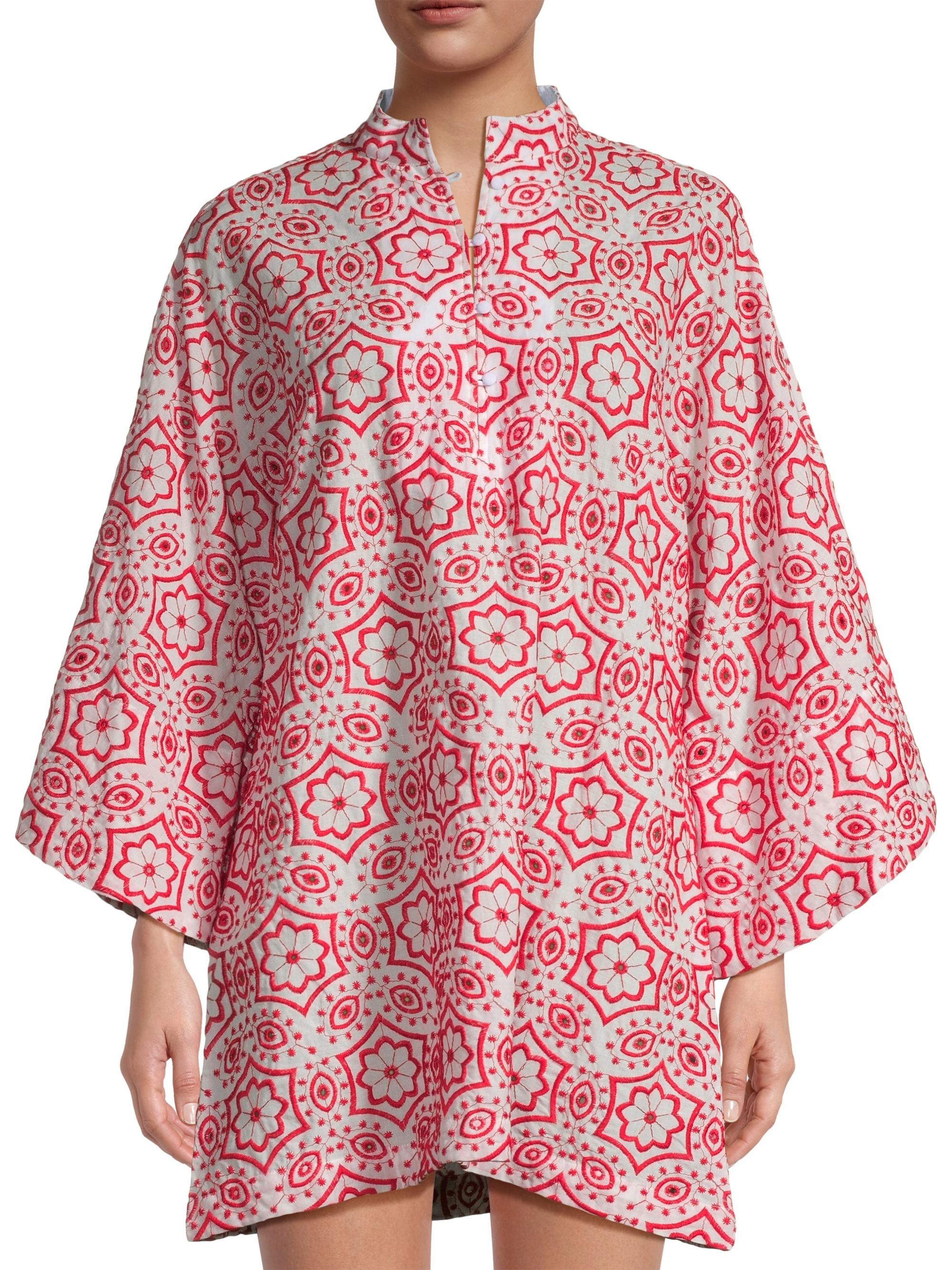 La Vie Style House Geo-Floral Eyelet Caftan Minidress