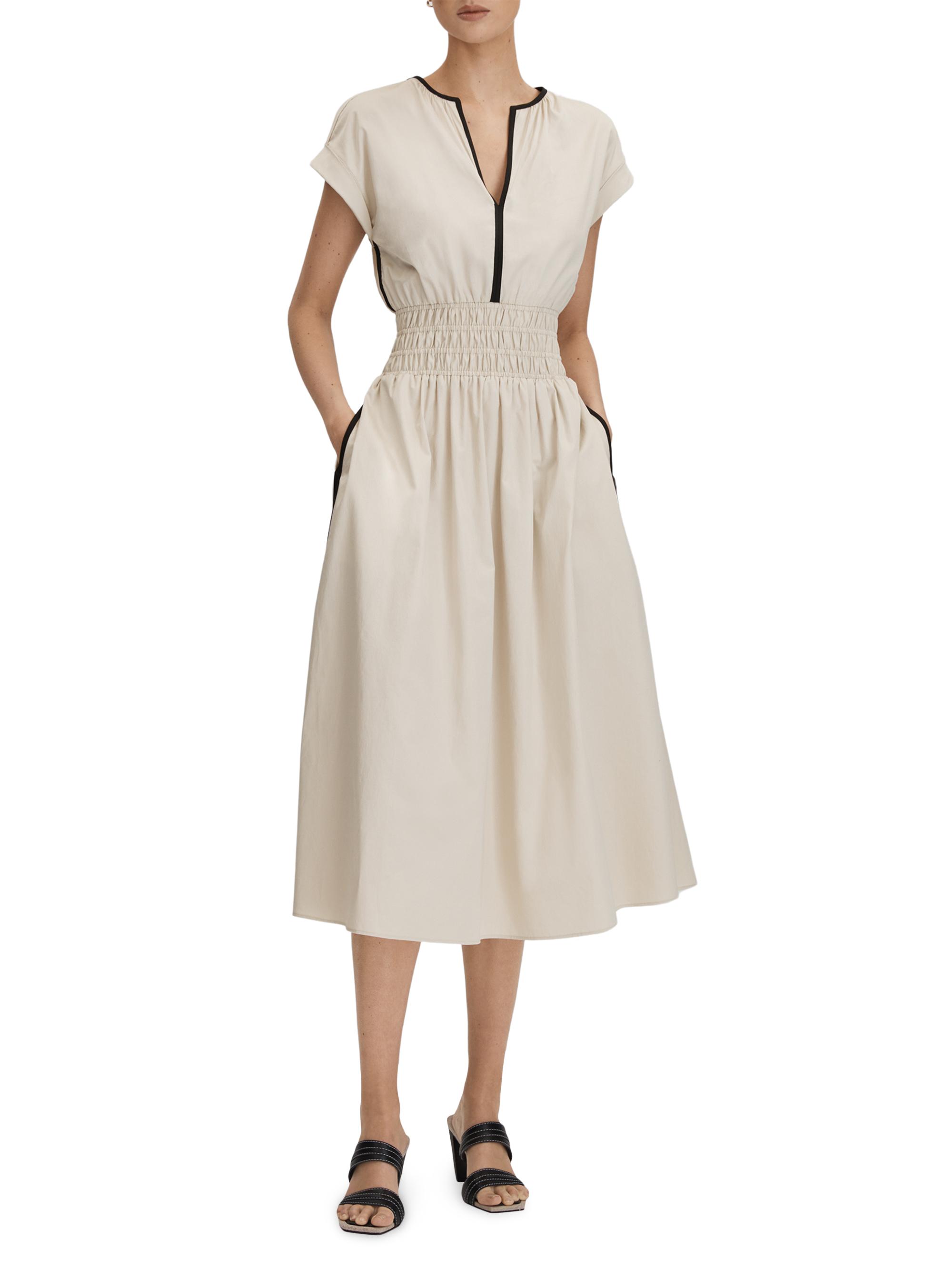 Reiss Lena Cotton Ruched-Waist Midi-Dress