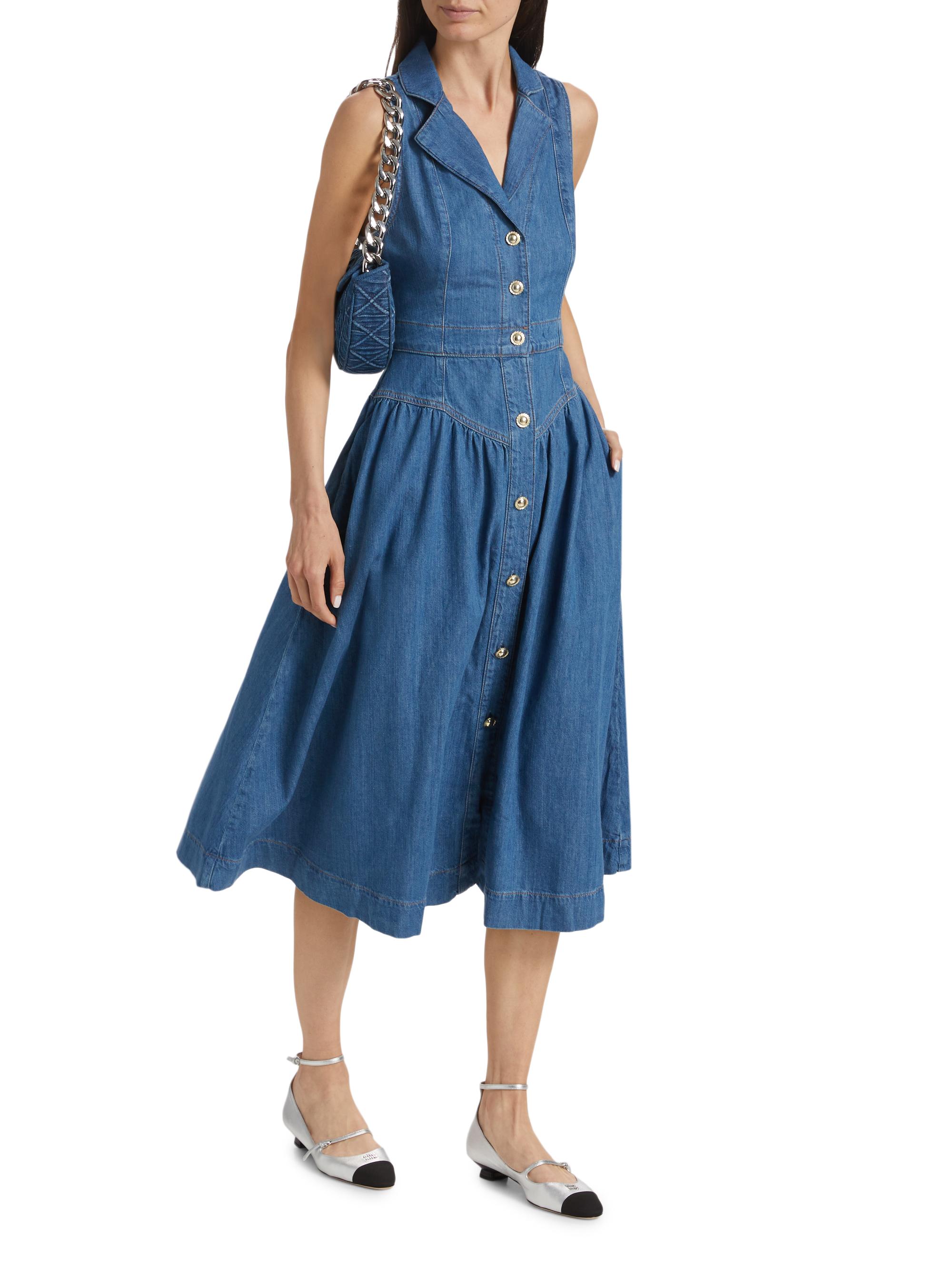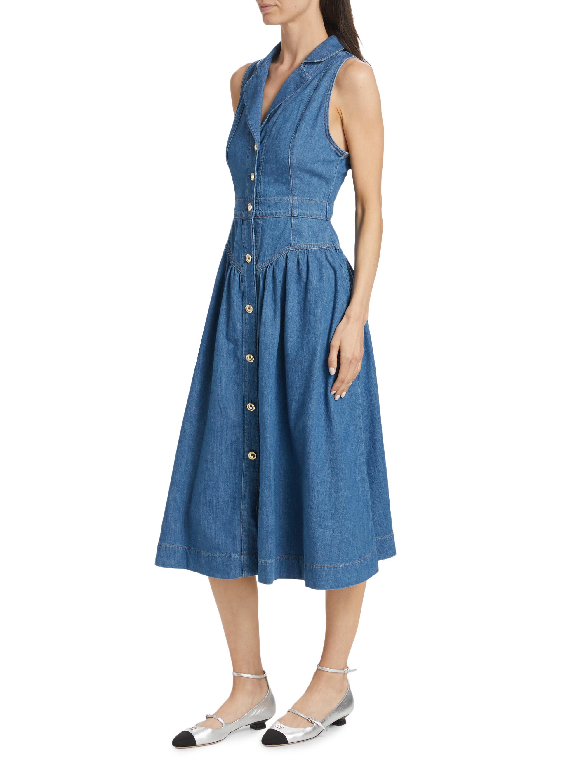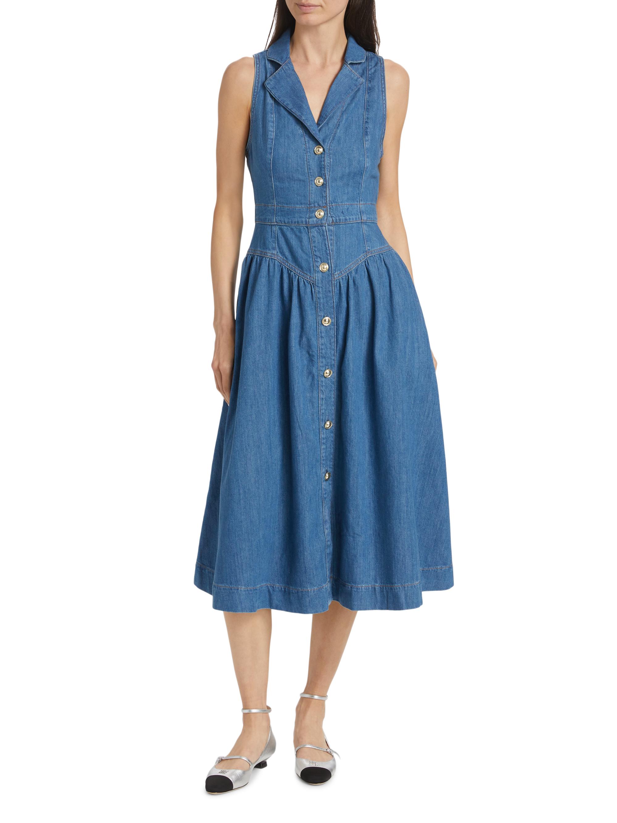Reformation Ellison Denim Drop-Waist Midi-Dress