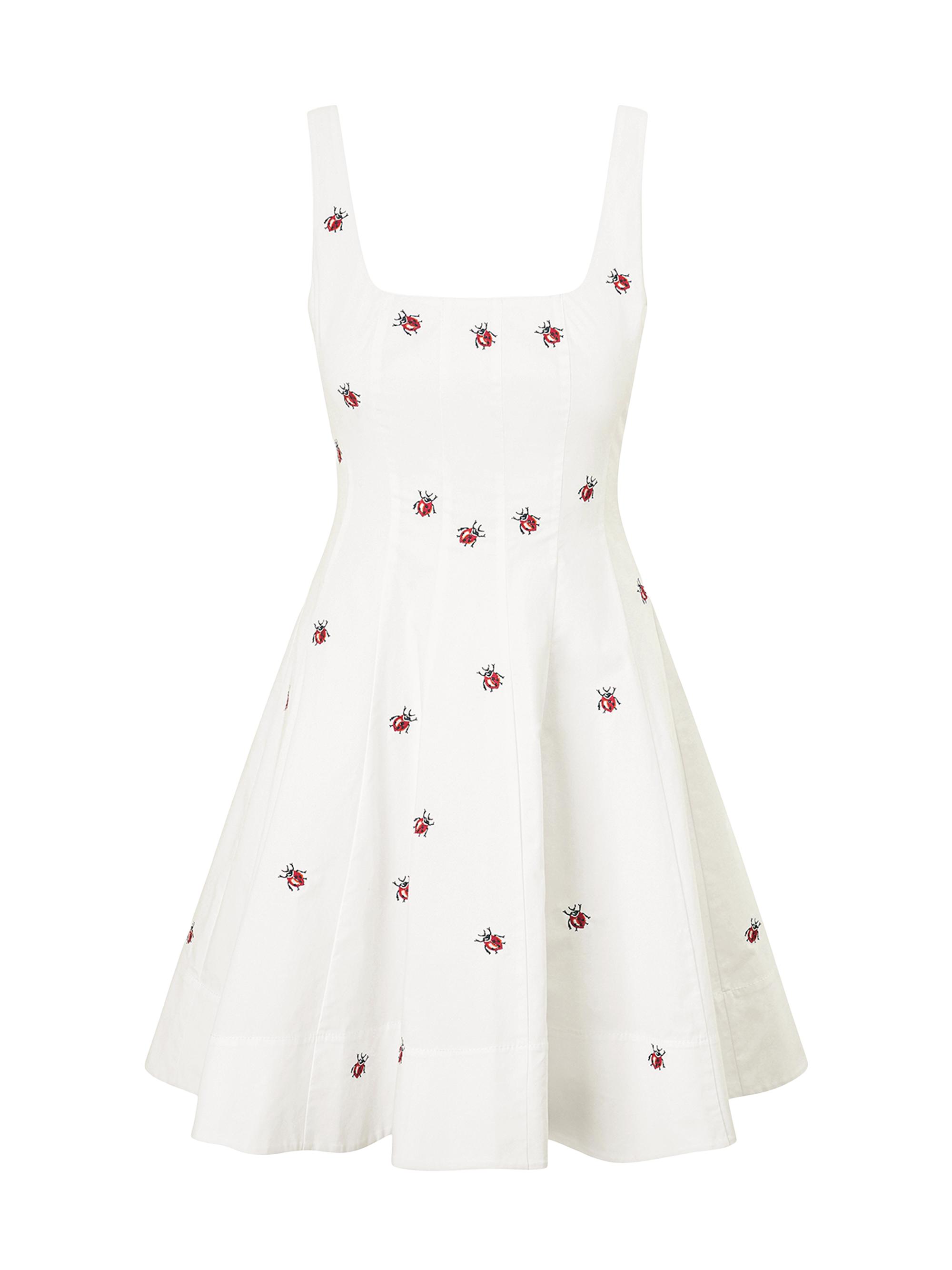 Staud Wells Ladybug Stretch-Cotton Fit-And-Flare Minidress