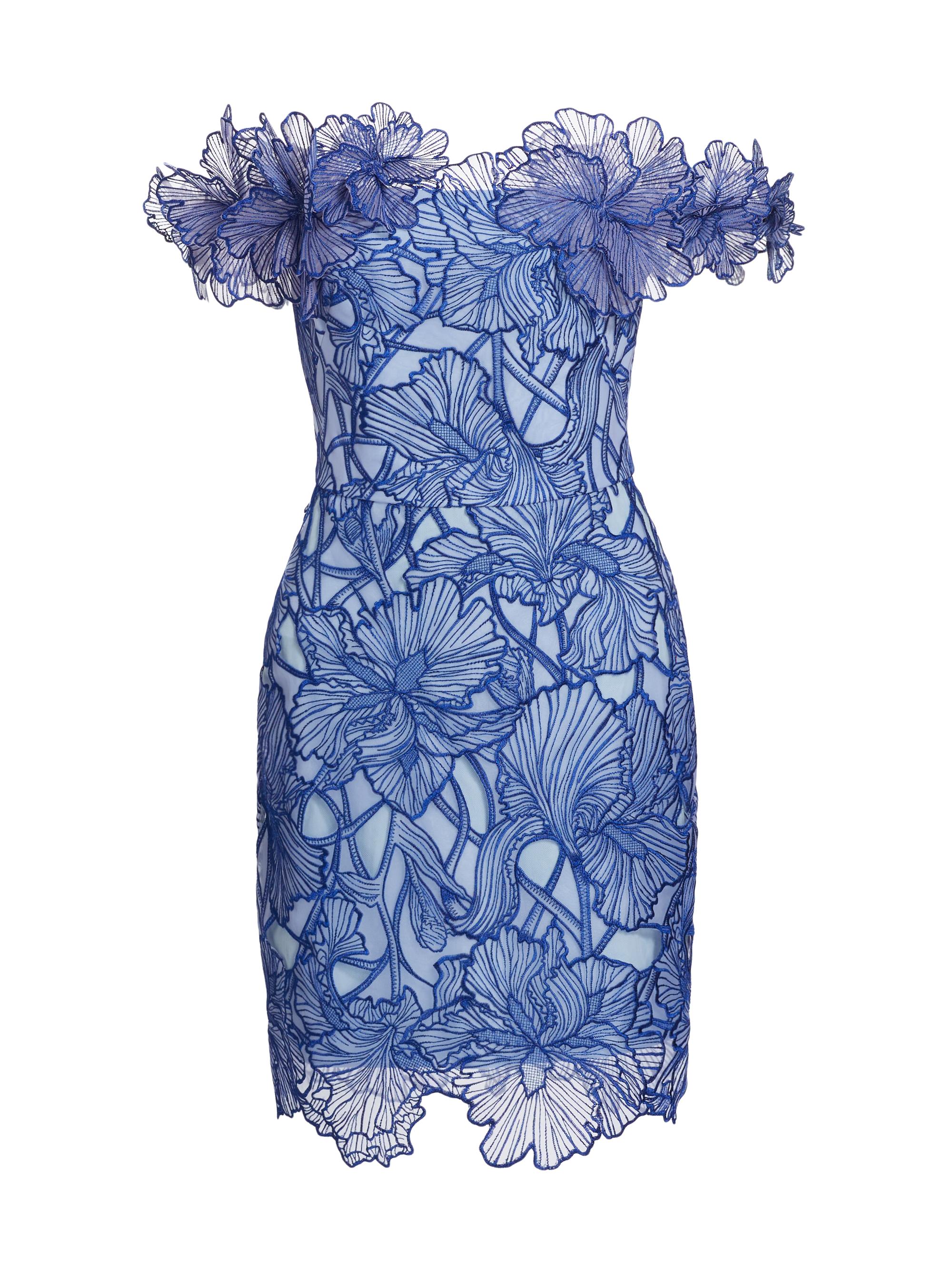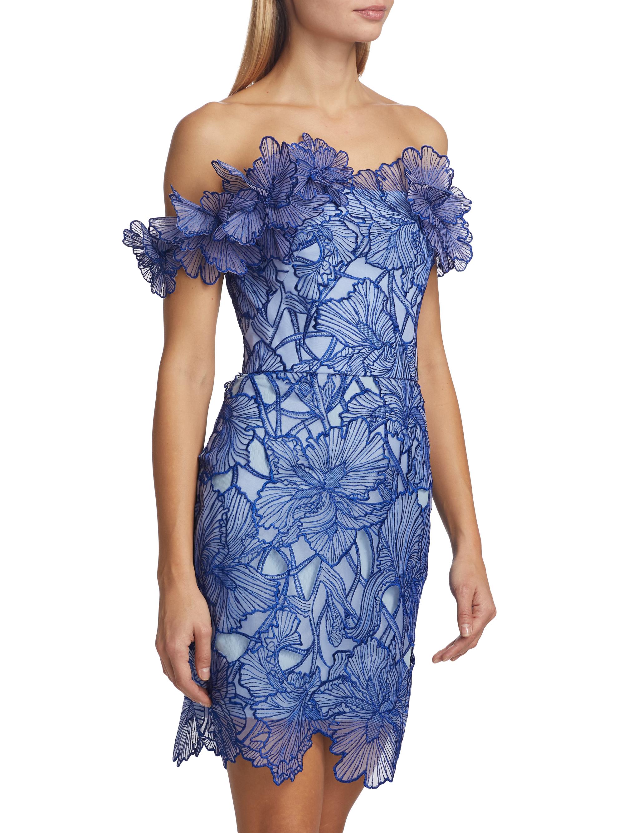 Marchesa Notte Iris Floral Applique Cocktail Minidress