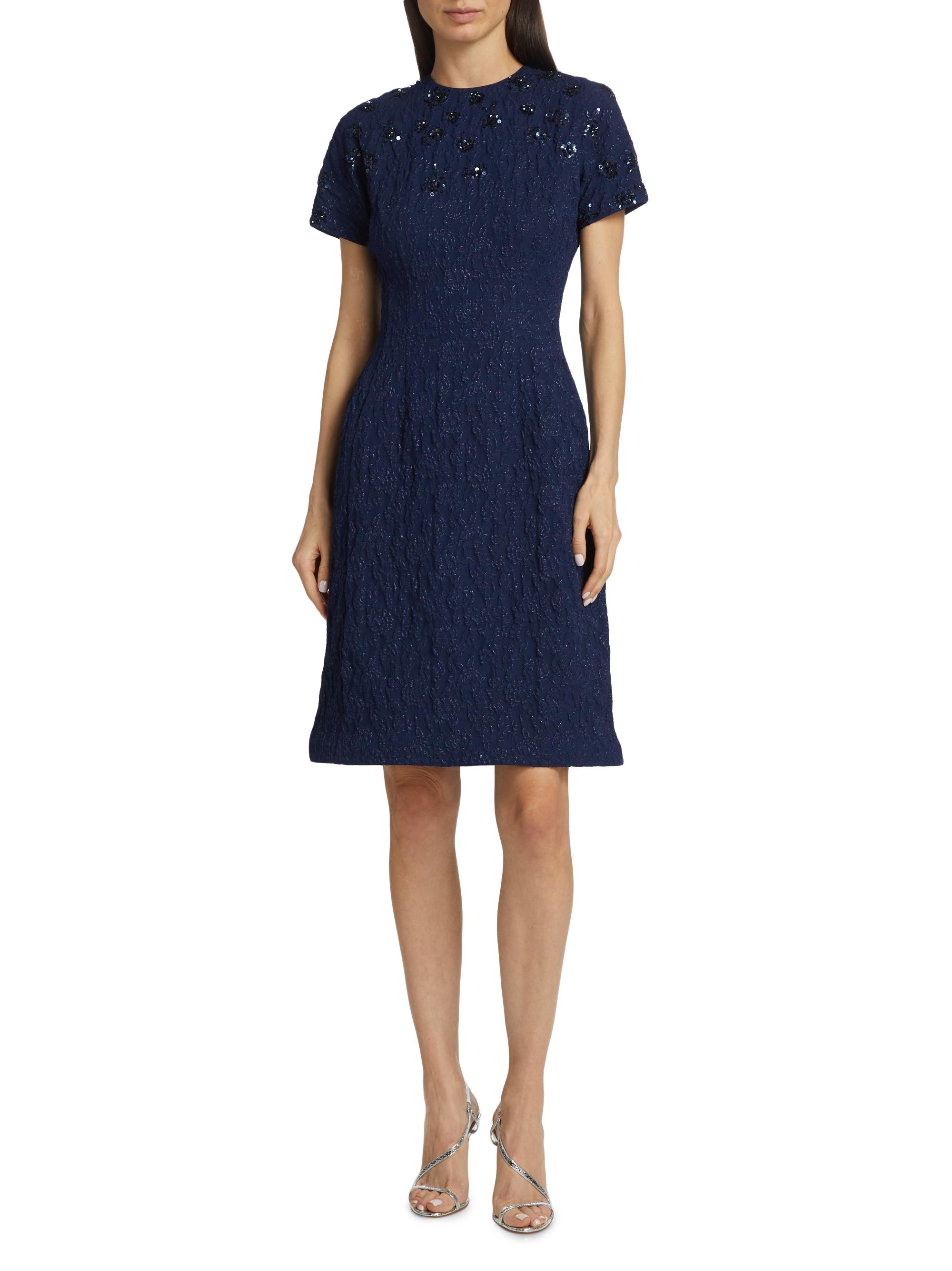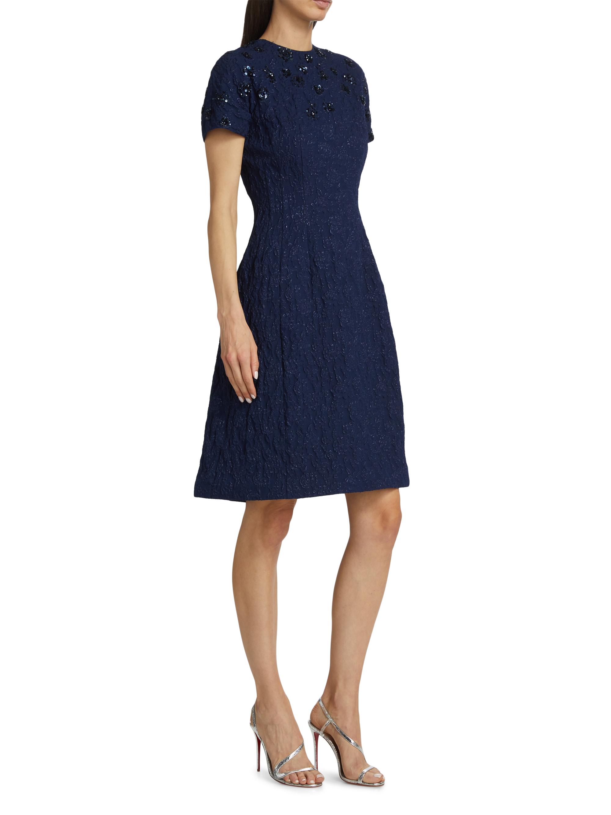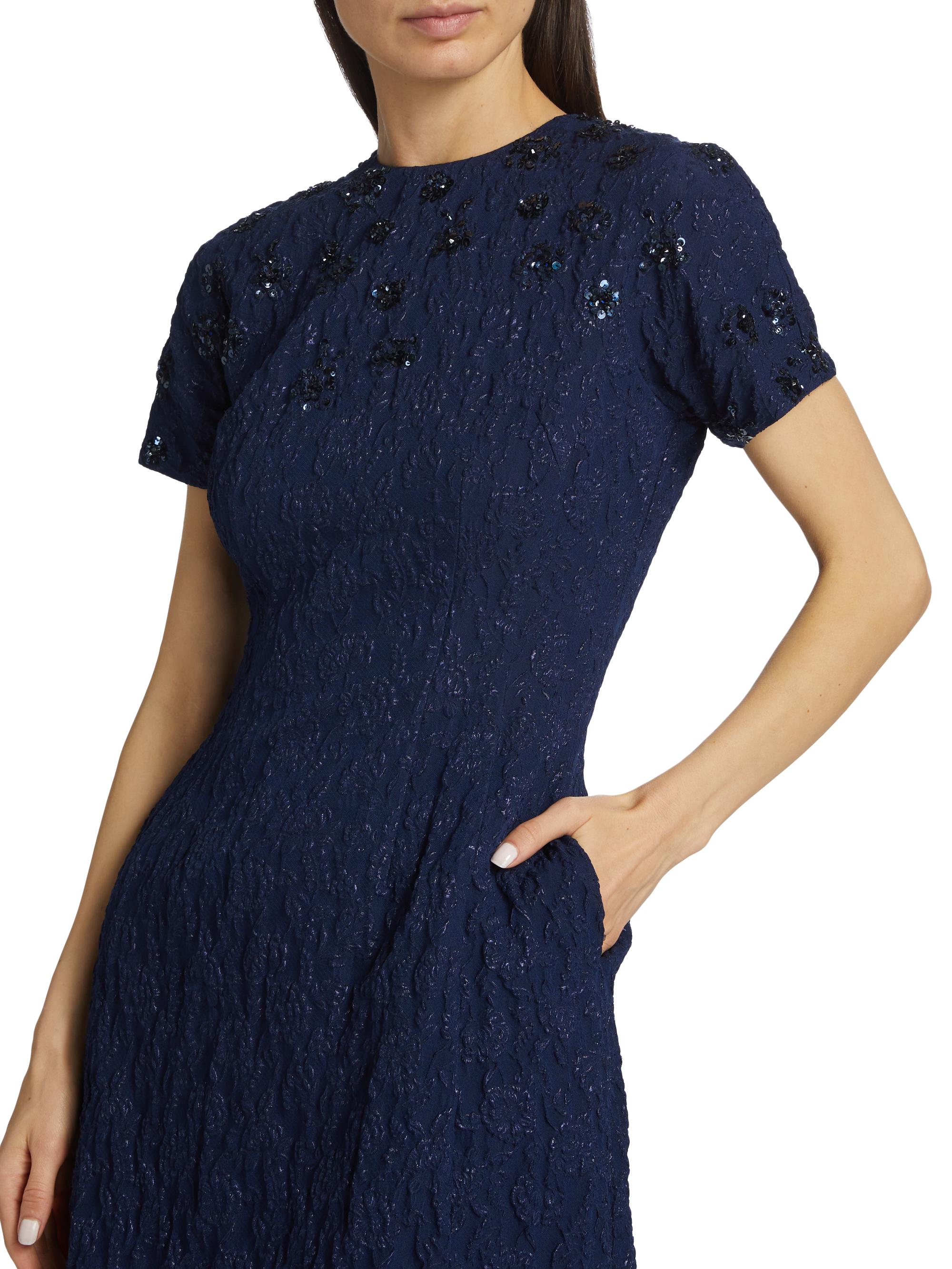 Teri Jon by Rickie Freeman Beaded Metallic Jacquard Cocktail Dress