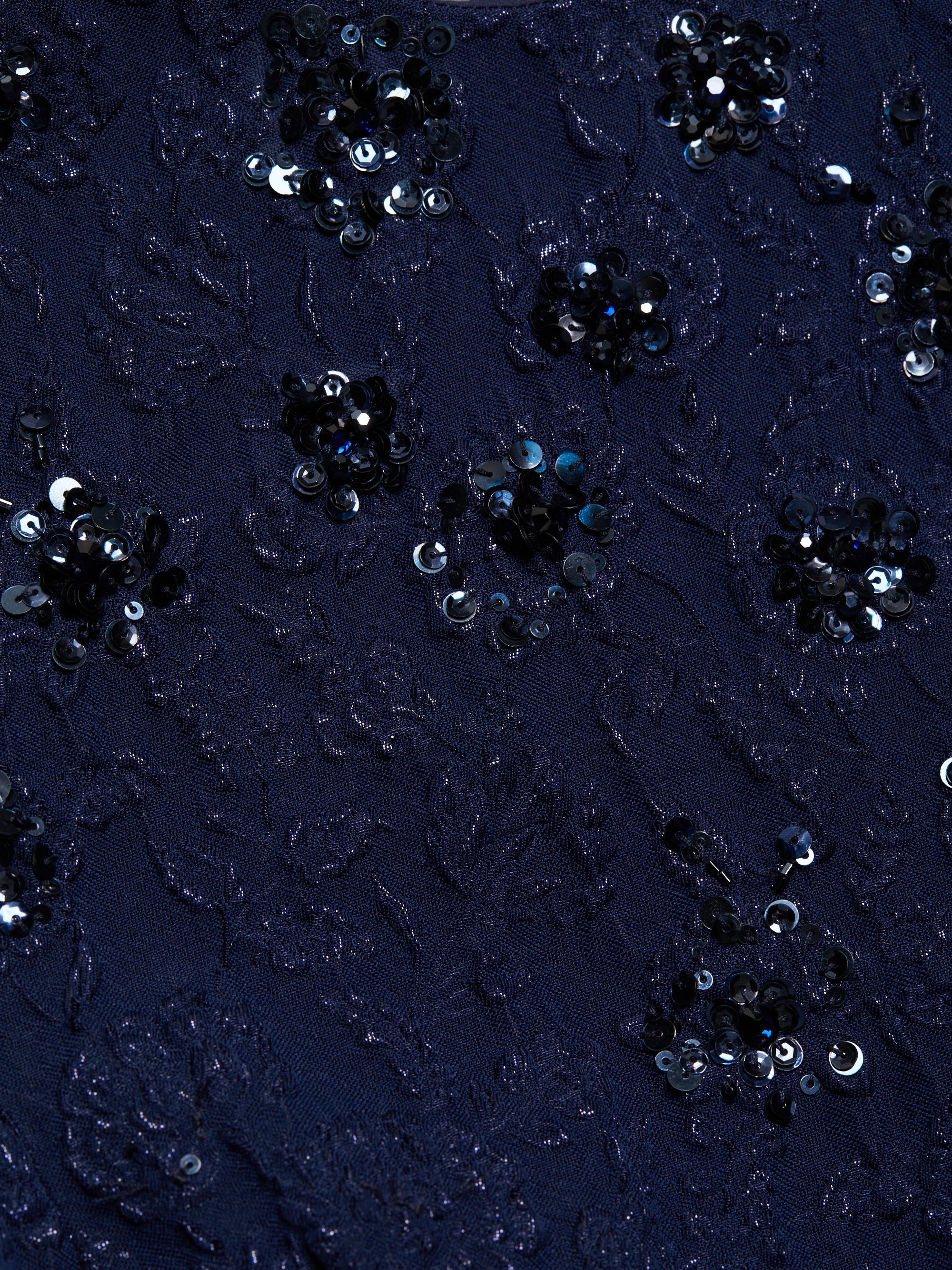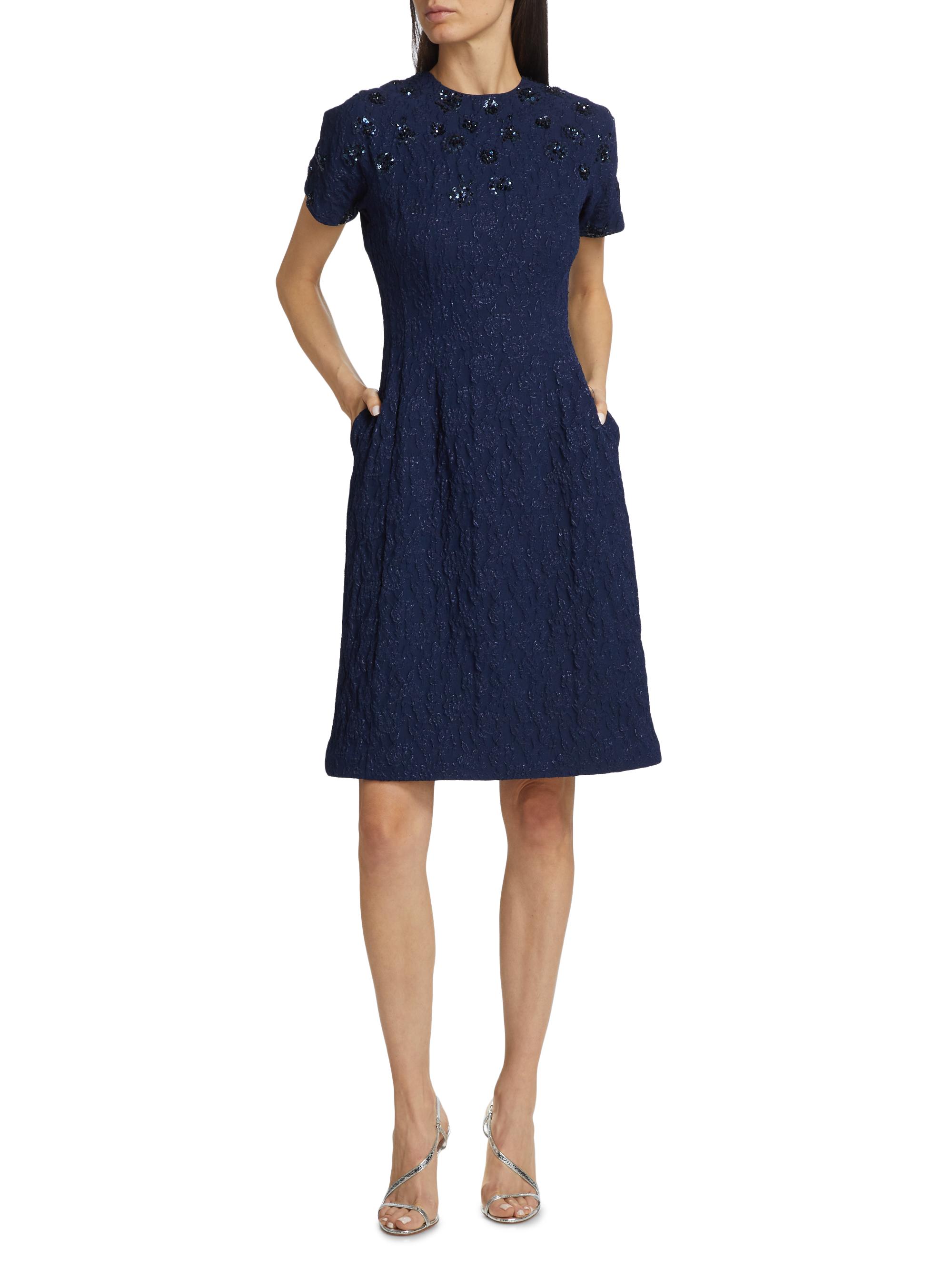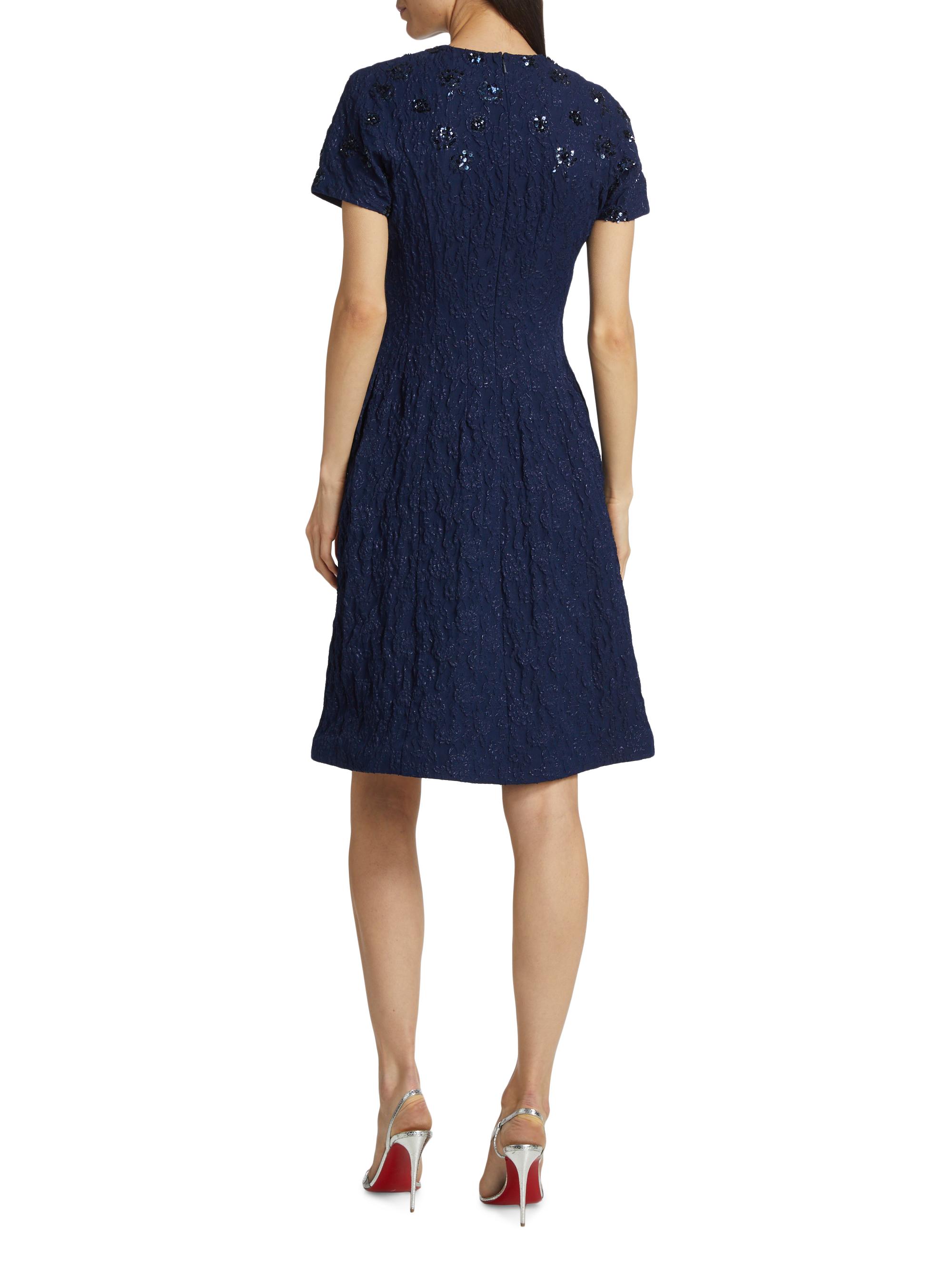Teri Jon by Rickie Freeman Beaded Metallic Jacquard Cocktail Dress