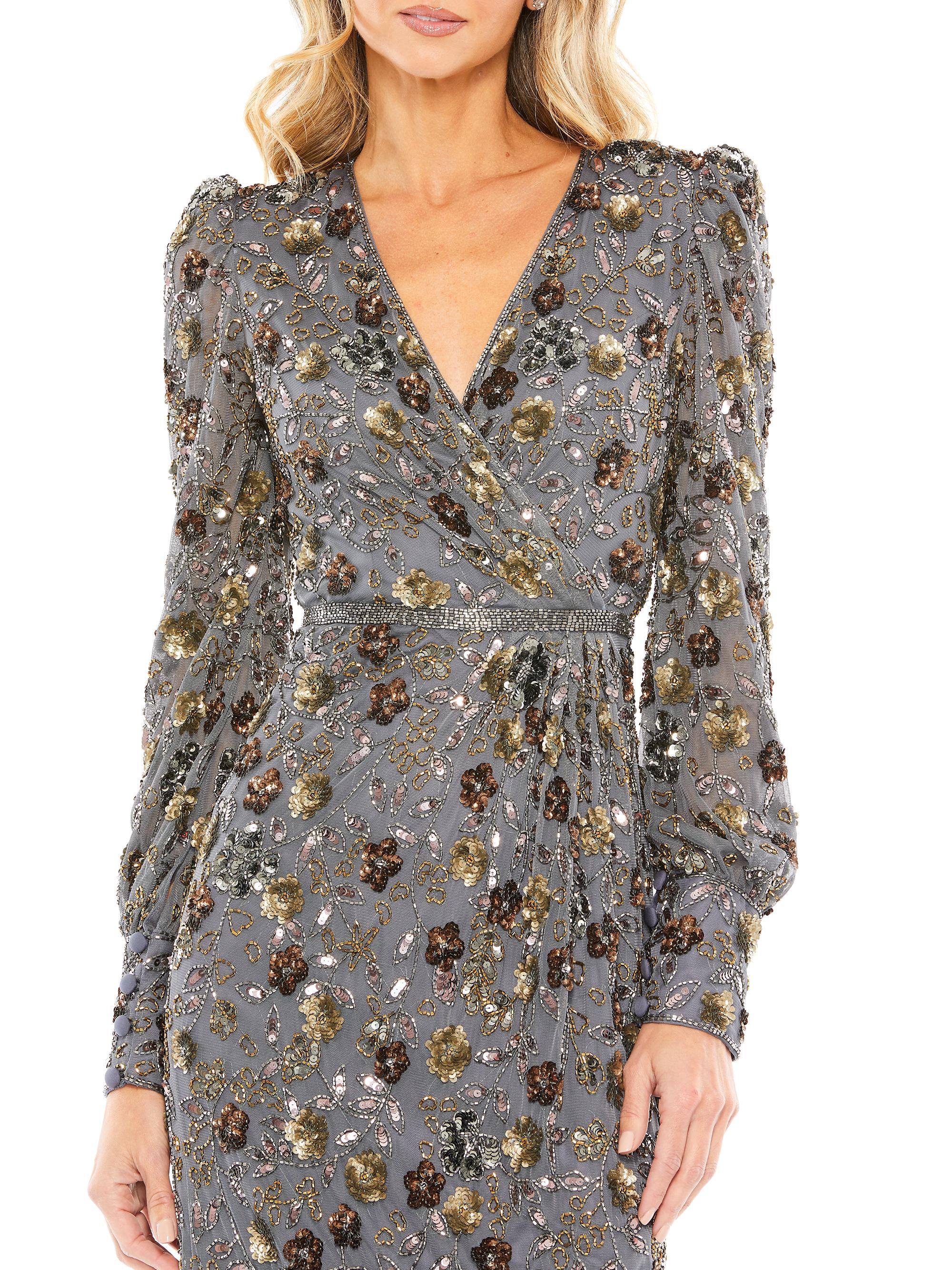 Mac Duggal Sequined Faux Wrap Dress