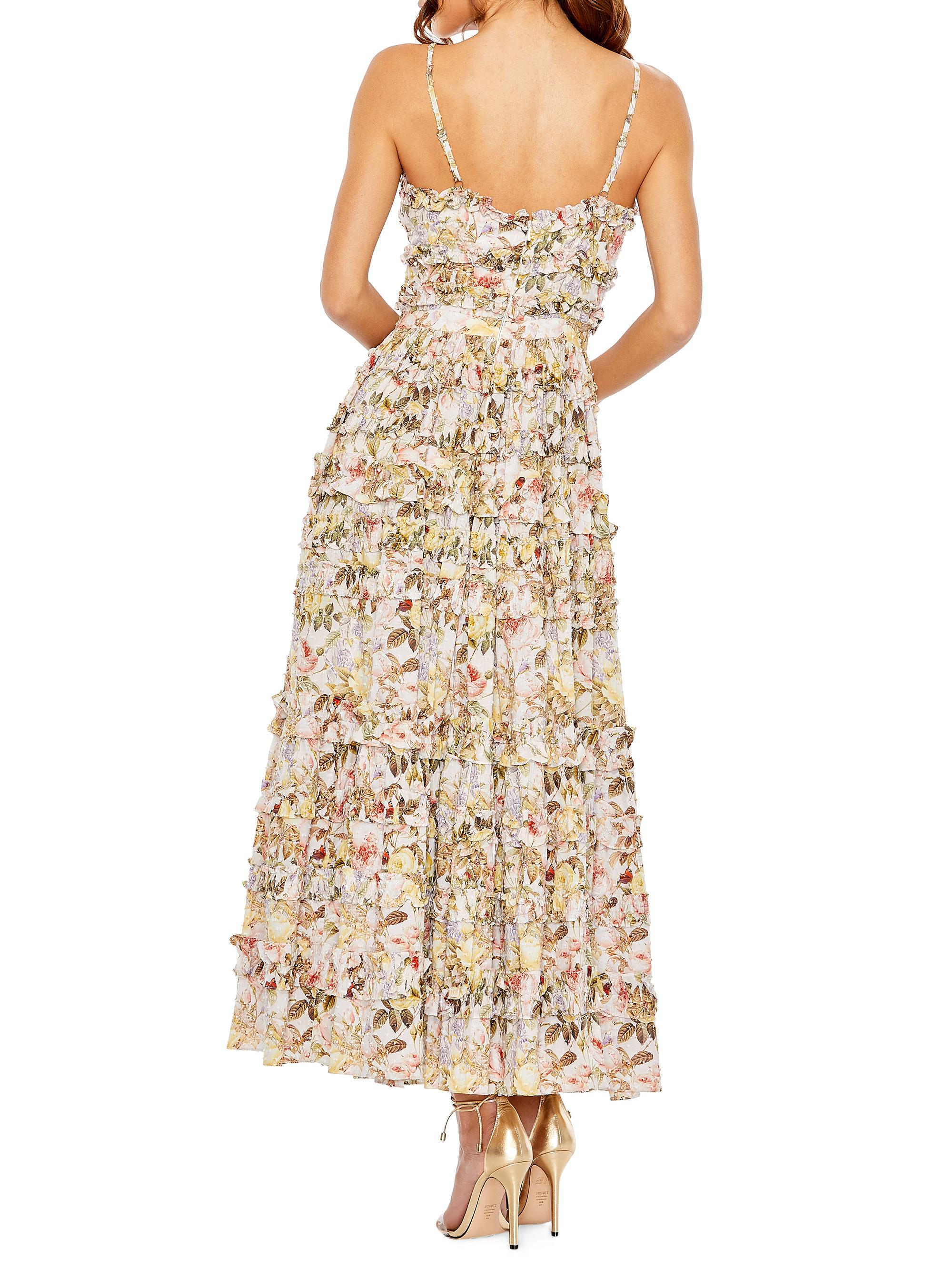 Mac Duggal Floral Textured Tiered Cocktail Dress