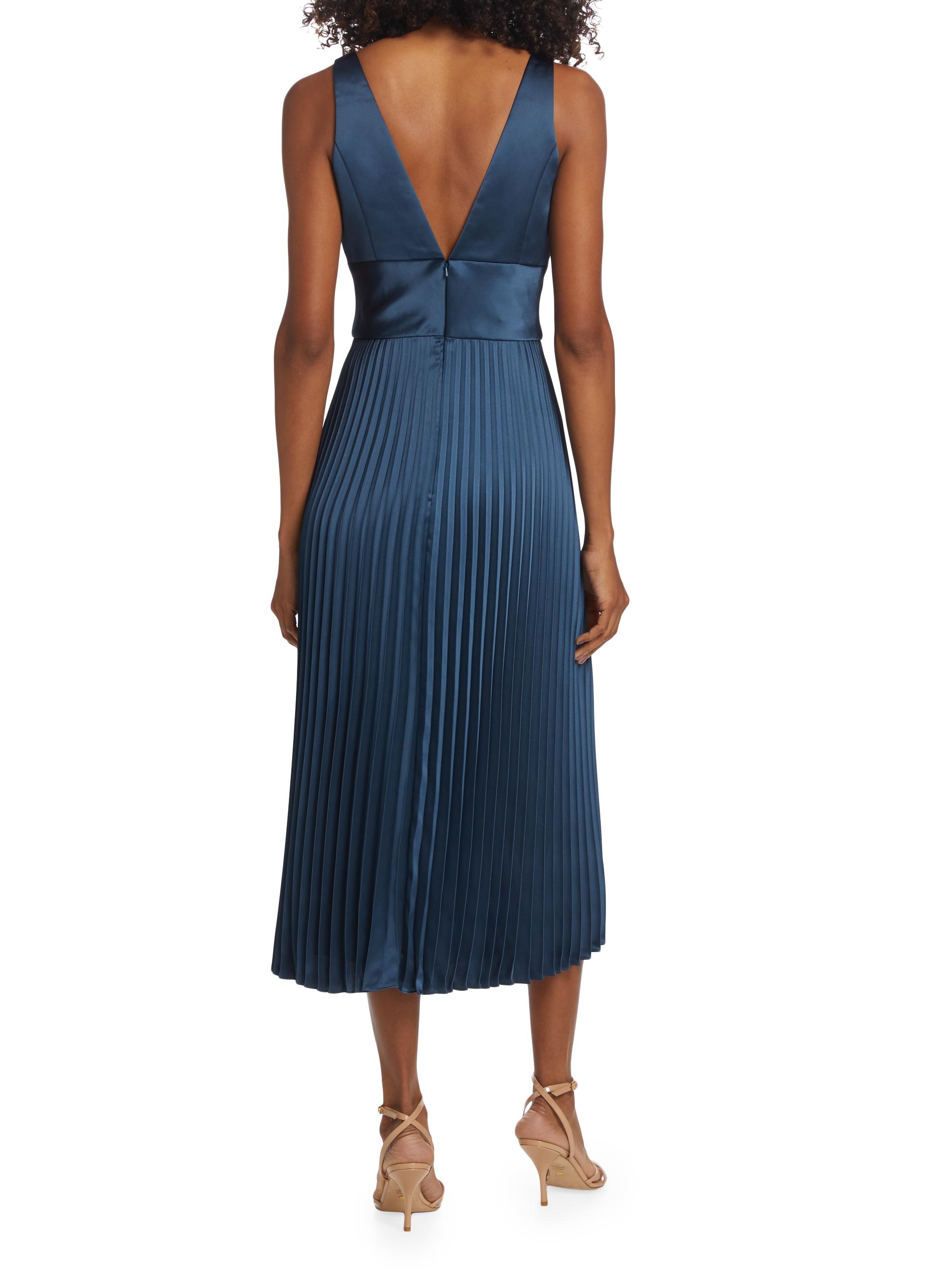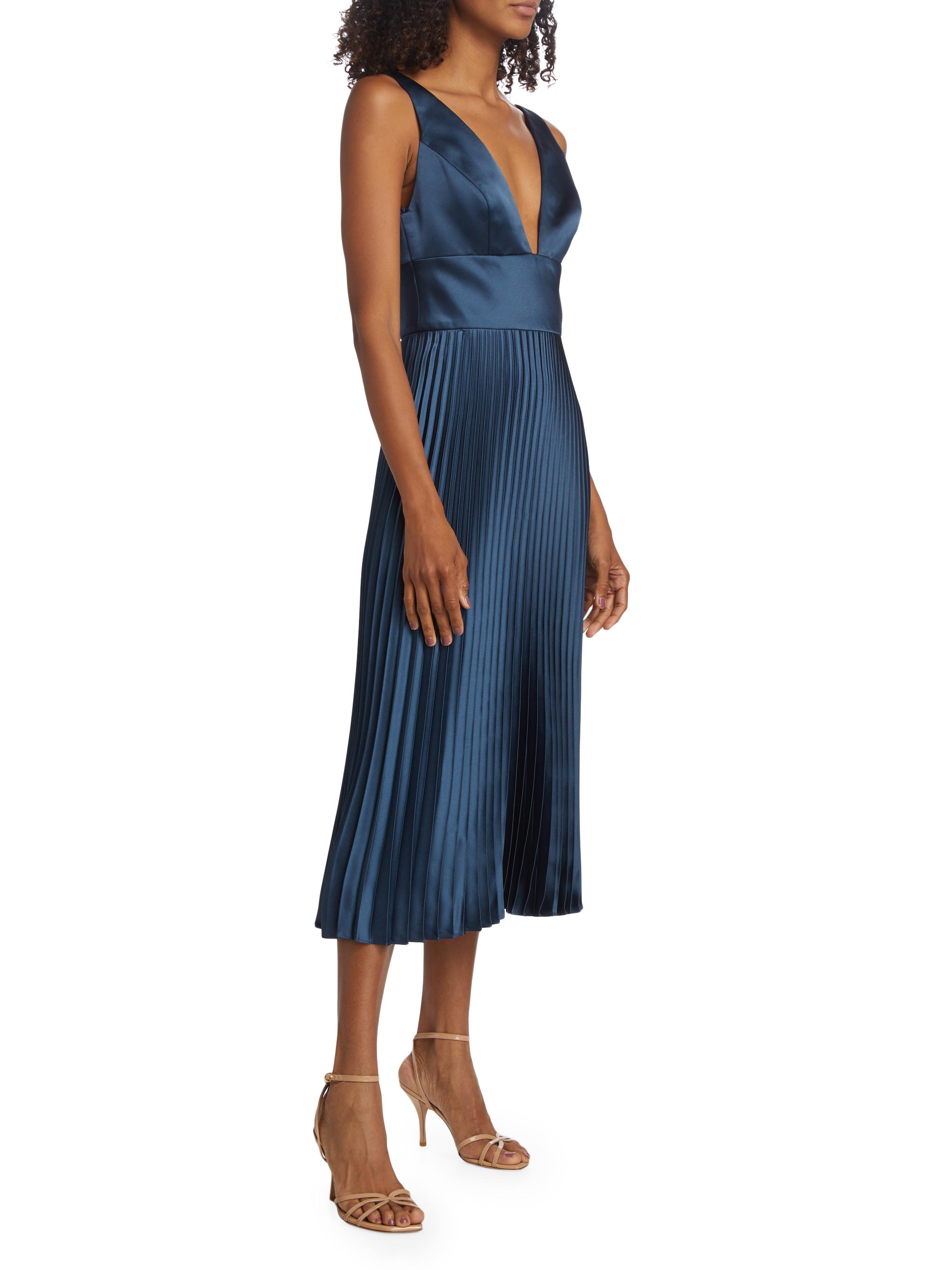 Amsale Satin V-Neck Pleated Midi-Dress