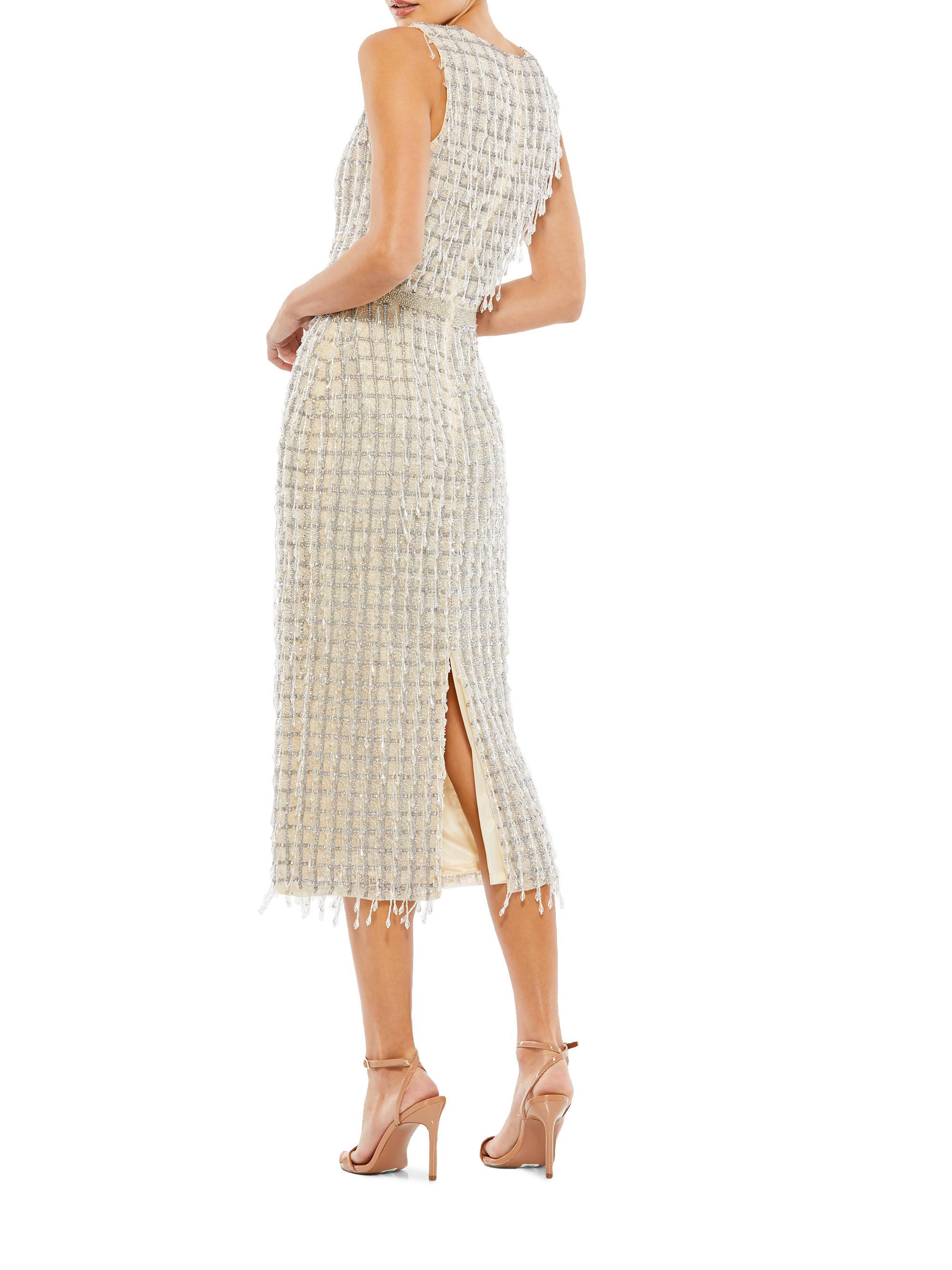 Mac Duggal Beaded Fringe Sheath Dress