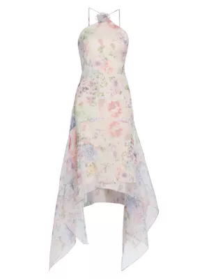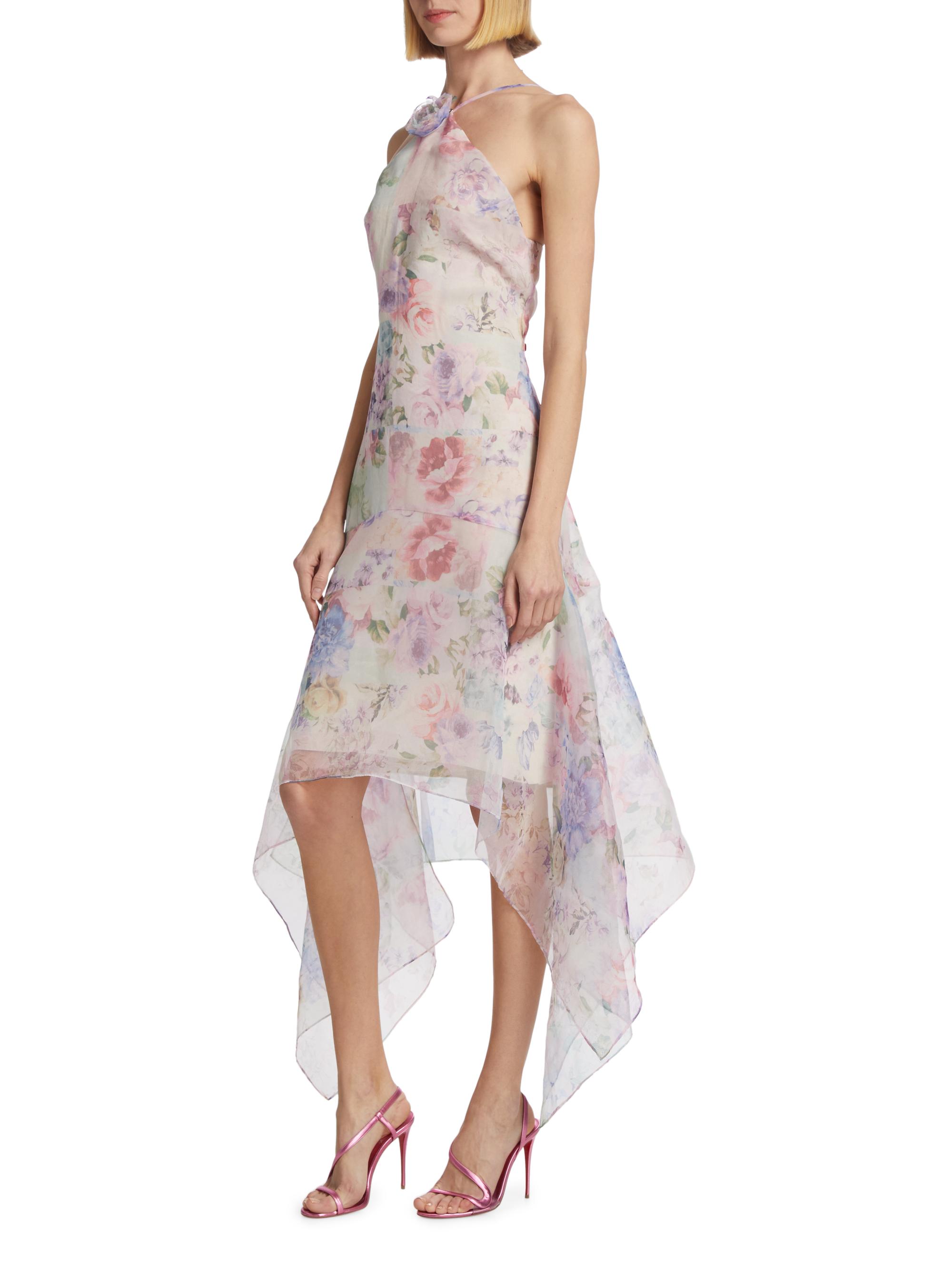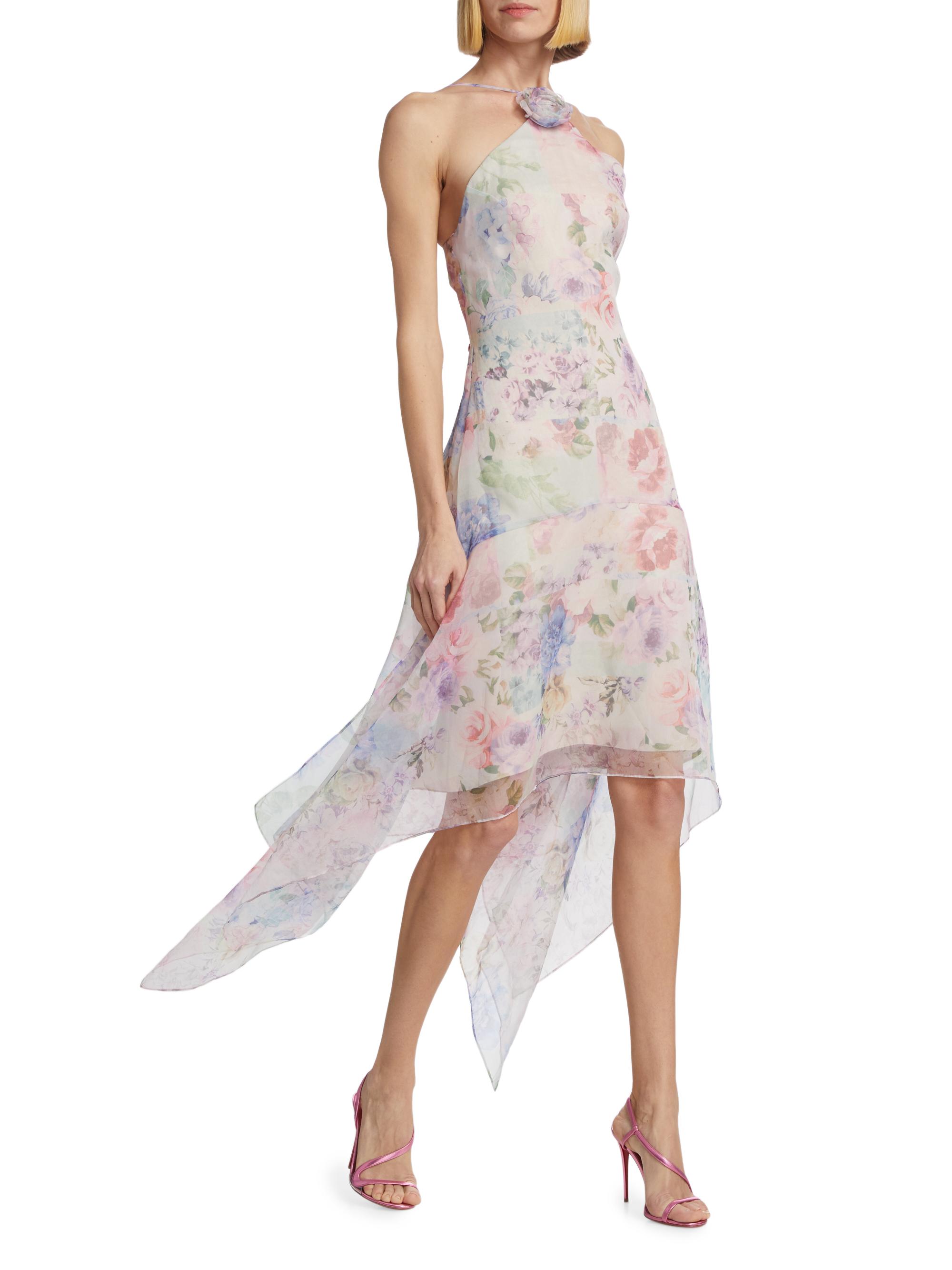 Amanda Uprichard Natalie Floral Handkerchief-Hem Midi-Dress