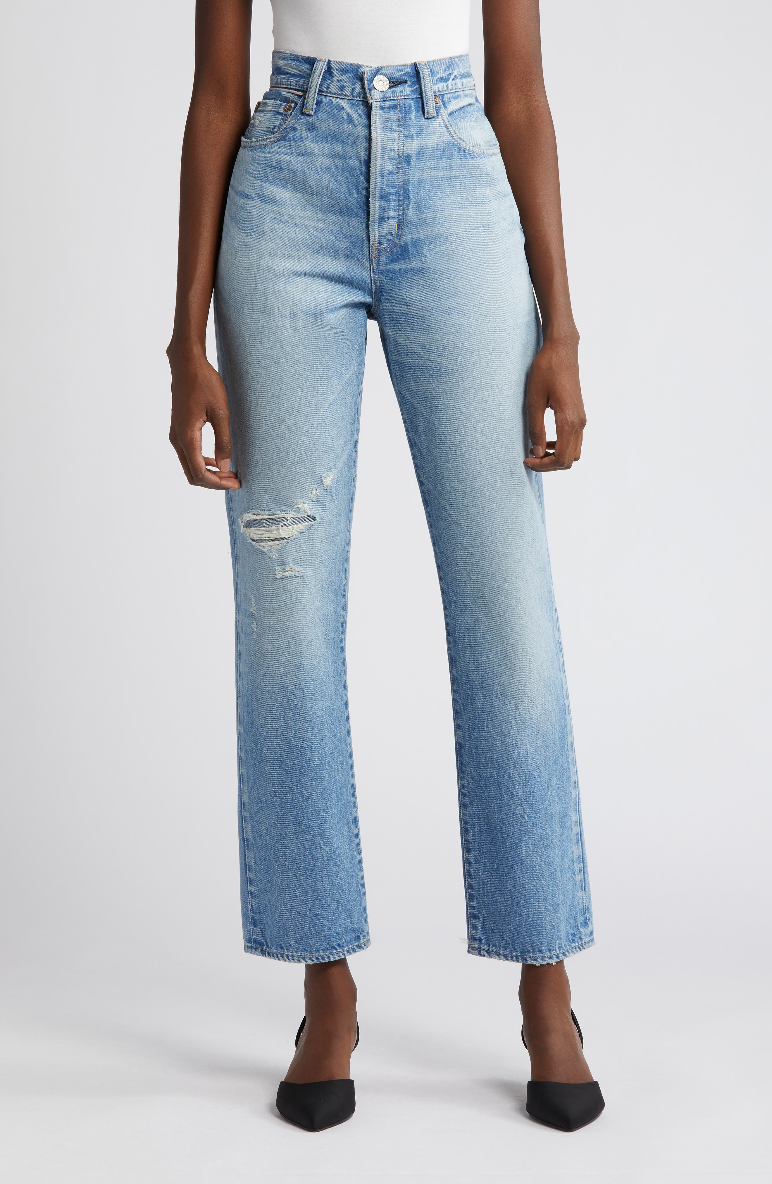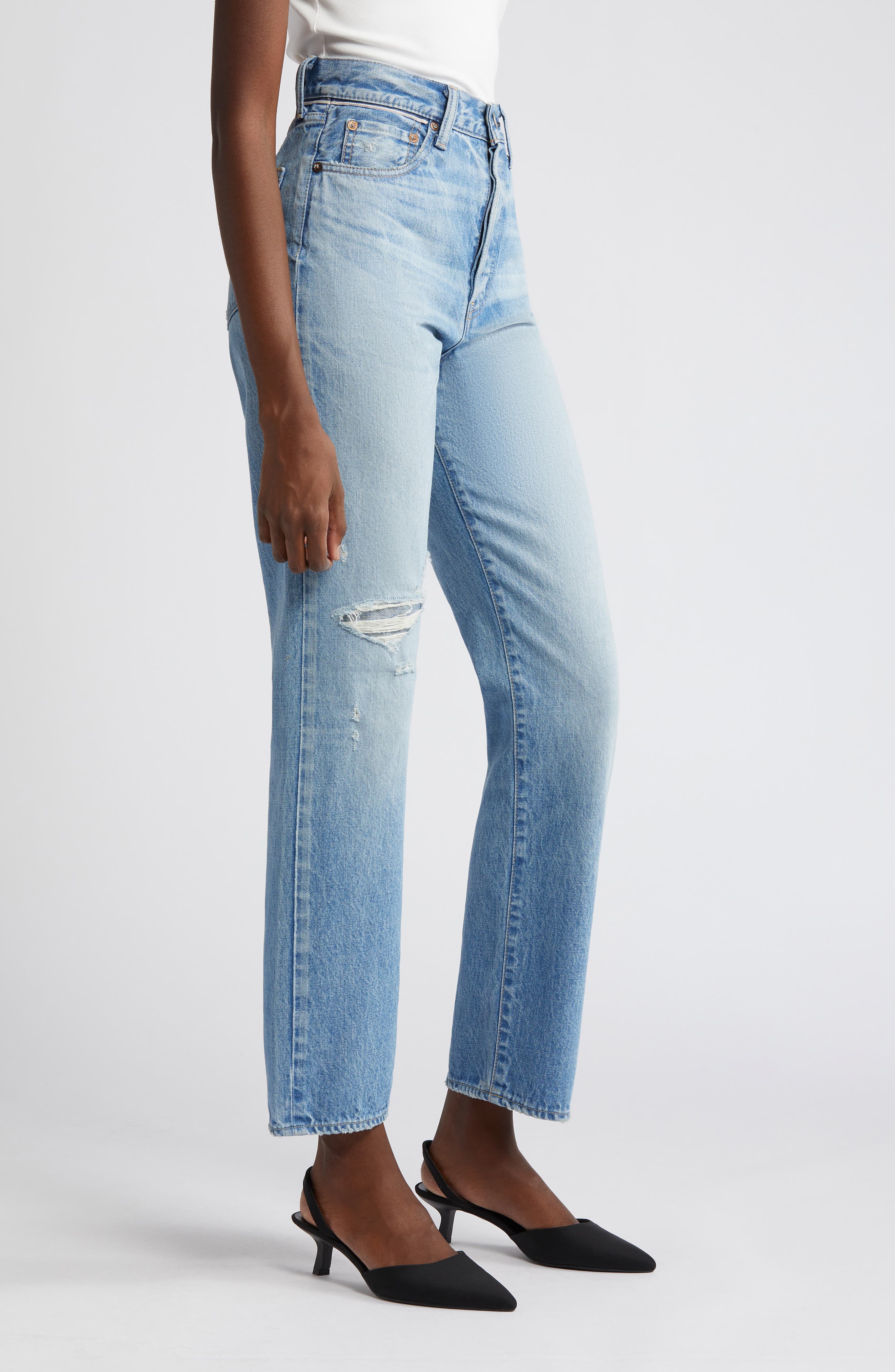 MOUSSY VINTAGE Cliffdale Ripped High Waist Straight Leg Jeans_Light Blue
