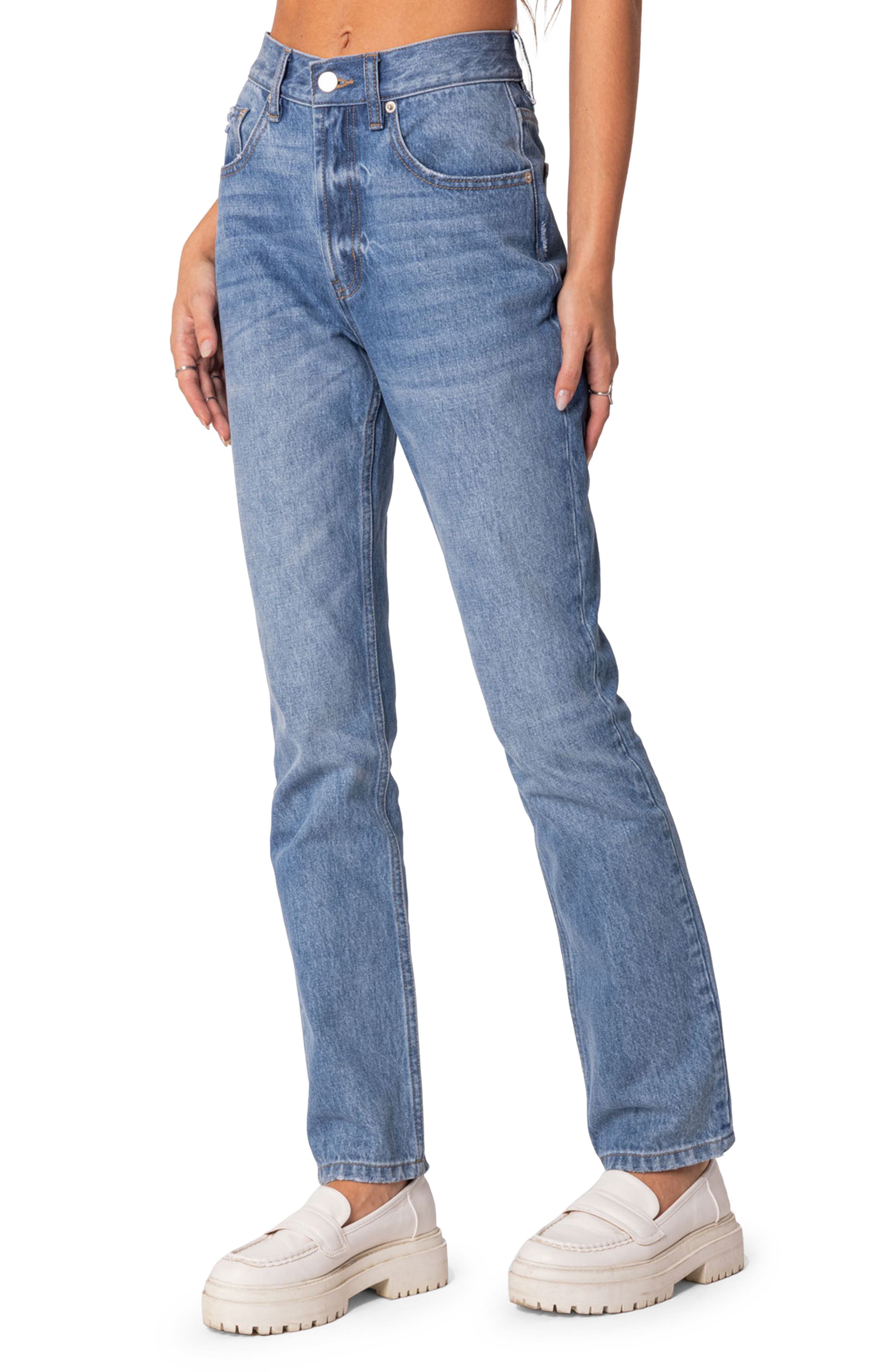 EDIKTED Swift High Waist Straight Leg Jeans_Blue-Washed
