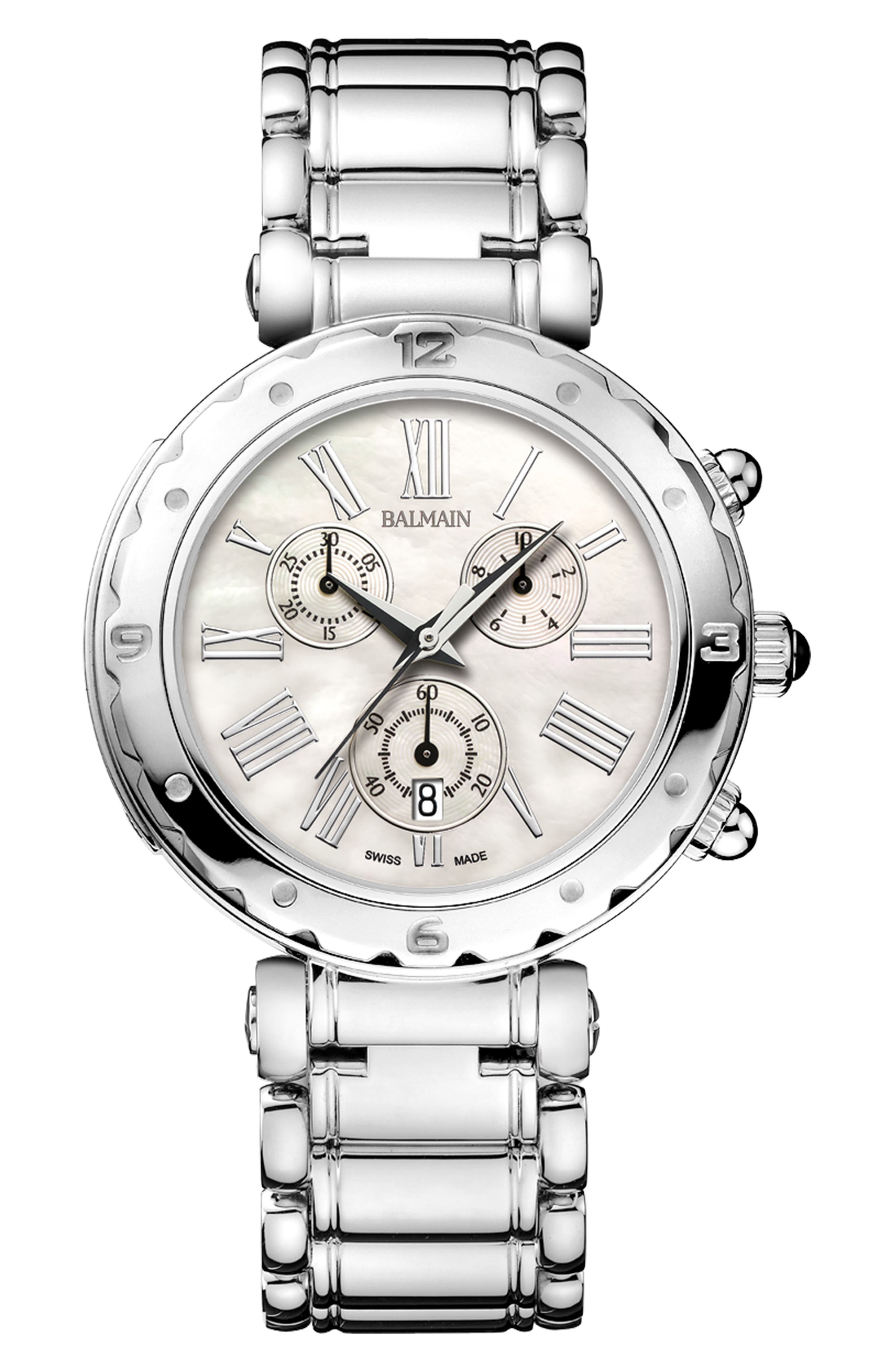BALMAIN WATCHES Mother-of-Pearl Chronograph Bracelet Watch 38mm_Silver/ White