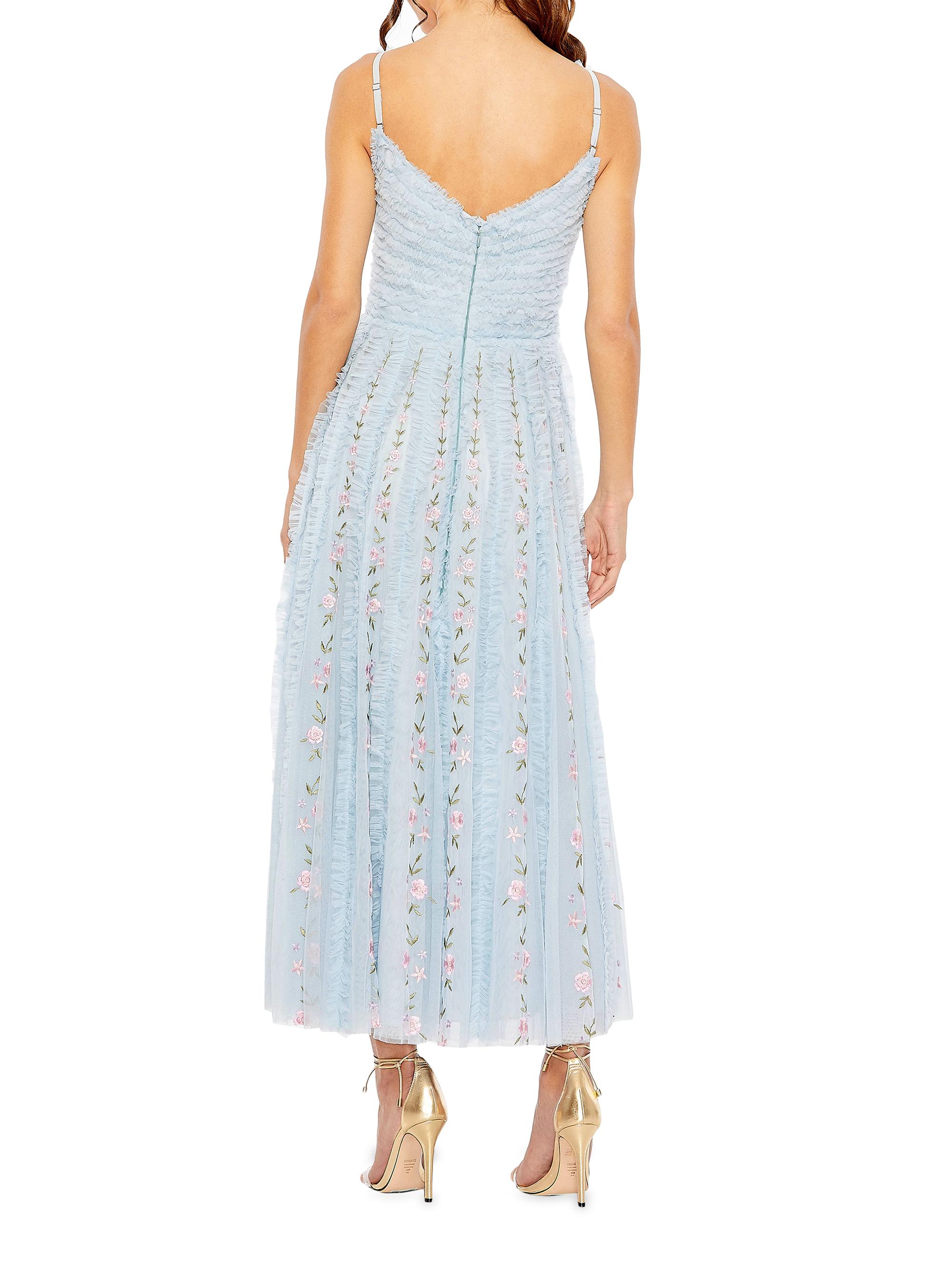 Mac Duggal Ruffled Floral Tulle Midi-Dress