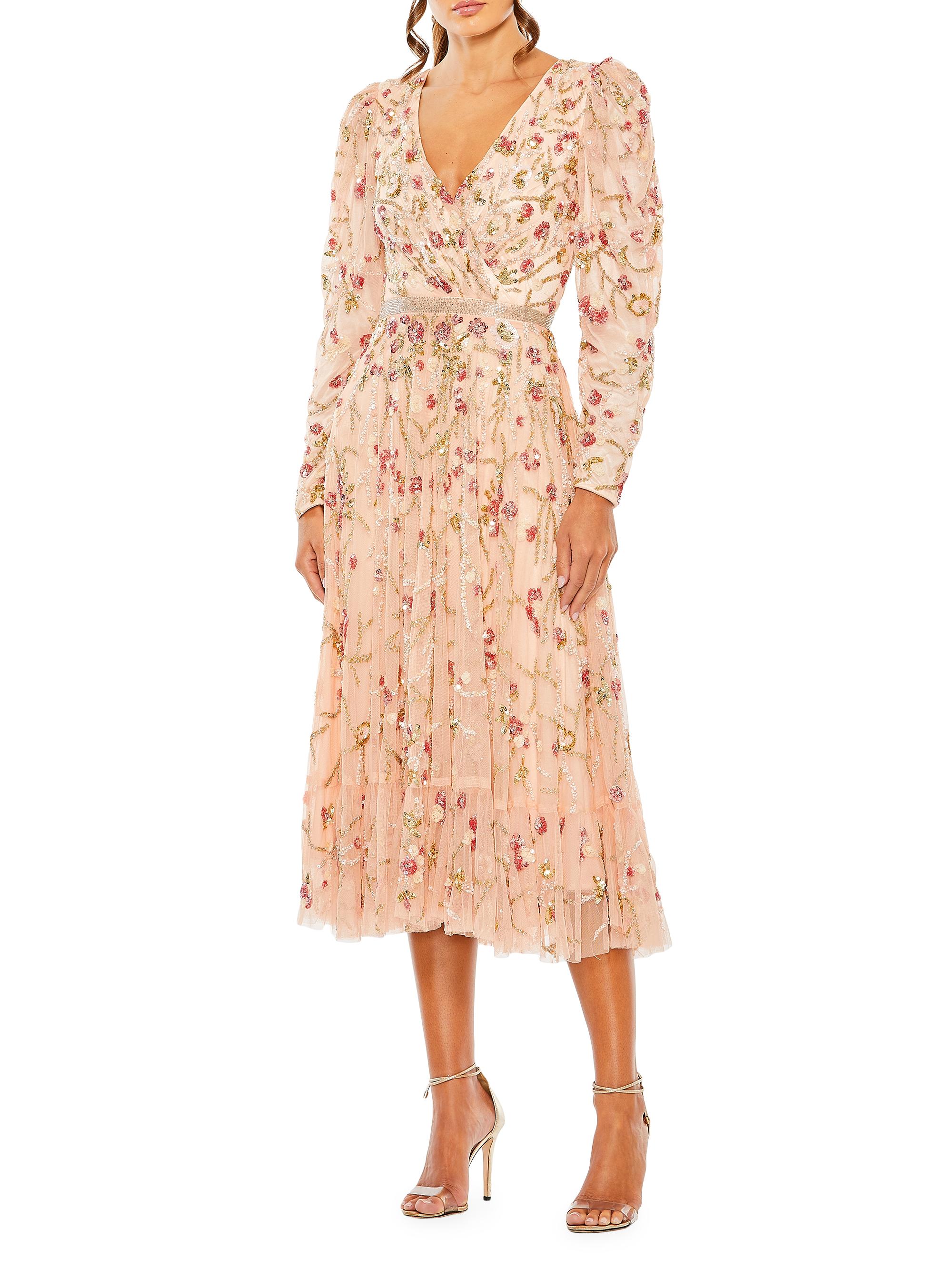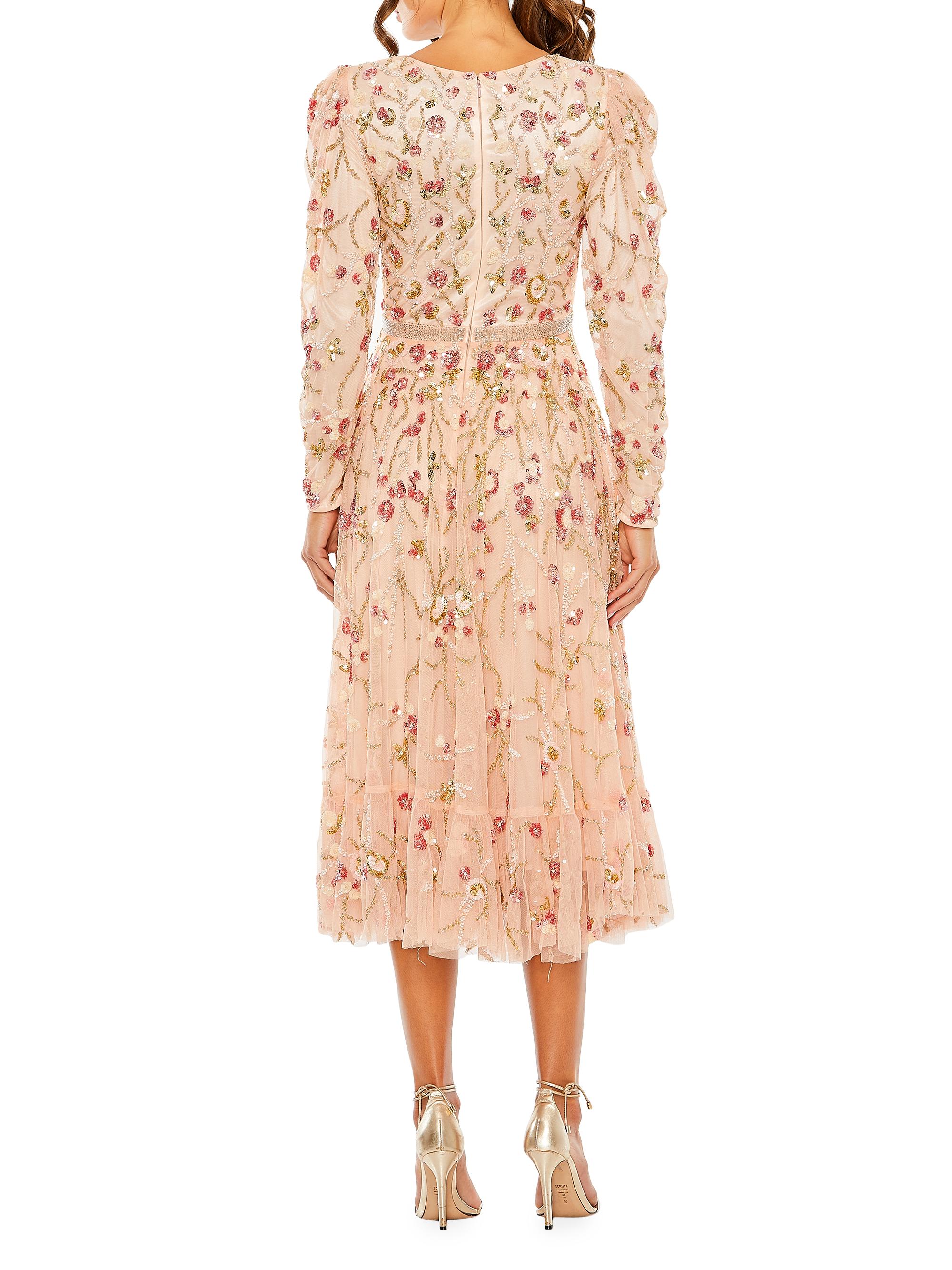 Mac Duggal Cocktail Embellished Floral Midi-Dress