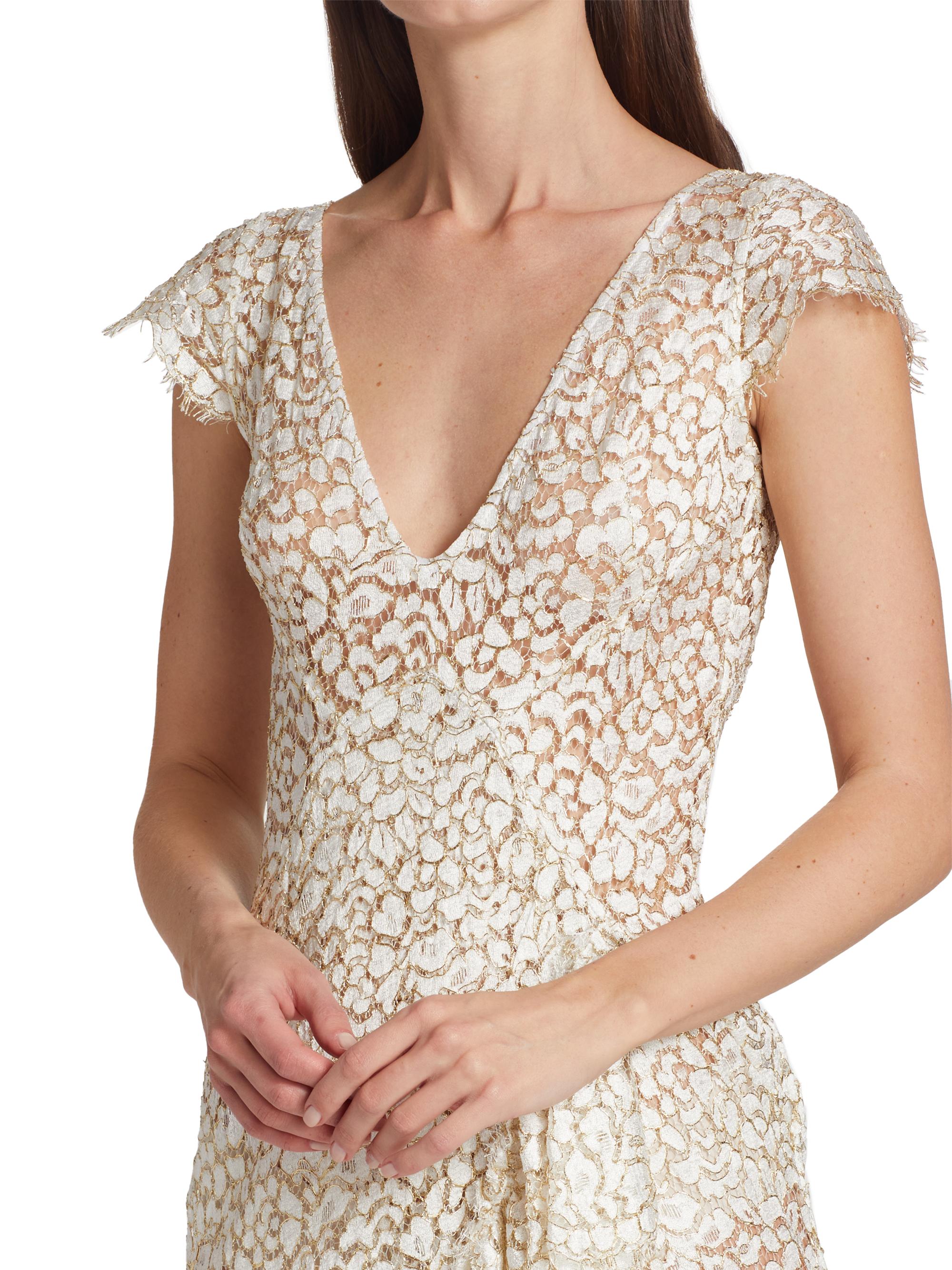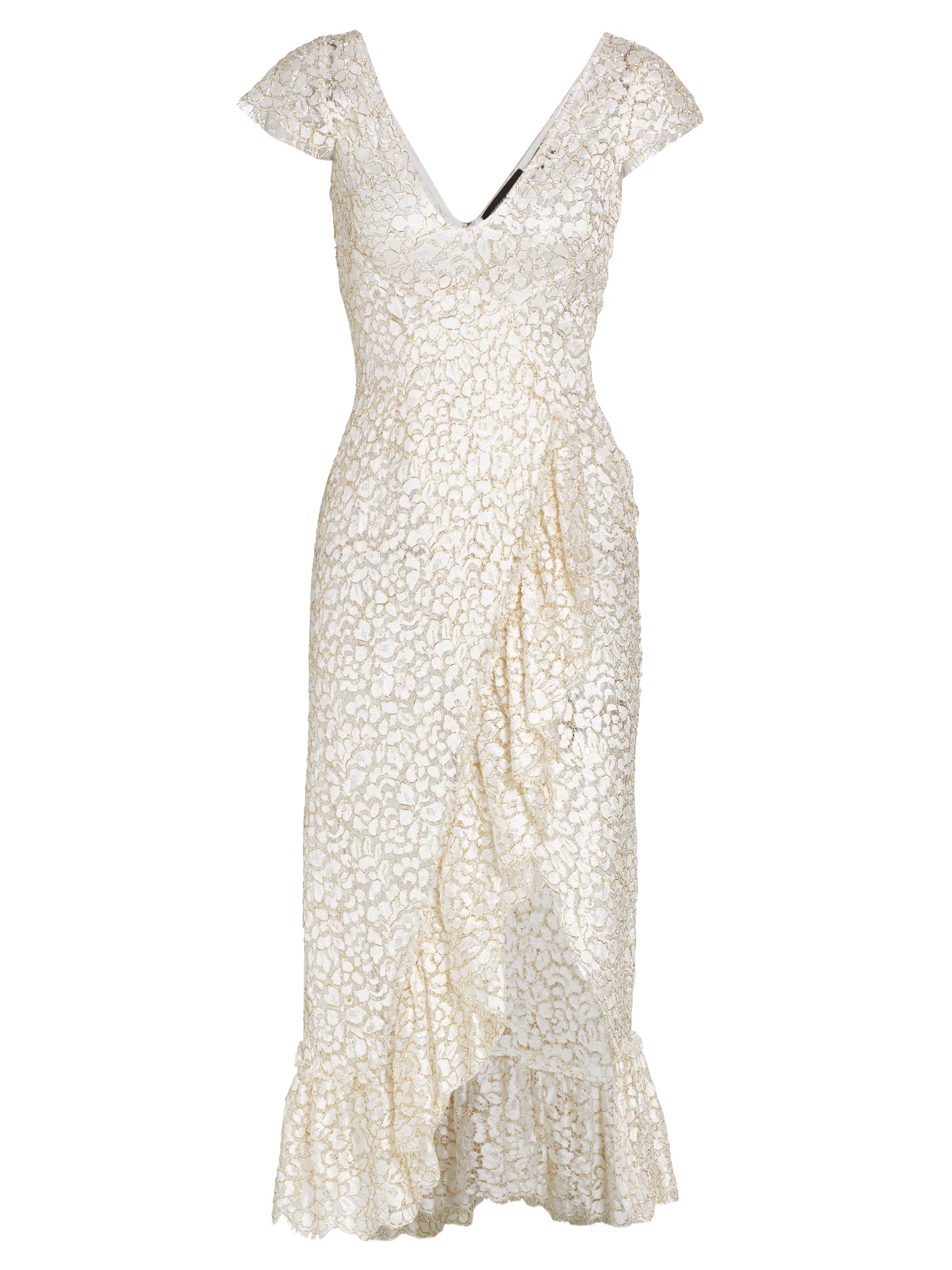 Frederick Anderson Chantilly Lace Surplice Midi Dress