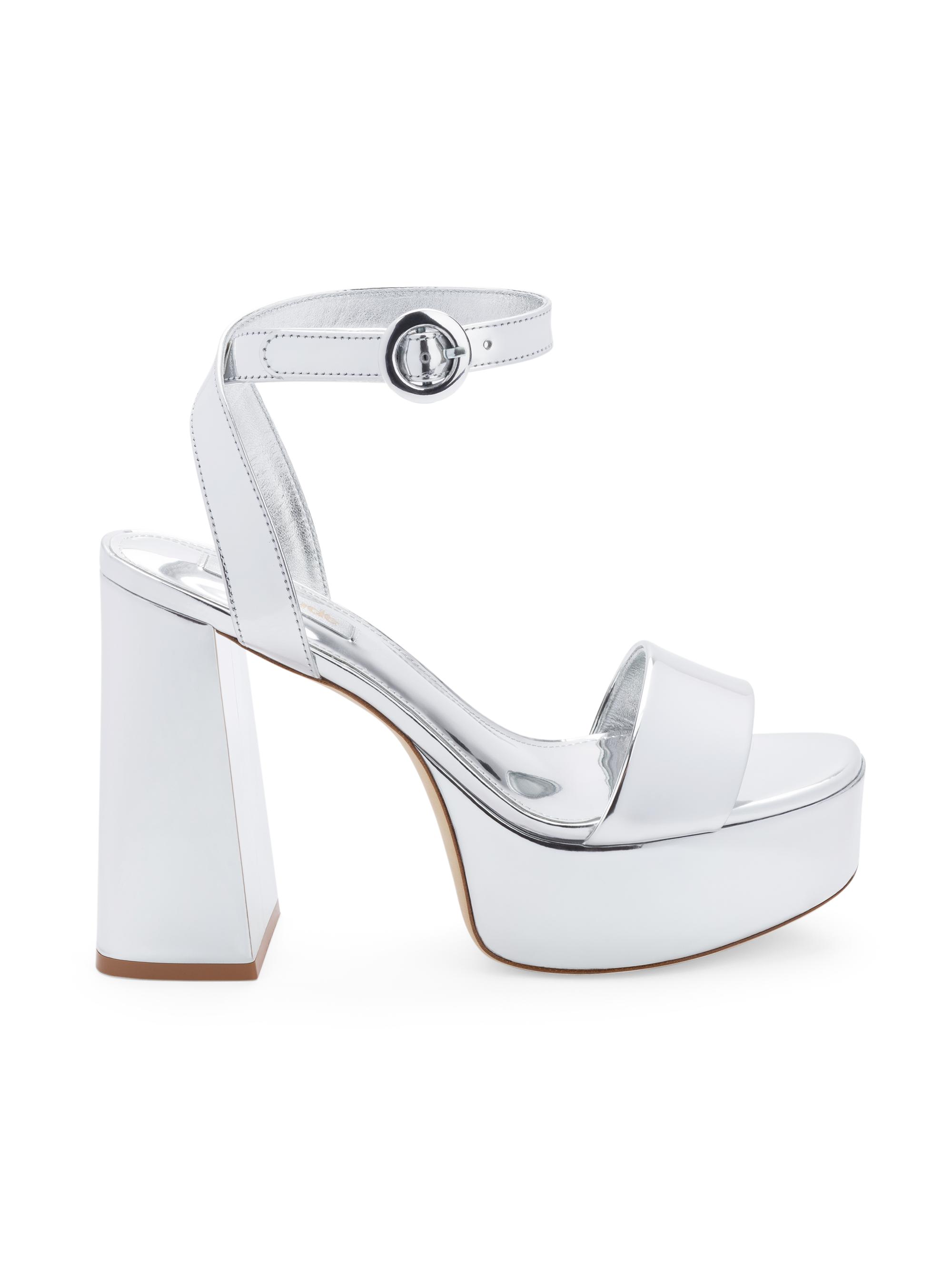 Larroude Dolly Metallic Leather Platform Ankle-Strap Sandals