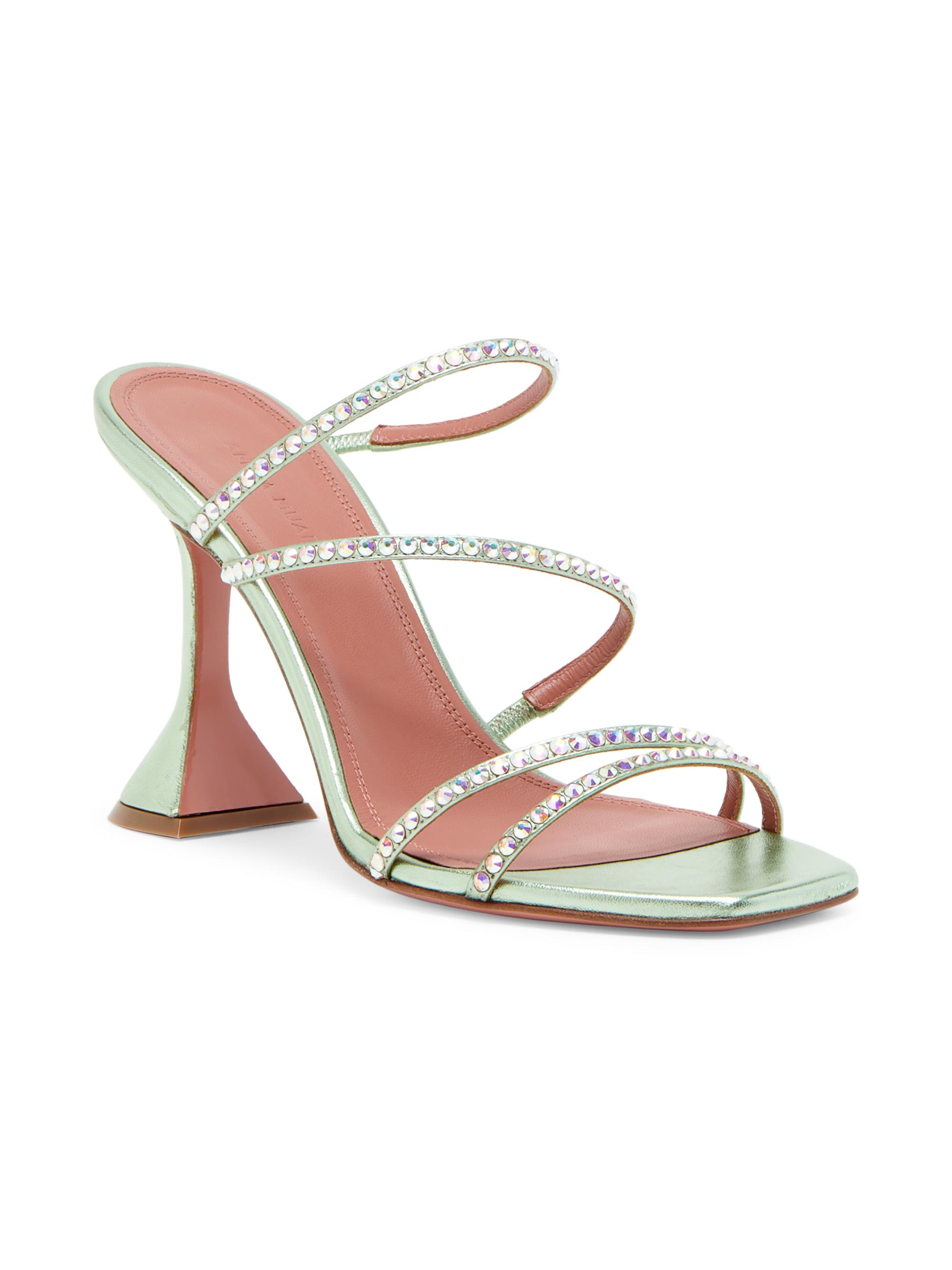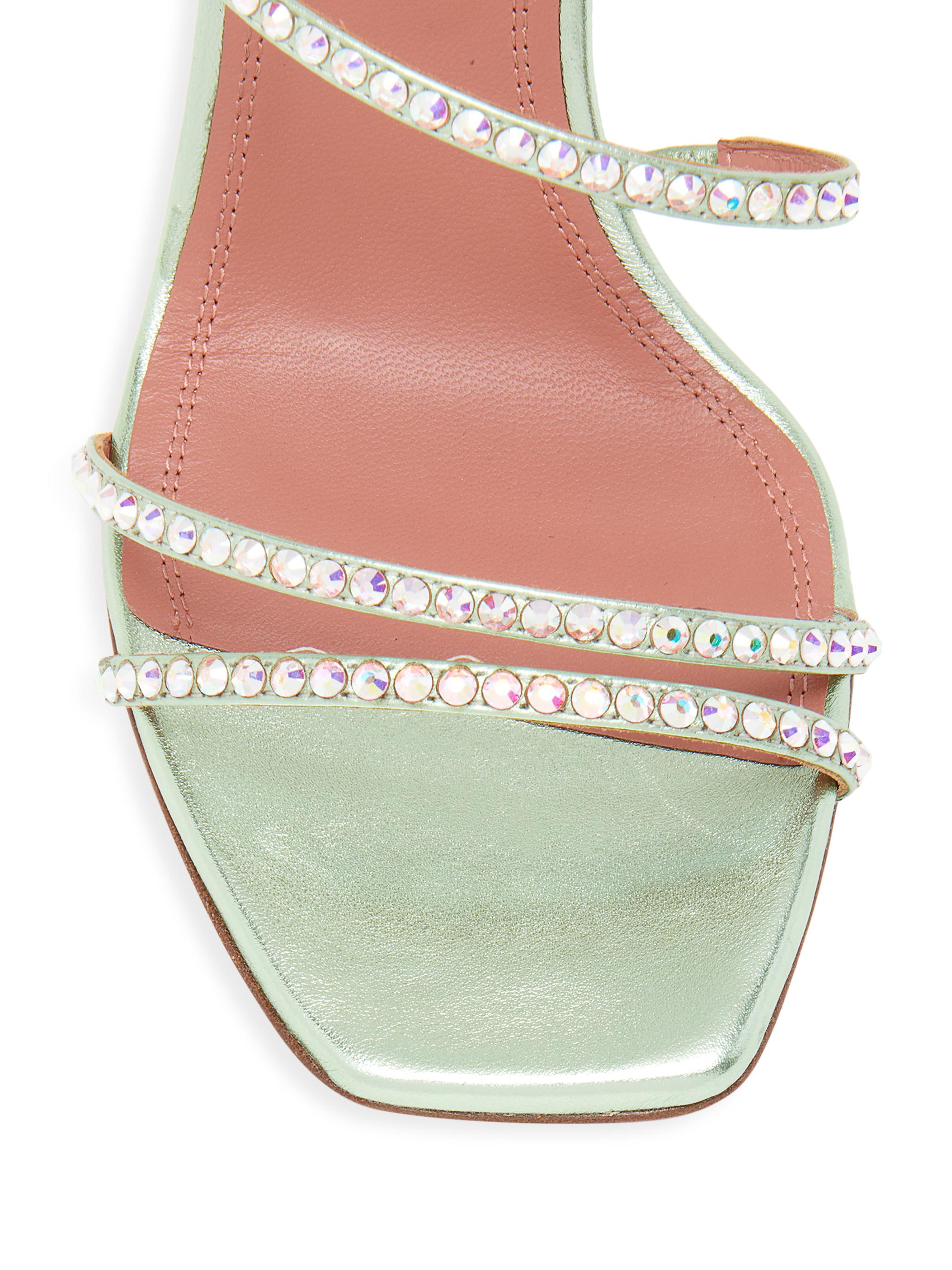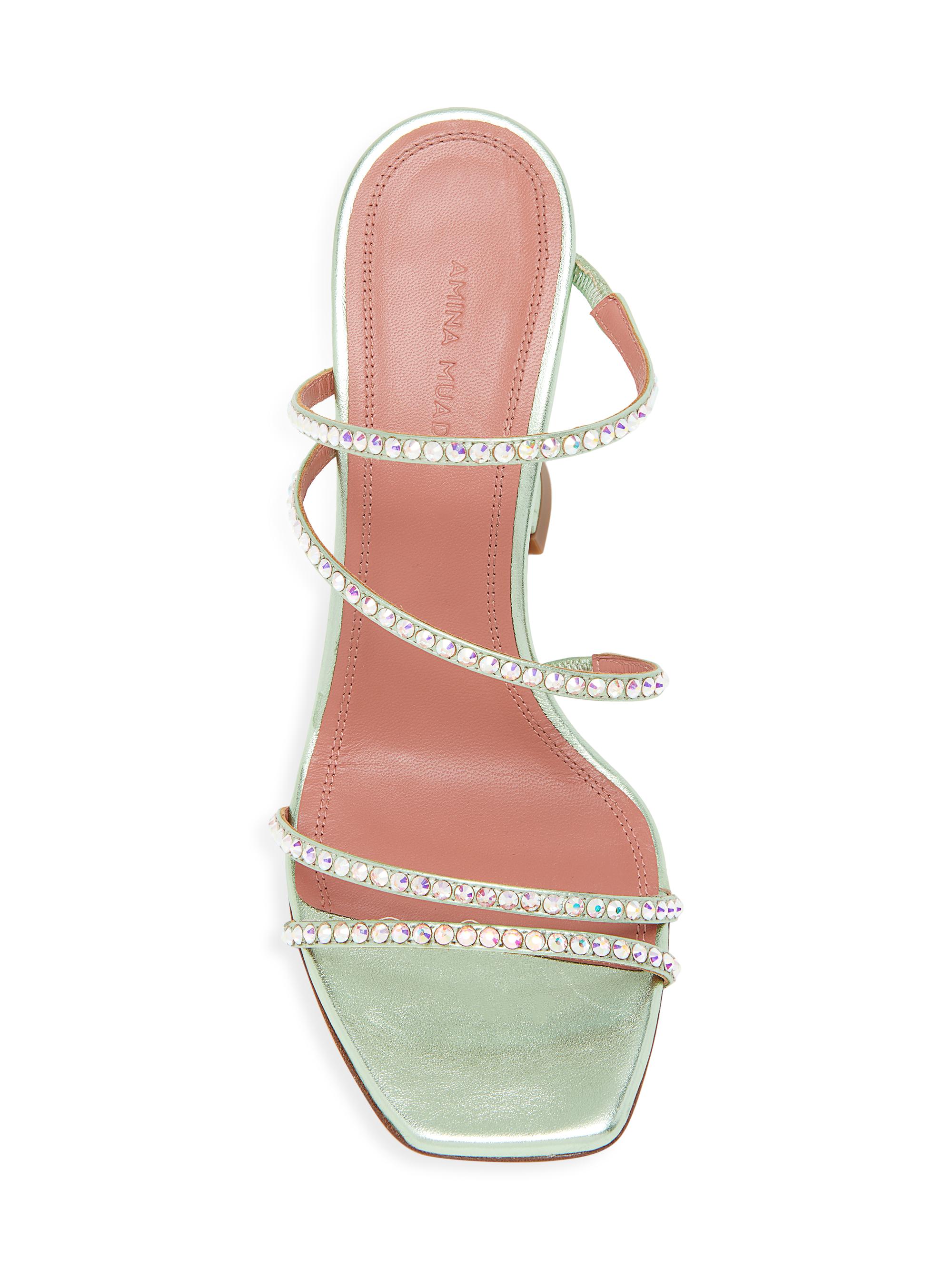 Amina Muaddi Naima 95MM Crystal-Embellished Metallic Leather Sandals