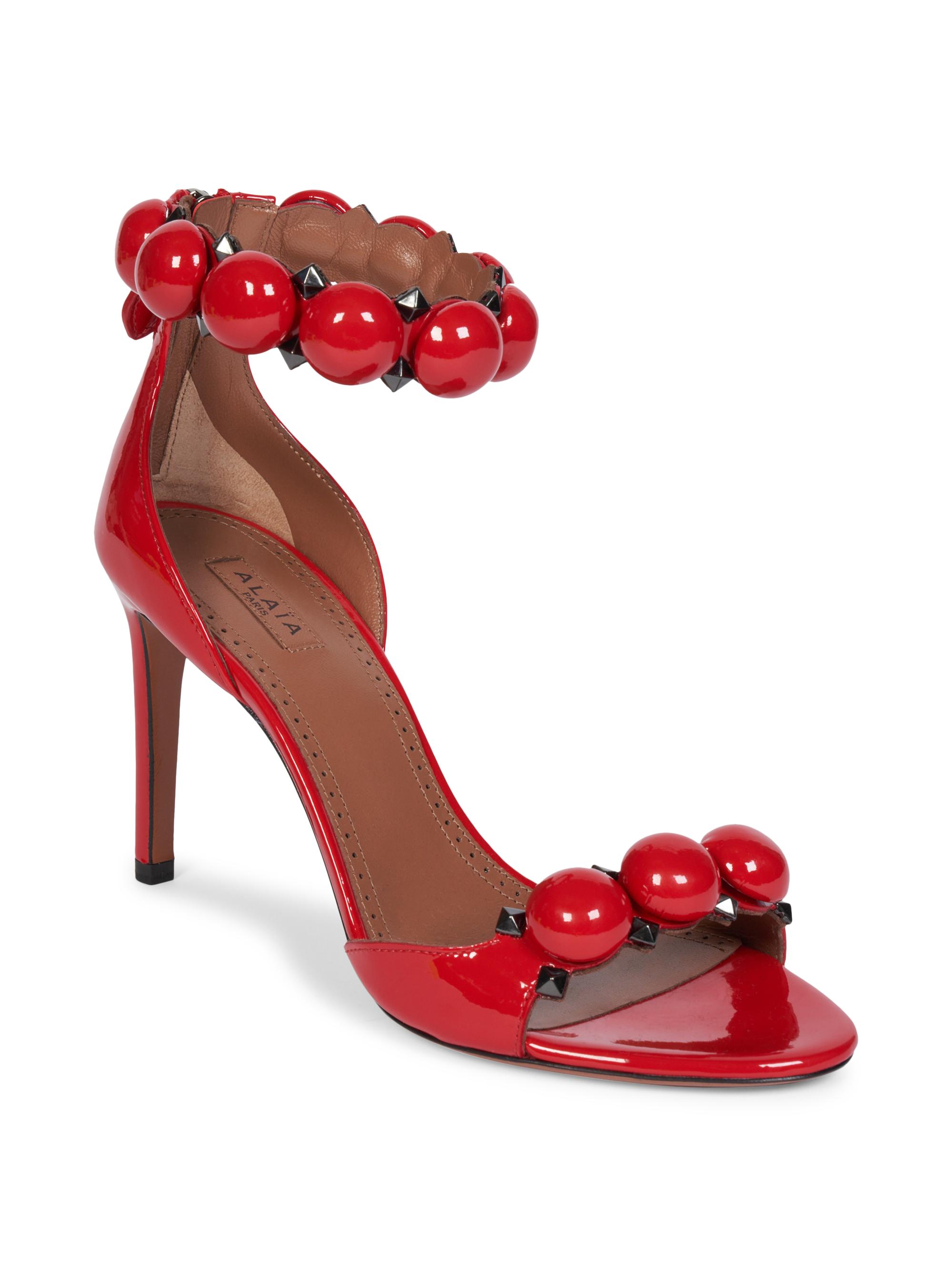 Alaia La Bombe Patent Leather Studded High-Heel Sandals