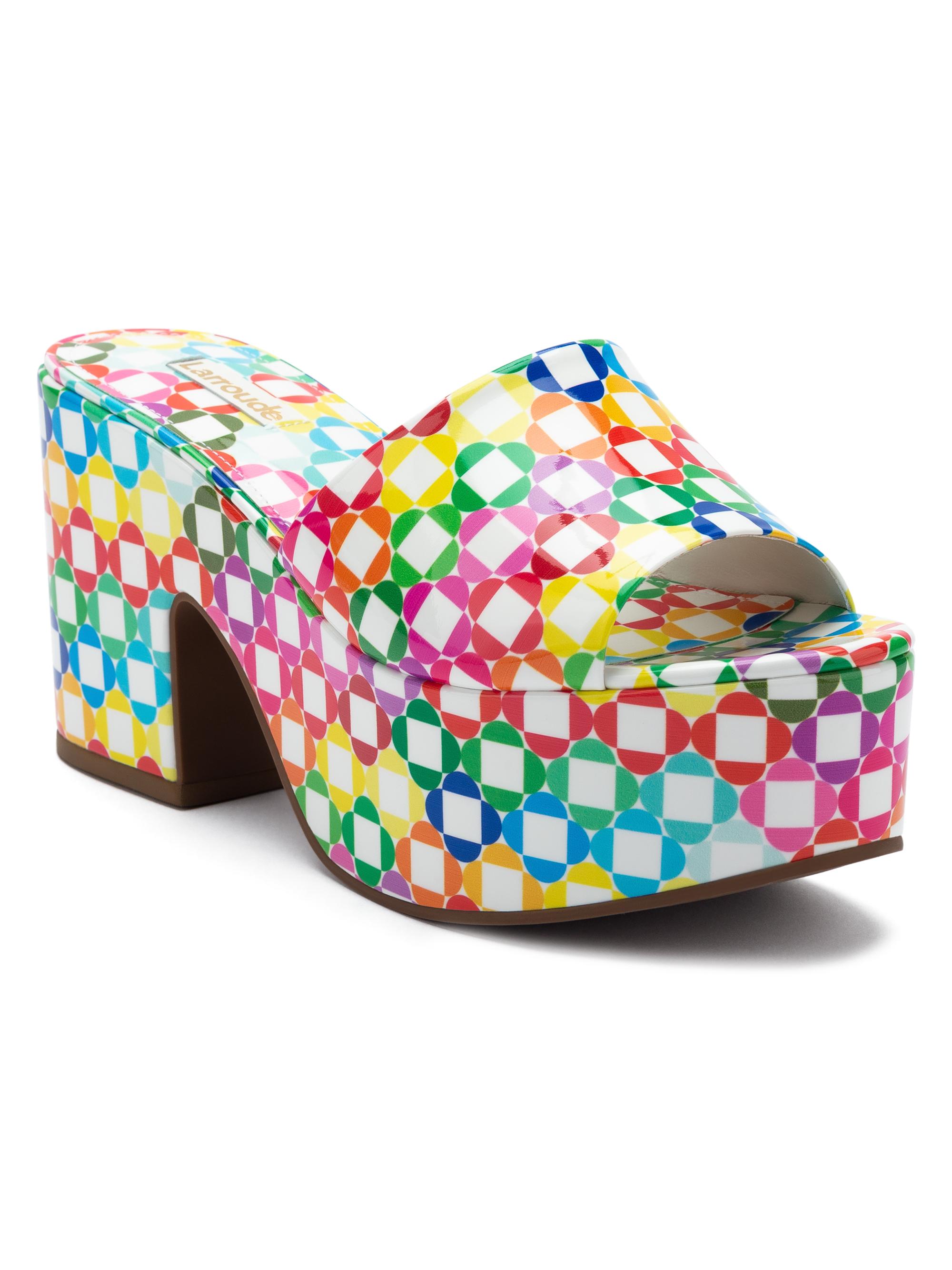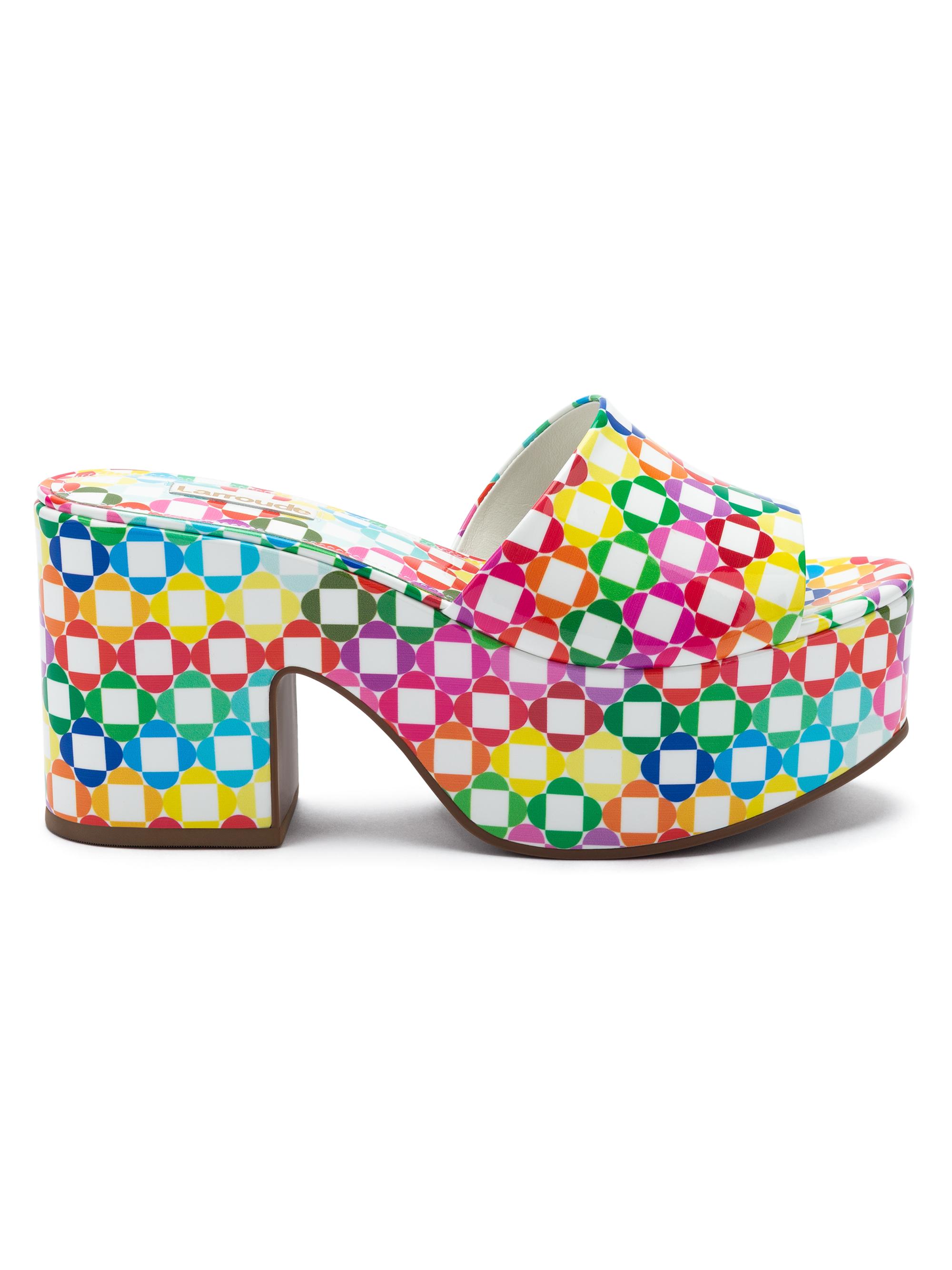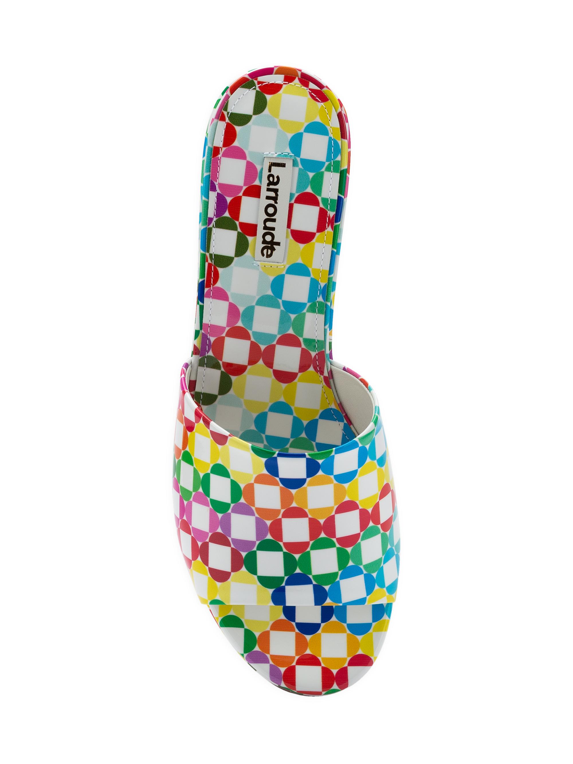 Larroude Miso 90MM Daisy Monogram Leather Platform Mules
