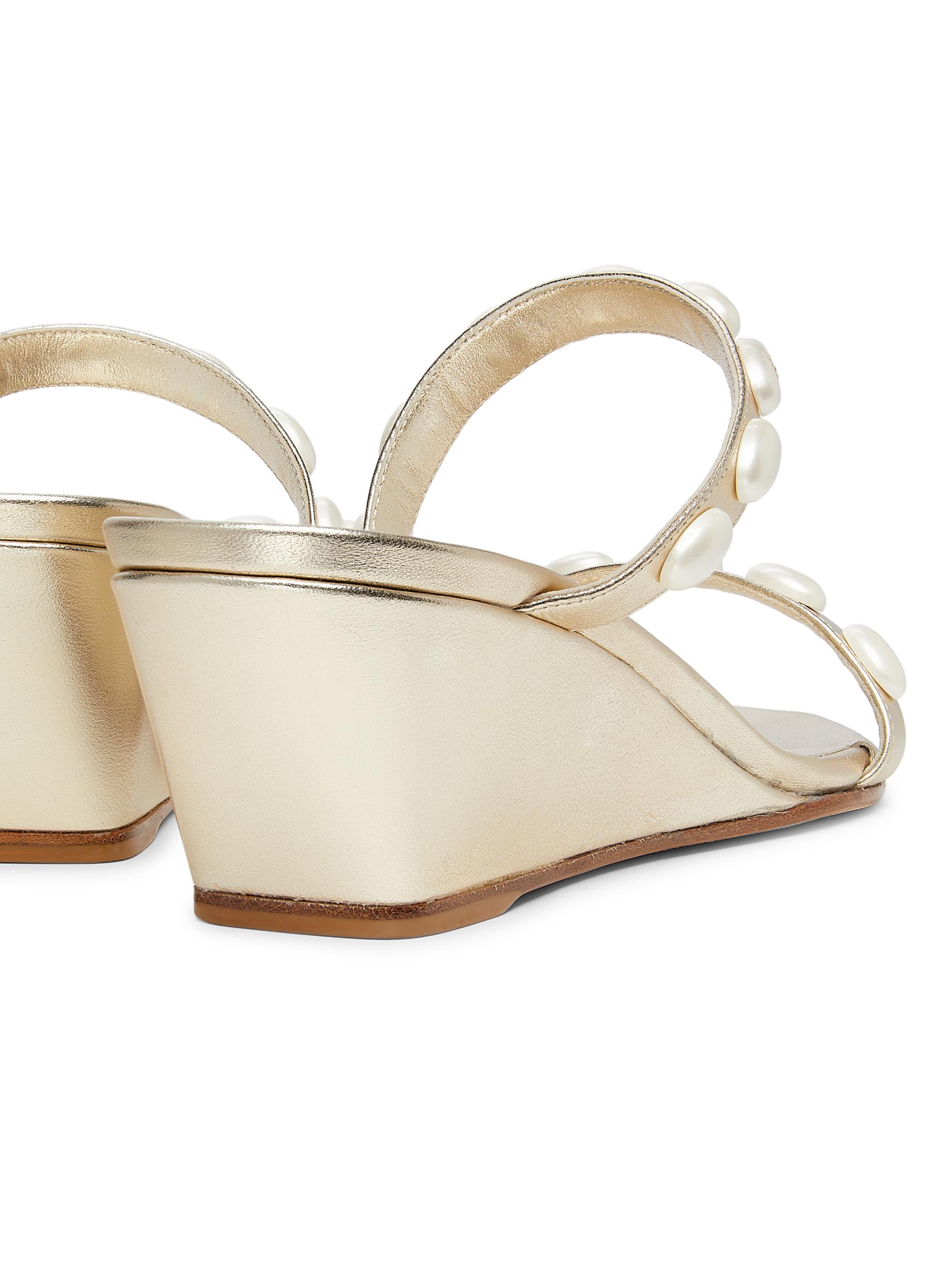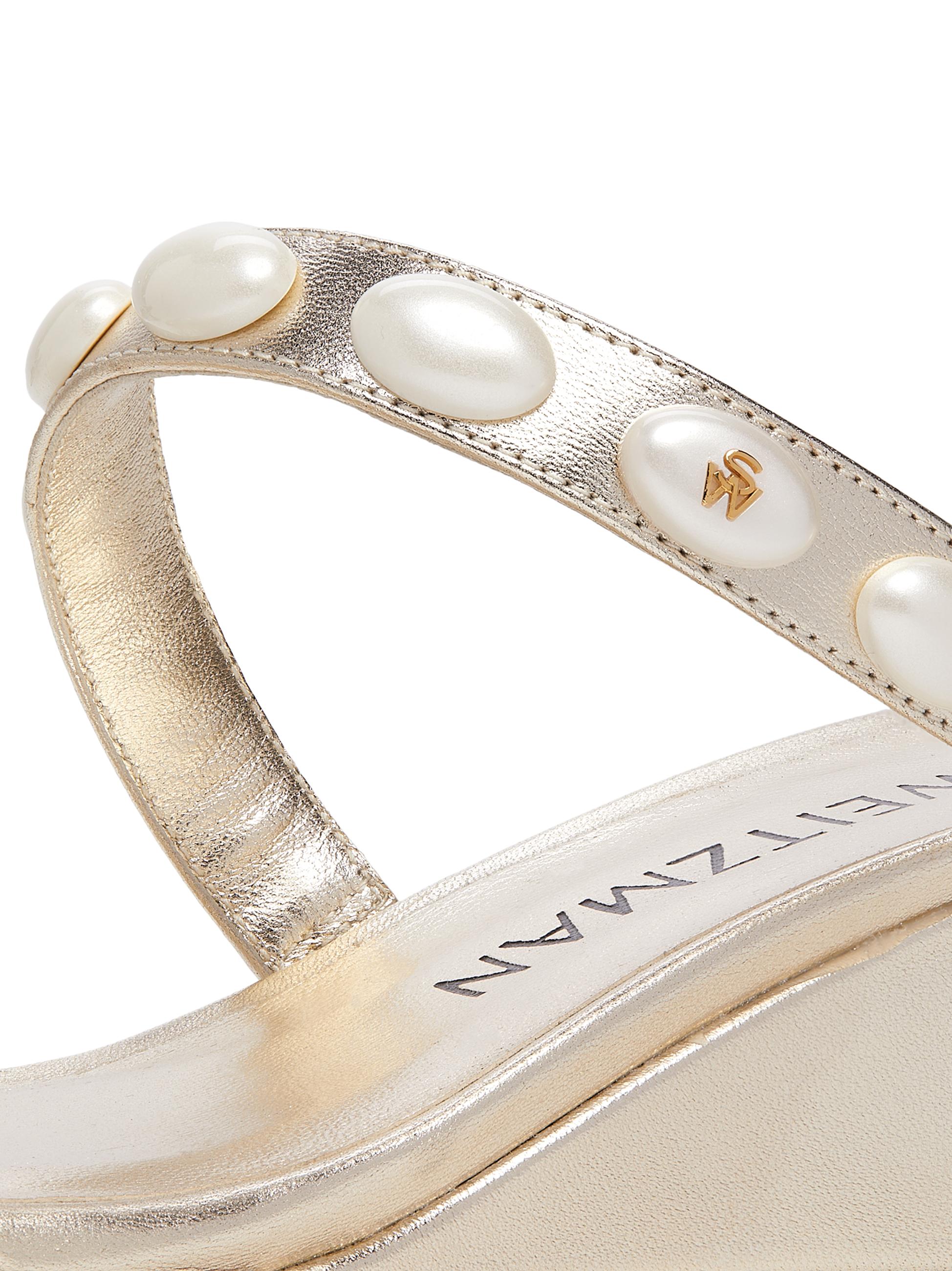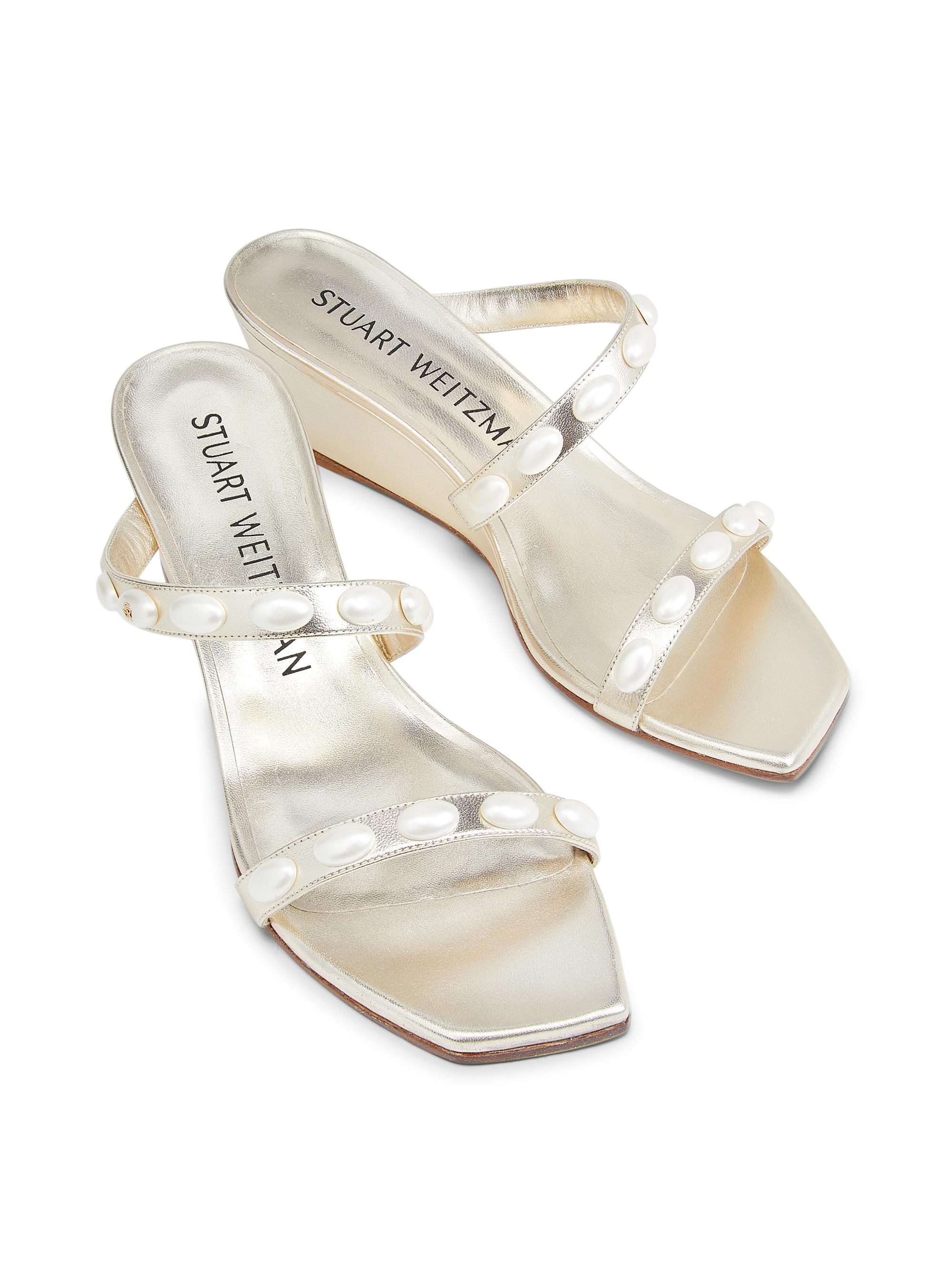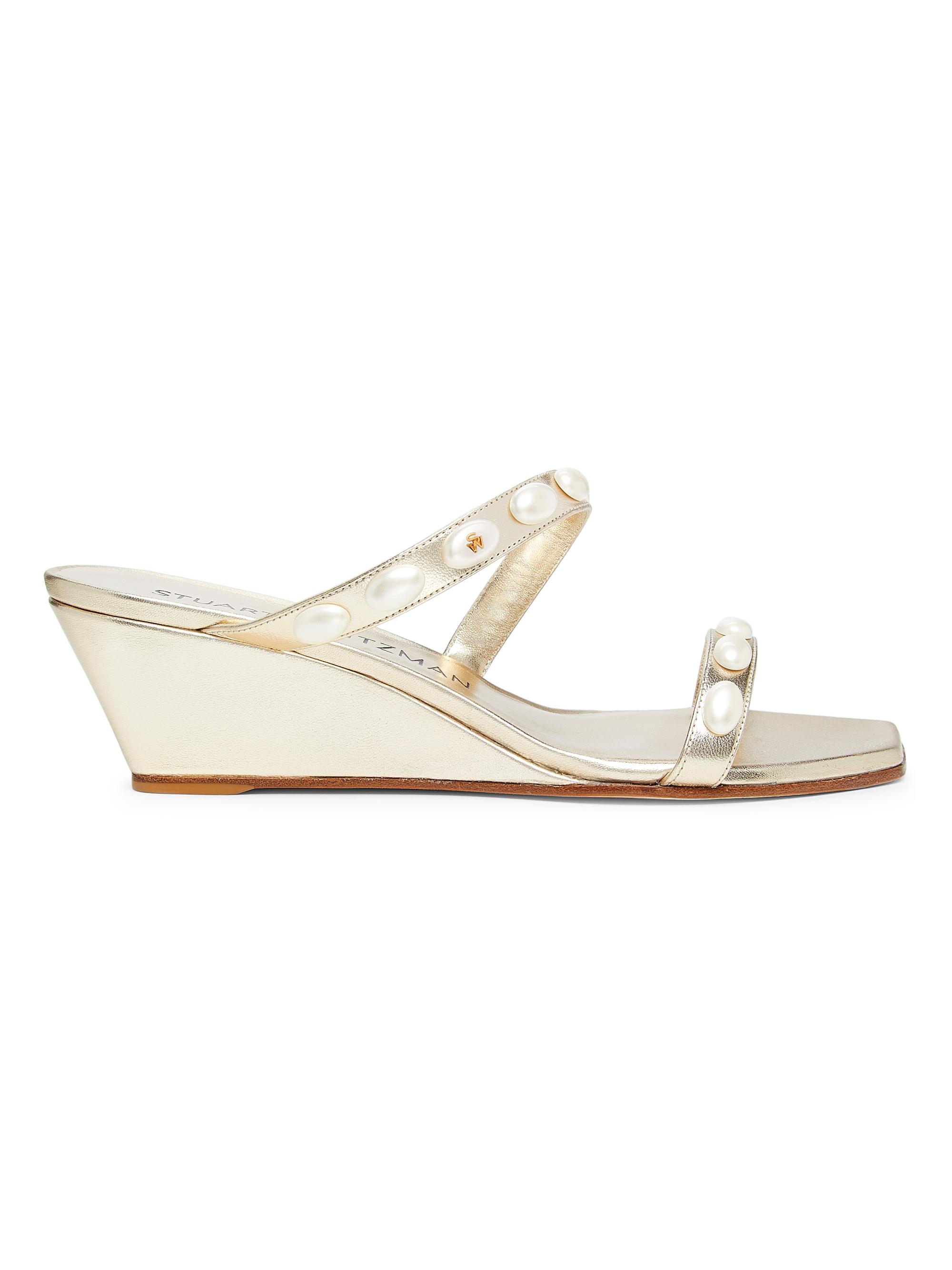 Stuart Weitzman Pearlita 50MM Metallic Leather Wedge Sandals
