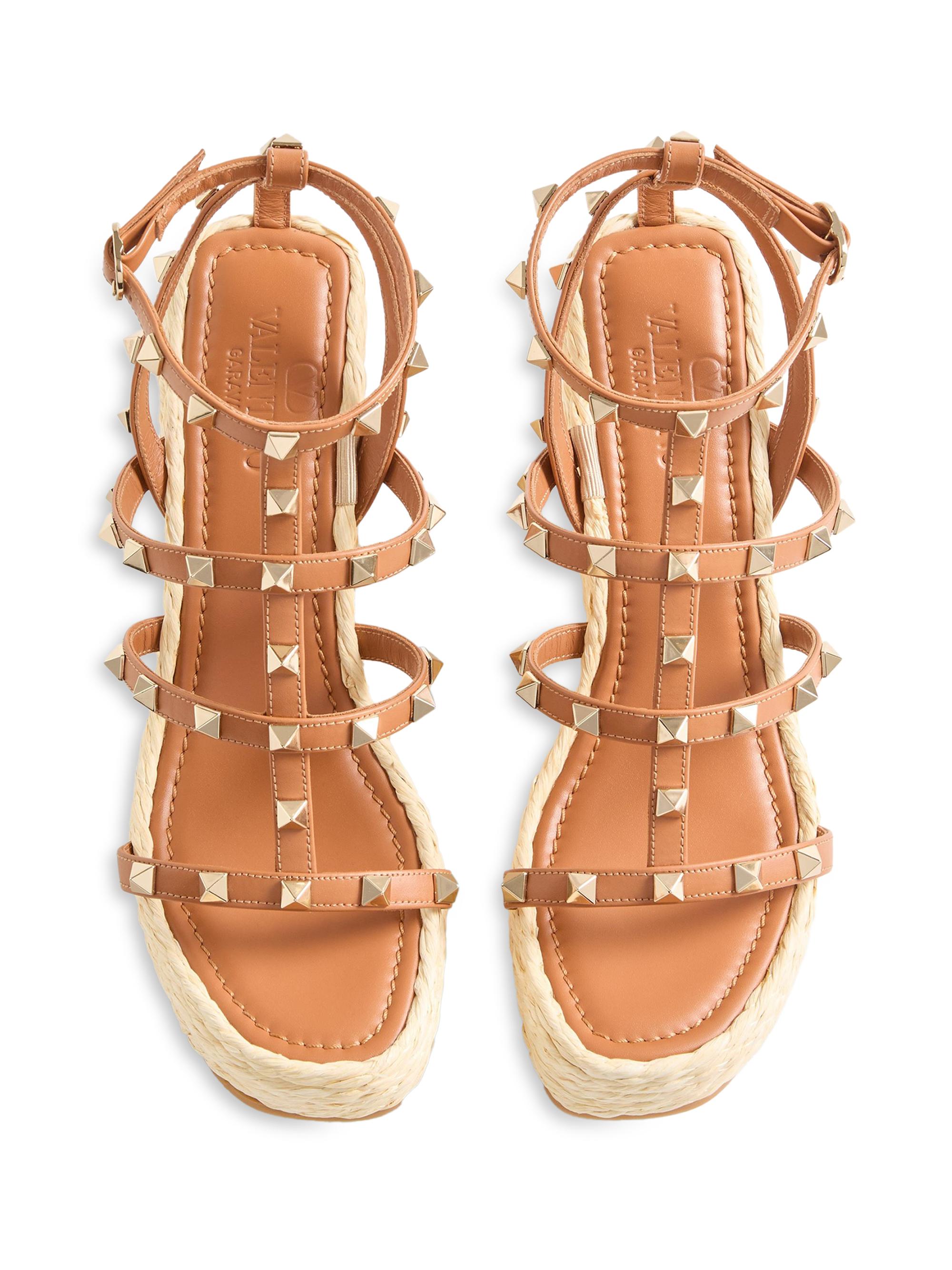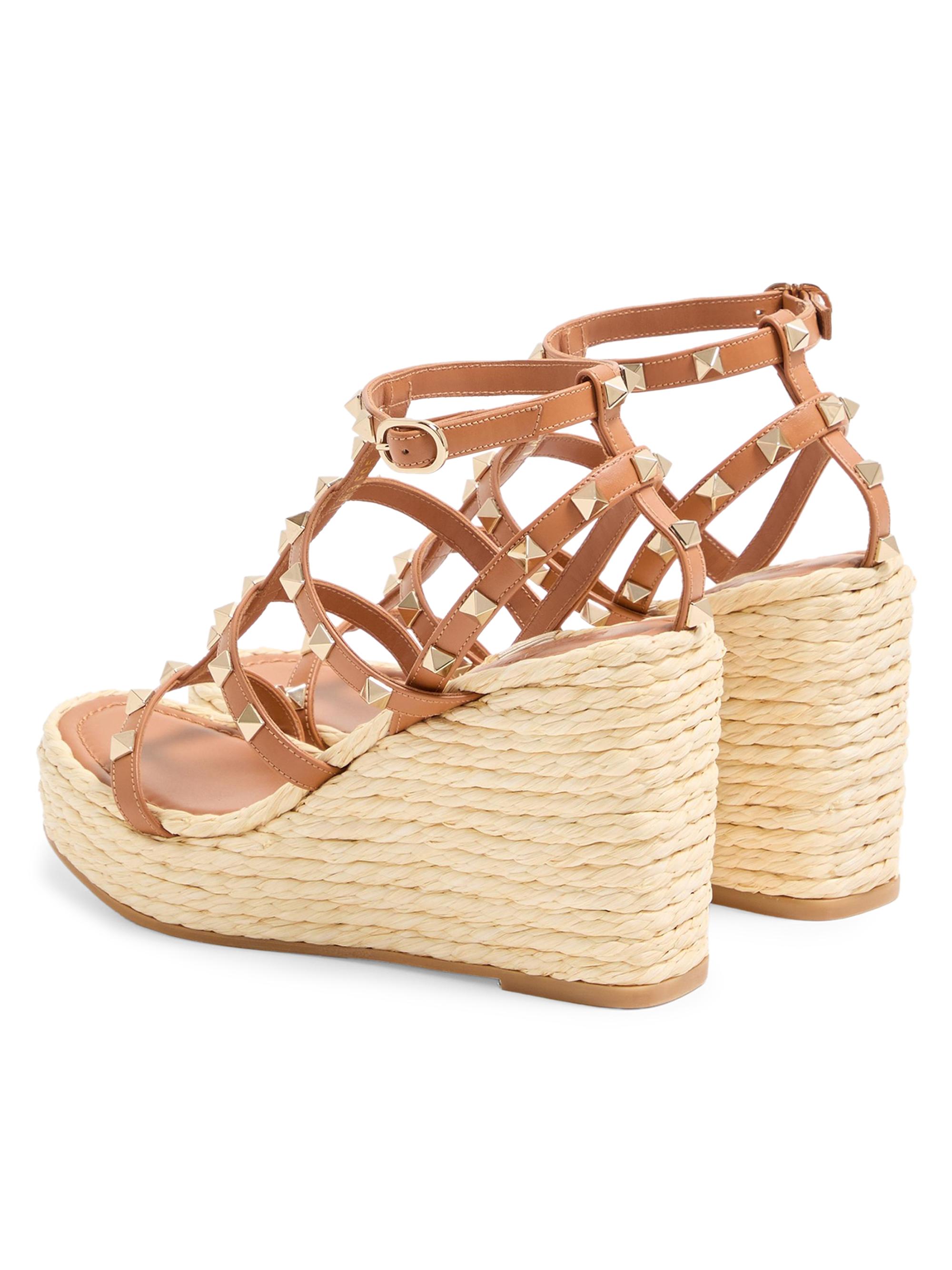 Valentino Garavani Rockstud Wedge Sandals With Calfskin Straps 95MM