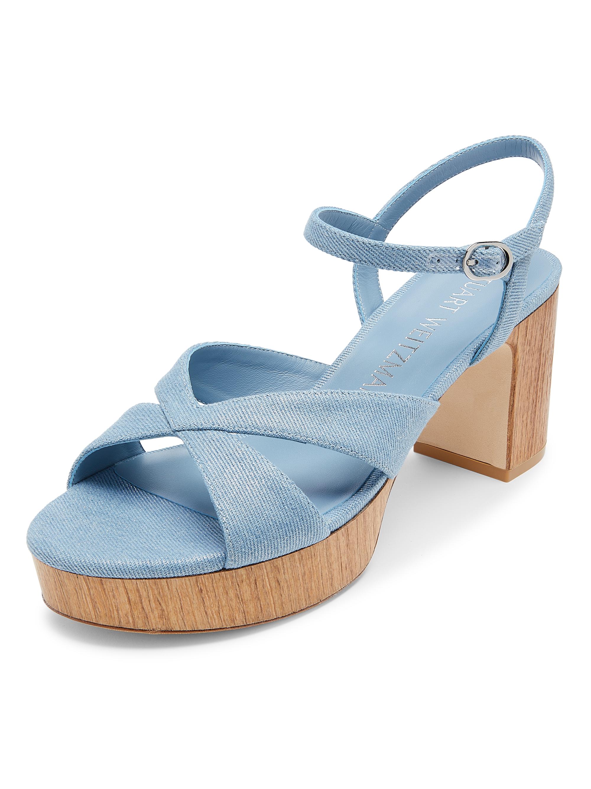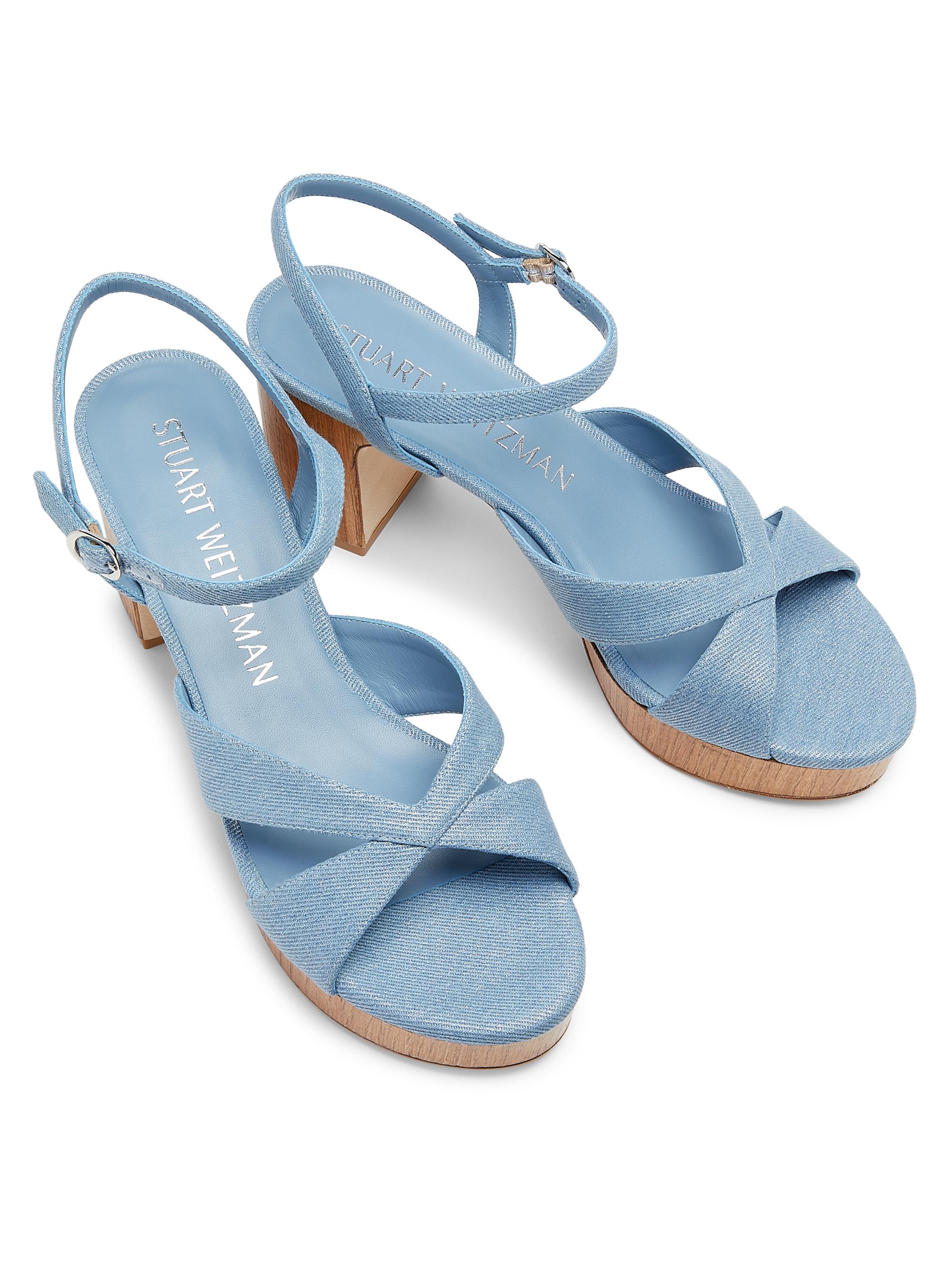 Stuart Weitzman Carmen Metallic Denim Platform Sandals