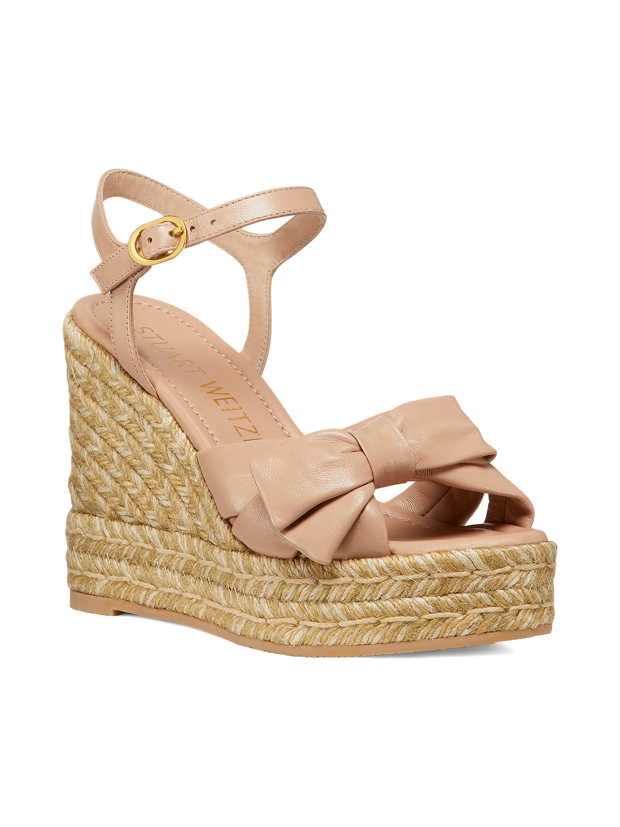 Stuart Weitzman Sofia 100MM Leather Espadrille Wedge Sandals