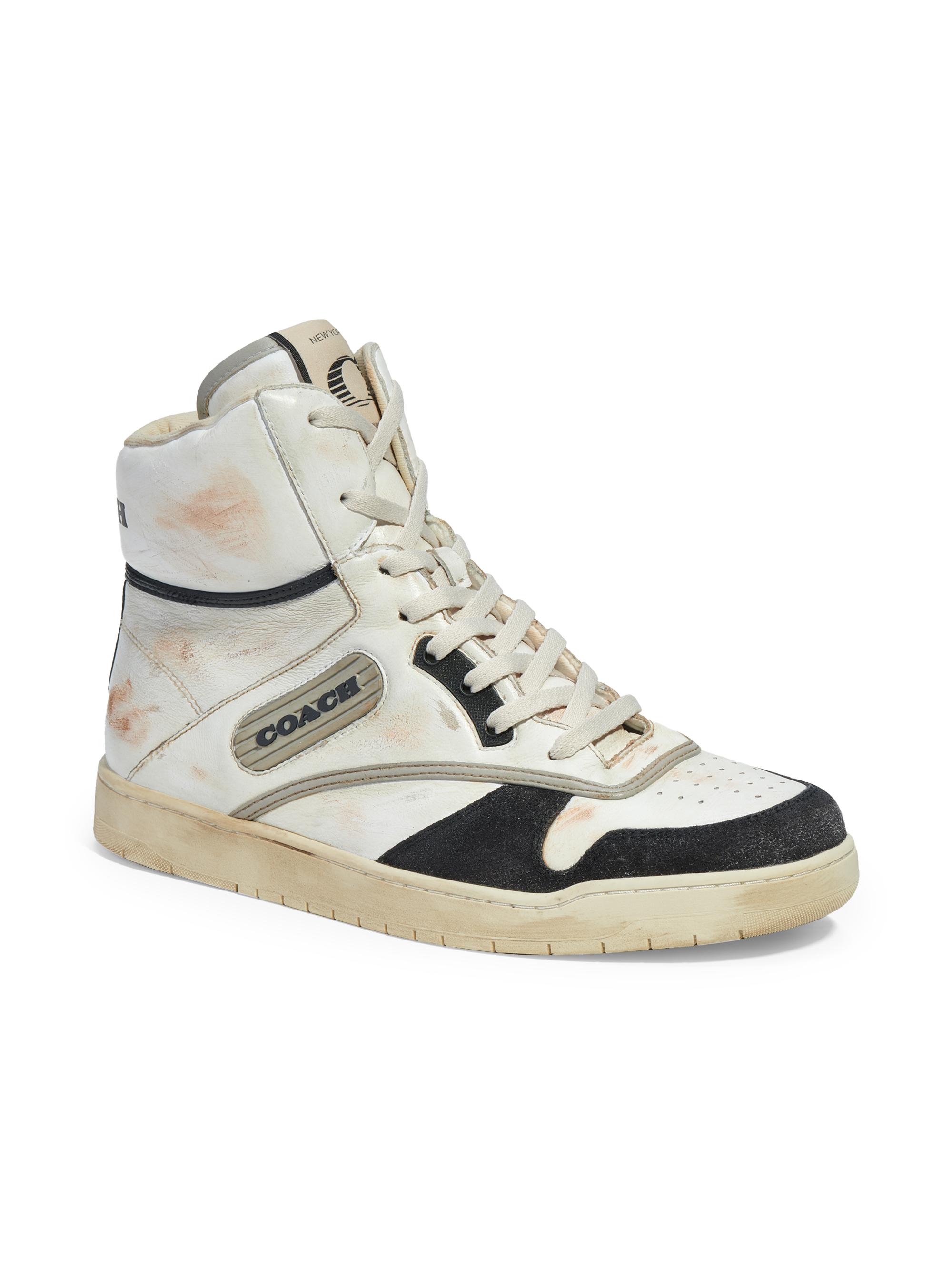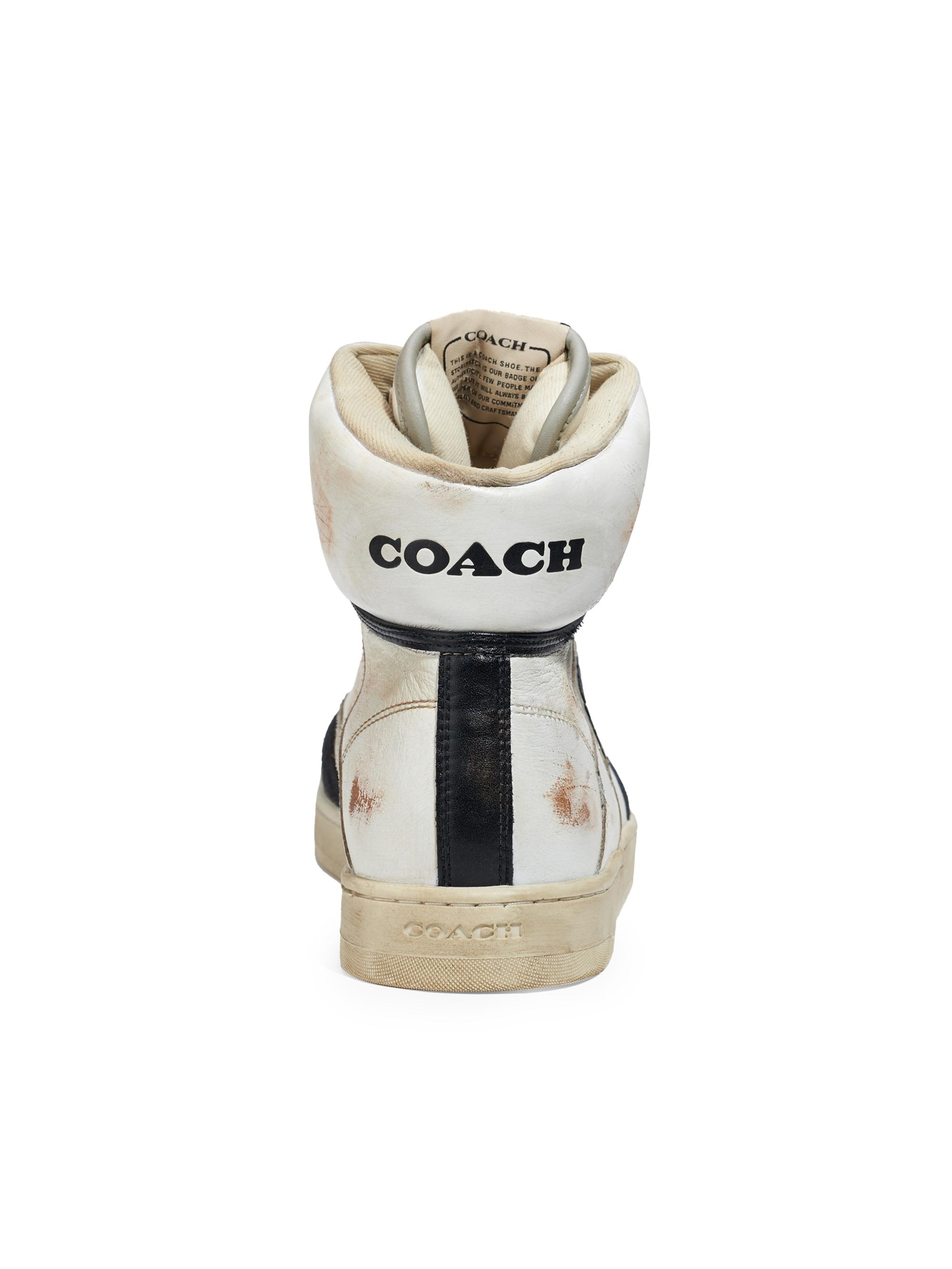 COACH Distressed Leather High-Top Sneakers