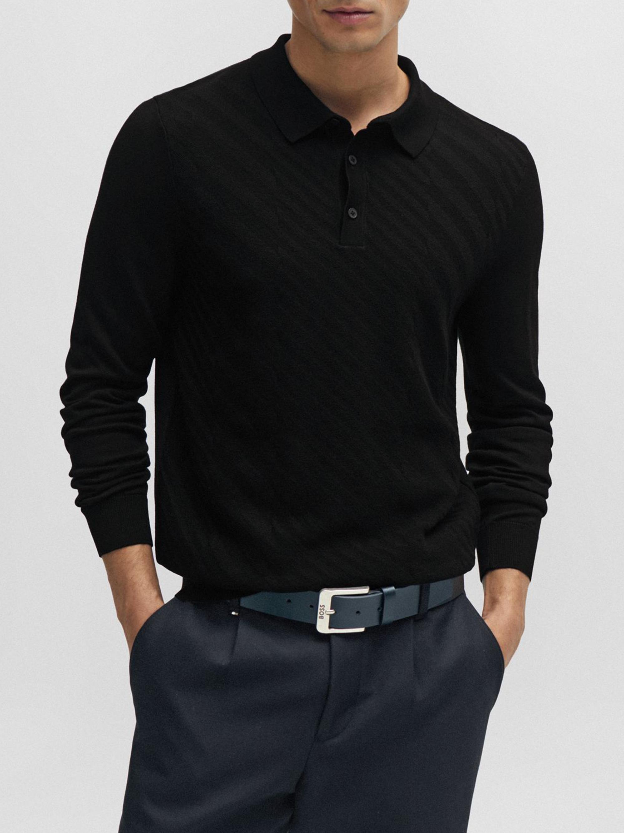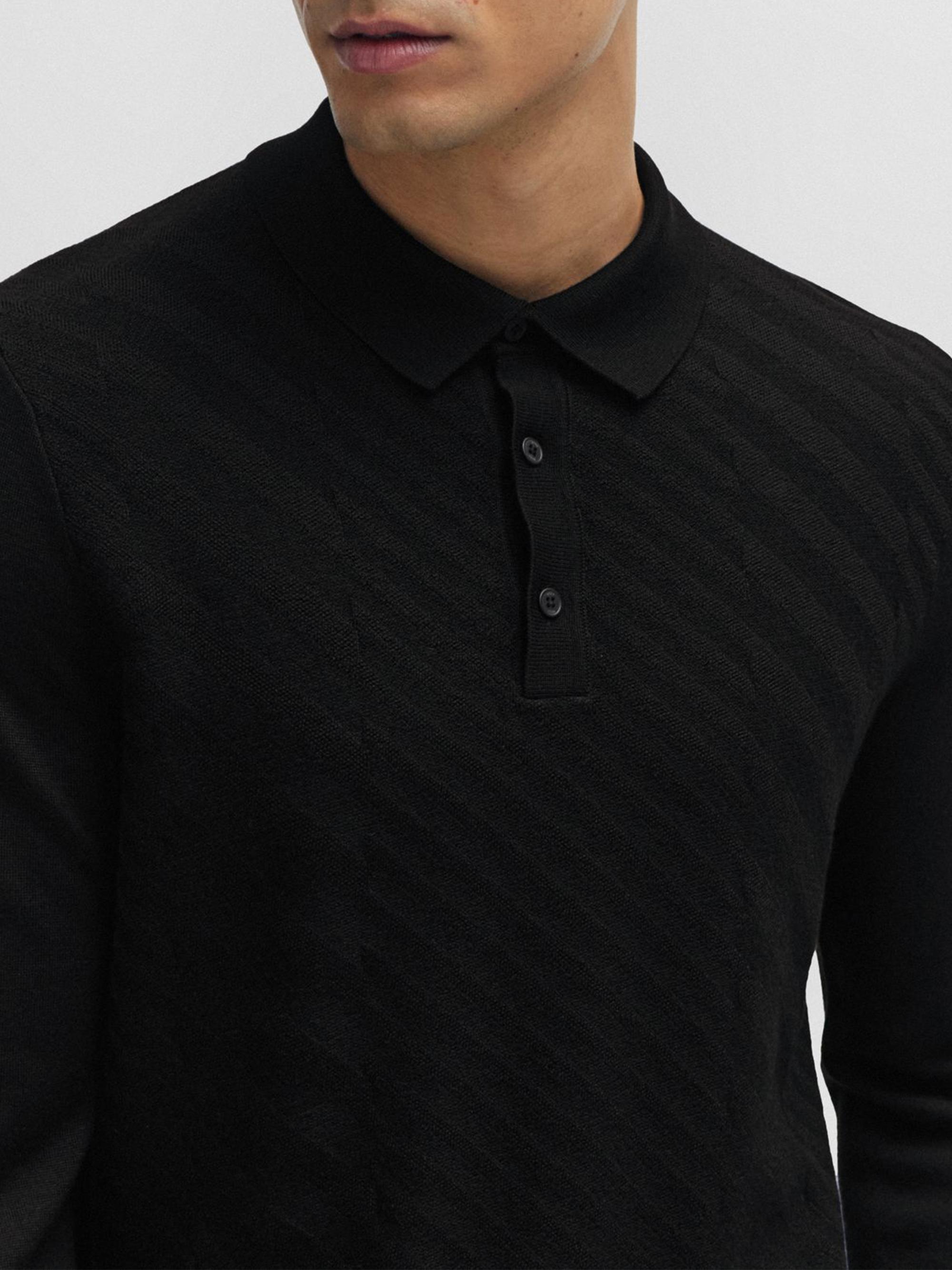 BOSS Wool-Blend Polo T-Shirt with Graphic Jacquard Structure