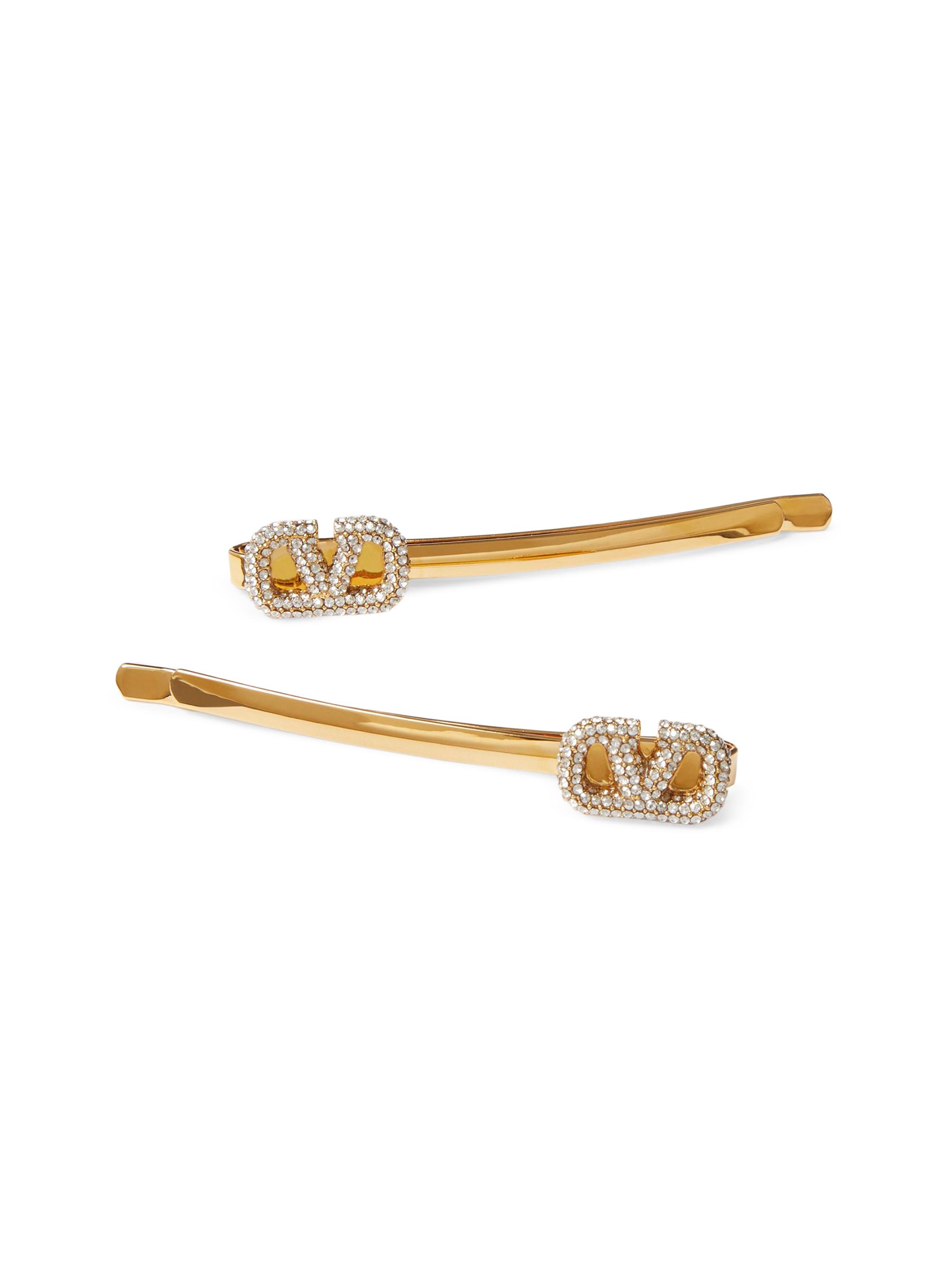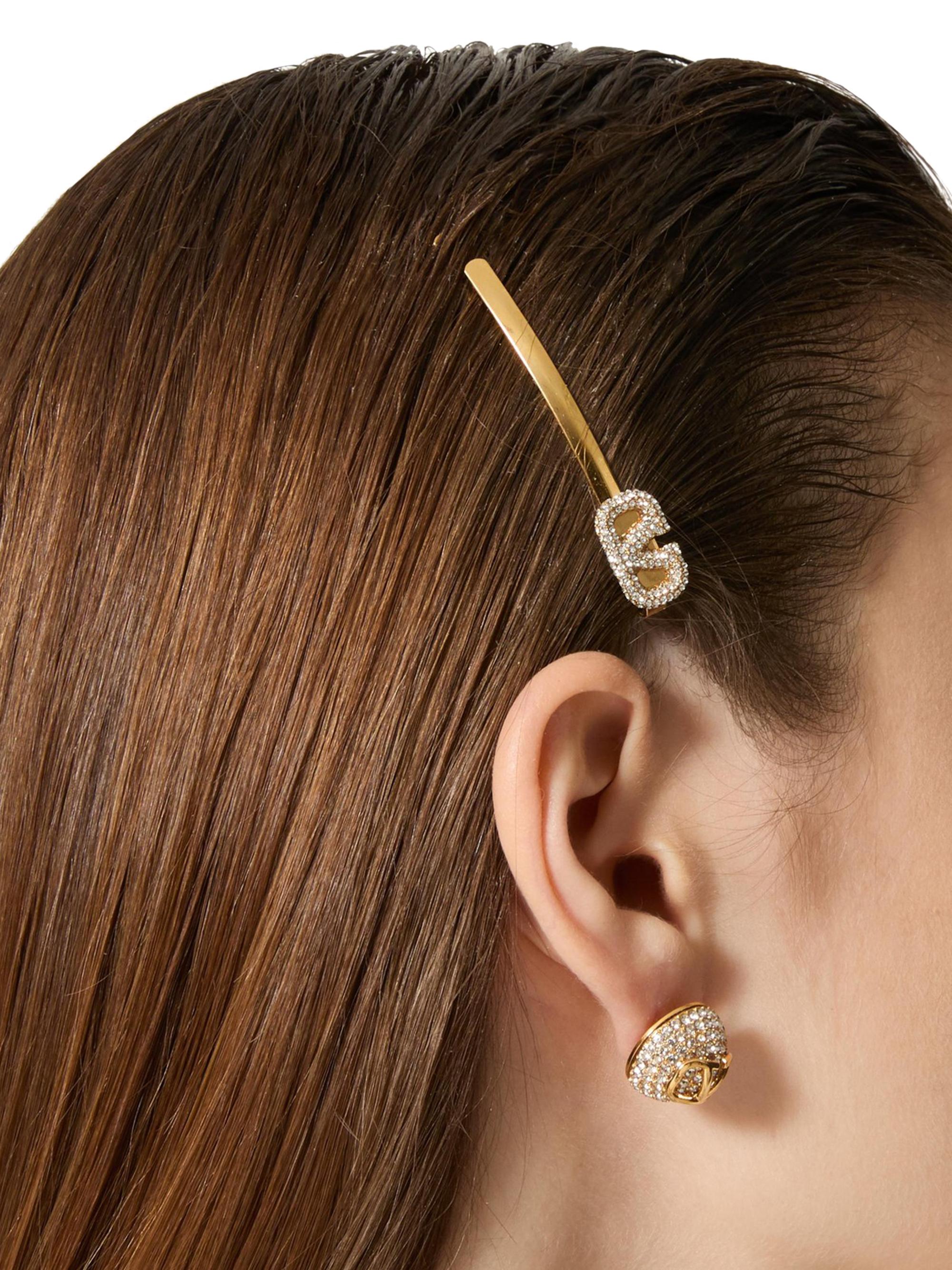 Valentino Garavani VLogo Signature Metal and Swarovski Crystal Hair Clip