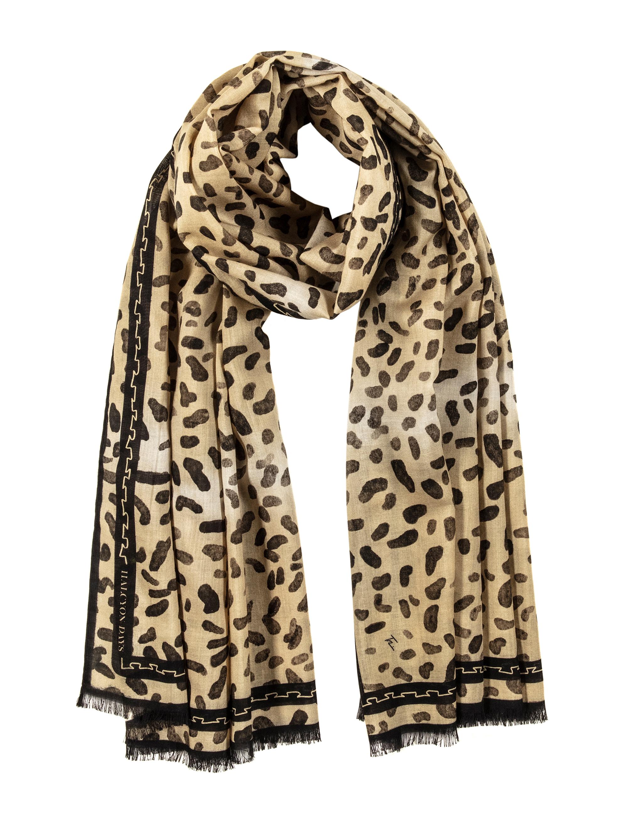Halcyon Days Tug Rice Leopard Print Silk & Wool Scarf