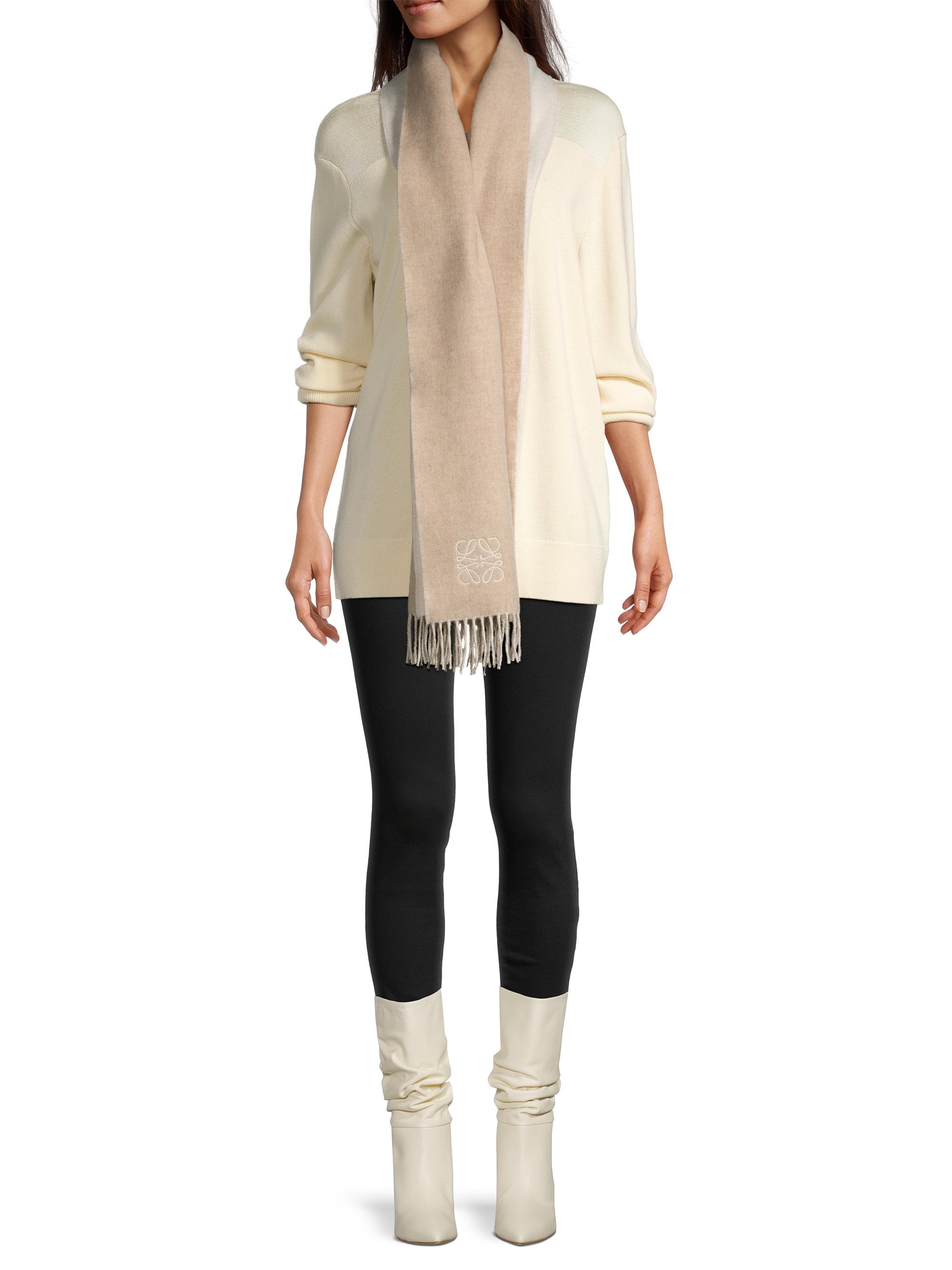LOEWE Anagram Two-Tone Fringe Wool-Blend Scarf