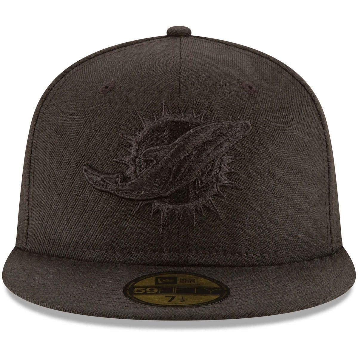 New Era Mens New Era Miami Dolphins Black on Black 59FIFTY Fitted Hat_Black